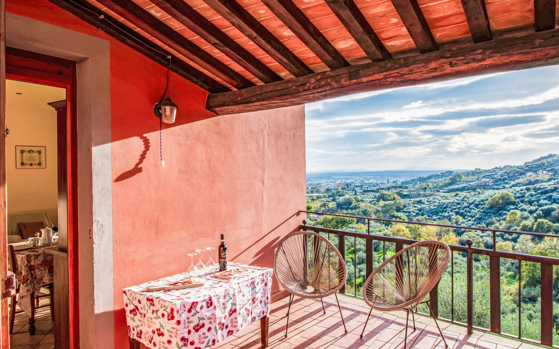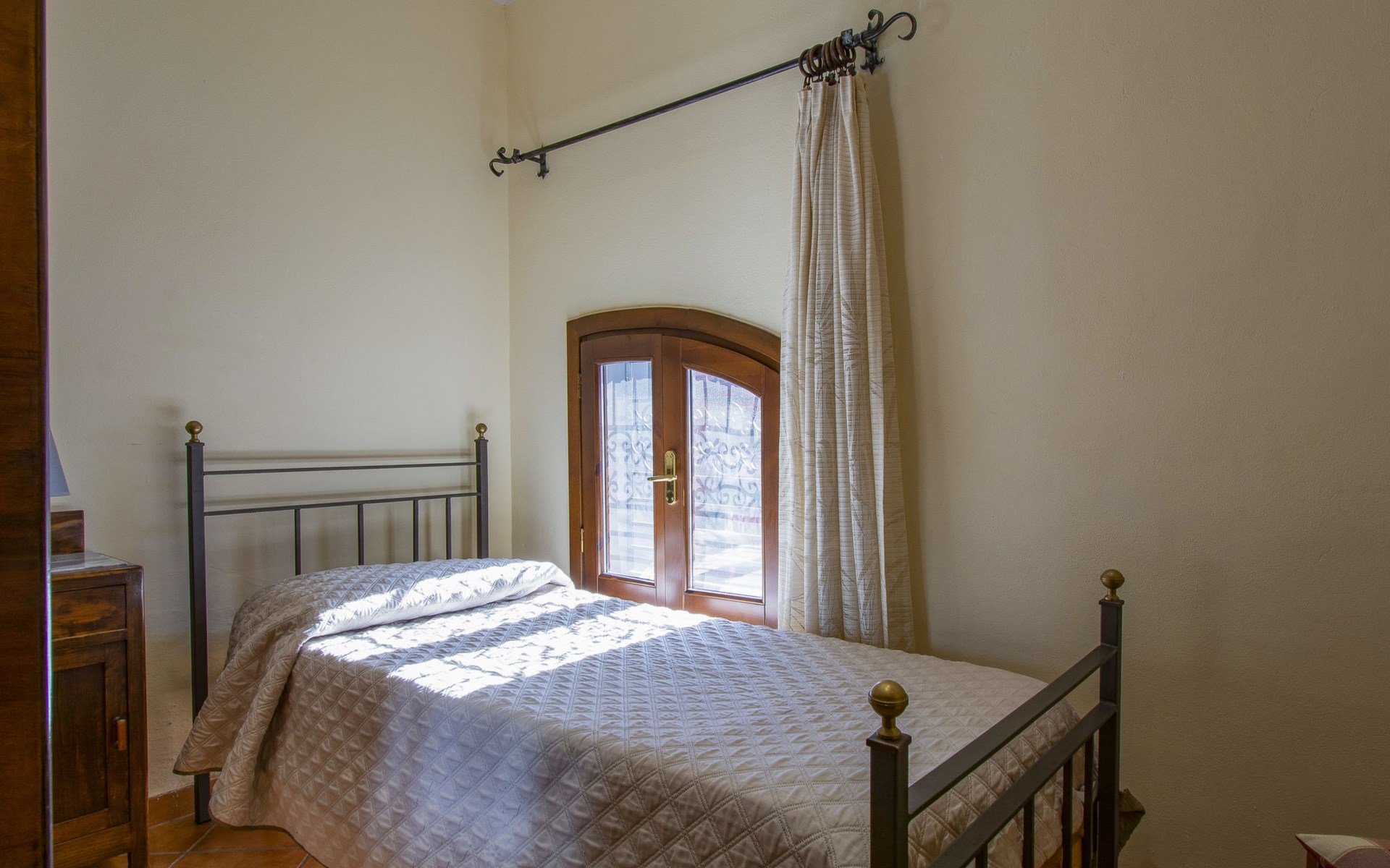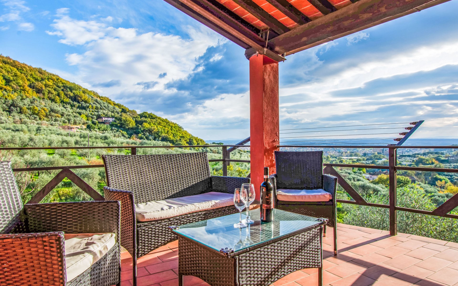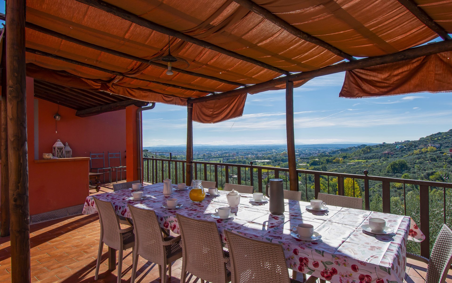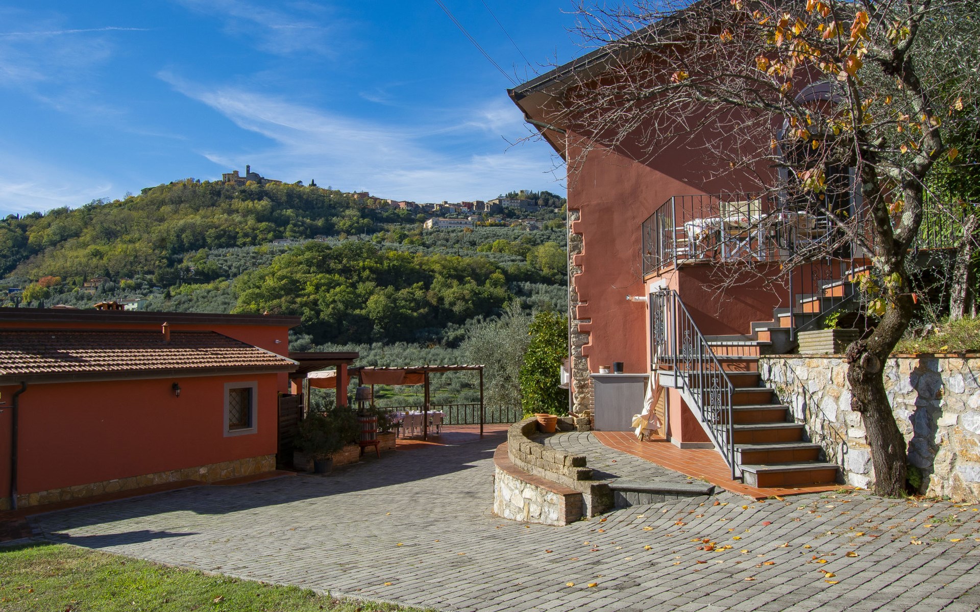 Mooi, rustieke boerderij "Francesco", 80 m boven zeeniveau, omgeven door bomen en velden. 4.5 km van het centrum van Montecatini Terme, 2.5 km van het centrum van Pieve a Nievole, 34 km van het centrum van Lucca, geïsoleerde, zonnige ligging tegen een helling, 60 km van zee, te midden van groen. Voor medegebruik: wild terrein 3 ha, mooie tuin op verschillende niveaus planten en bomen, weide, boomgaard. Voor alleengebruik: openluchtzwembad (10 x 5 m, 120 - 160 cm diepte, seizoensgebonden beschikbaarheid: 04.Apr. - 24.Okt.). Buitendouche, terras, tuinmeubelen, onderhoud zwembad door de eigenaar/tuinman. Parkeerplaats op het terrein. Winkel 2.5 km, supermarkt 4.5 km, bushalte 3 km, treinstation "Montecatini Terme" 5 km, zandstrand "Viareggio" 60 km. Golfterrein (18 holes) 11 km. Een deel van het huis is afgesloten en niet bezet. De eigenaar woont op hetzelfde terrein. Autobaan in de buurt.