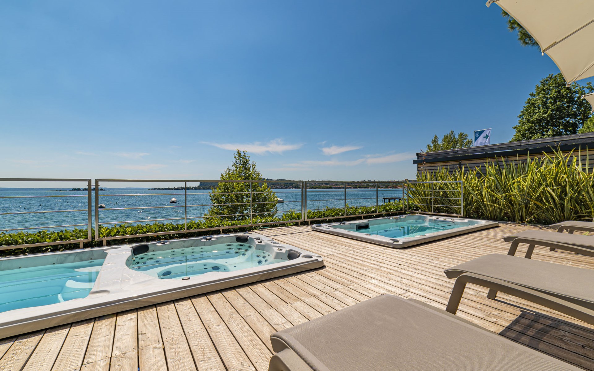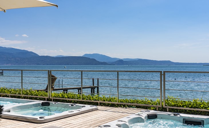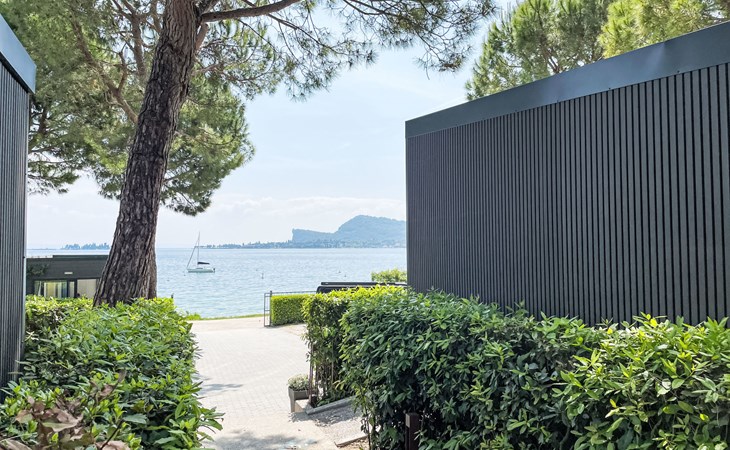 Klein vakantiecomplex "Concept Village Piccola Gardiola". 14 huizen in de plaats. 2 km van het centrum van San Felice del Benaco, 9 km van het centrum van Moniga del Garda, 20 m van het meer, 20 m van het strand, aan een doodlopende weg. Voor medegebruik: terrein 3.700 m2 (omheind), mooie tuin met bomen. Hot tub, tafeltennis, terras, tuinmeubelen, kinderspeelplaats. In het complex: bar, Internet (WiFi) (extra). Ontbijt op verzoek (extra). Levensmiddelenwinkel 2 km, bushalte 950 m, kiezelstrand 20 m. Bubbelbad open ca. 23.05.-30.09.