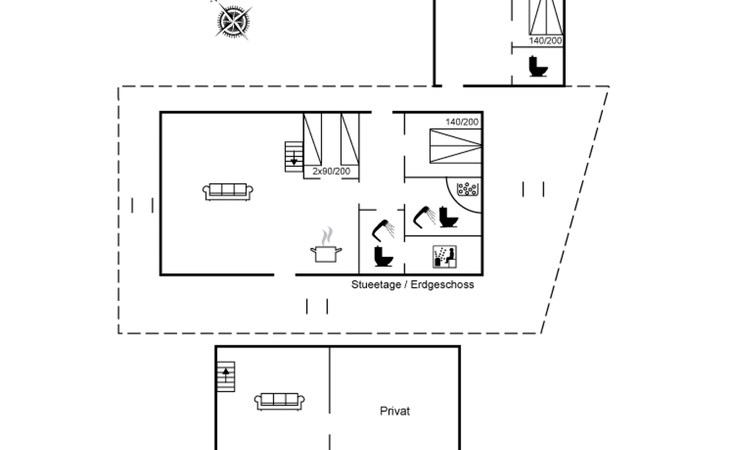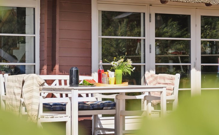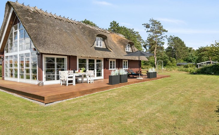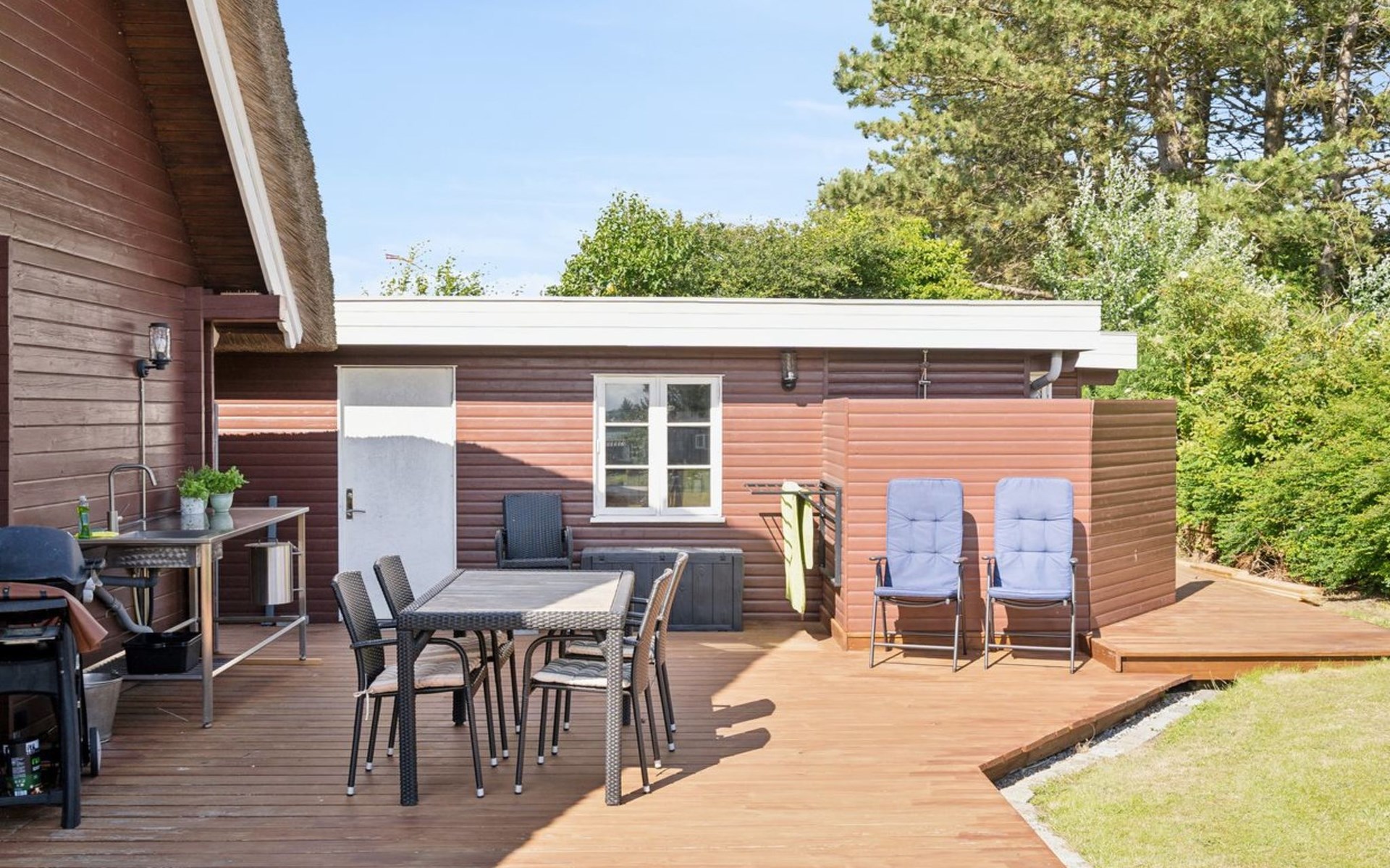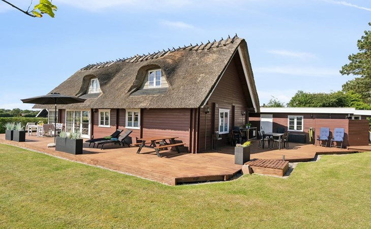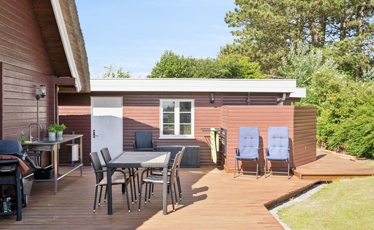 Eengezinswoning, bouwjaar 1980. 300 m van zee. Voor alleengebruik: terrein 862 m2, verzorgde tuin. Buitendouche, terras (100 m2), barbecue, kinderspeelplaats (schommel). In het huis: sauna, wasmachine, droger. Parkeerplaats bij het huis. Levensmiddelenwinkel 3 km. De eigenaar accepteert geen jeugdgroepen.