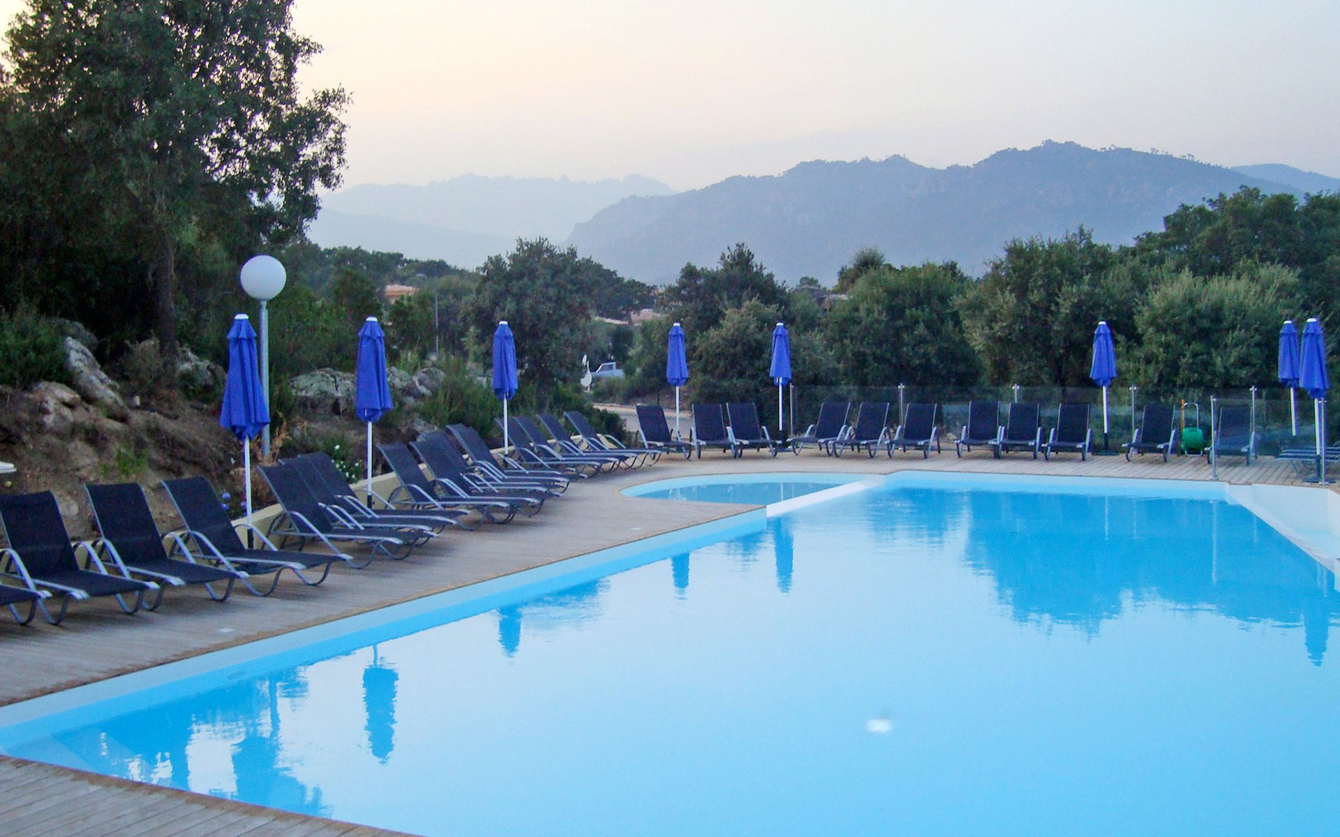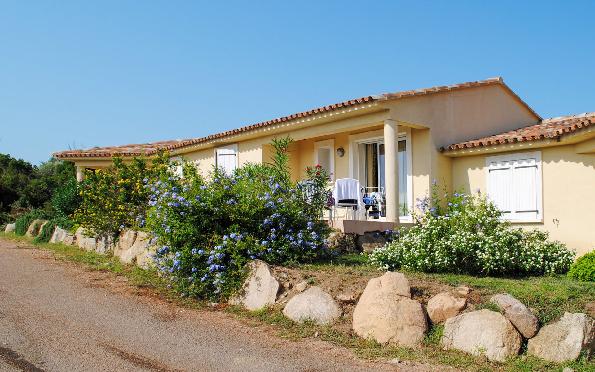 Klein vakantiecomplex "San Martinu". 30 huizen in de woning. 1 km van het centrum van Ste. Lucie de Porto Vecchio, aan de rand van de plaats, 3 km van het centrum van Pinarellu, 15 km van het centrum van Porto Vecchio, 3 km van zee. Voor medegebruik: terrein 2 ha (omheind) met planten en bomen, openluchtzwembad (15 x 6 m, seizoensgebonden beschikbaarheid: 01.Jun. - 15.Sep.). In het complex: receptie, internetaansluiting, wasmachine (voor medegebruik, extra). Parkeerplaats op het terrein. Winkel 1 km, zandstrand 3 km. De afgebeelde foto is slechts een voorbeeld. De huurobjecten kunnen wb. Woonoppervlak, kamerindeling verschillen. Wifi alleen beschikbaar bij de receptie.