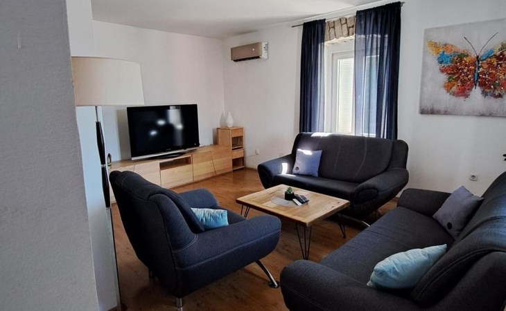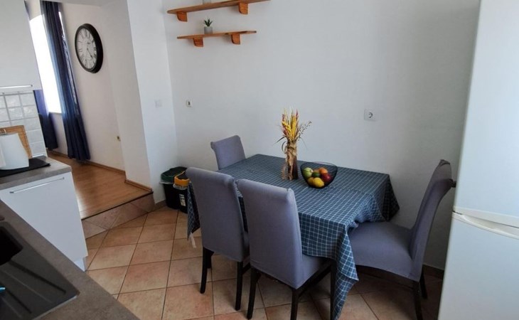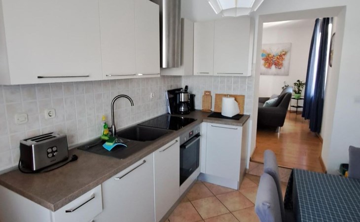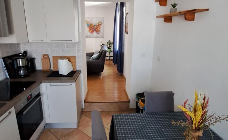 Discover the serene retreat of our apartment in Pula, perfectly positioned to offer the tranquil escape you've been longing for, coupled with the convenience of being close to the vibrant city life, pristine beaches, and cultural festivities. A mere five-minute drive connects you to Pula's heart, where history and natural beauty intertwine, promising an unforgettable stay for groups of up to 5 guests.Inside, the apartment's comfortable living spaces are equipped with everything needed for a seamless stay. Enjoy the benefits of air conditioning available throughout, ensuring your comfort no matter the time of year. The inclusion of a washing machine and clothes dryer, for your sole use within the unit, adds an extra layer of convenience, making it perfectly suited for longer stays. The added comforts of a dishwasher, filter coffee machine, electric kettle, and mini oven in the kitchen area enable guests to feel right at home, catering to all your culinary needs.The outdoor amenities of this property are designed to complement its serene setting. A private garden for sole use invites guests to unwind and connect with nature, while a roof terrace and an additional terrace provide ample space for relaxation or entertaining. An on-site barbecue and a sun terrace further enhance the outdoor living experience, offering ideal spots for social gatherings or quiet moments under the sky.Strategically situated, our apartment is a stone's throw away from the sea, just 500m to the nearest access points, and within a similar distance to options for water sports. For beach enthusiasts, a beautiful beach and a dog-friendly beach are both conveniently located within a kilometer. The property's proximity to grocery stores and the town center, each just a kilometer away, ensures that all essentials and more are within easy reach, making your stay both convenient and enjoyable.Concluding this presentation of our cherished apartment in Pula, it stands as a testament to a perfect blend of tranquility, convenience, and enjoyment. Whether you're here to explore the rich cultural tapestry of the area, bask in the beauty of its beaches, or simply retreat into the comfort of a thoughtfully appointed home away from home, our apartment promises an experience that embodies both relaxation and adventure.