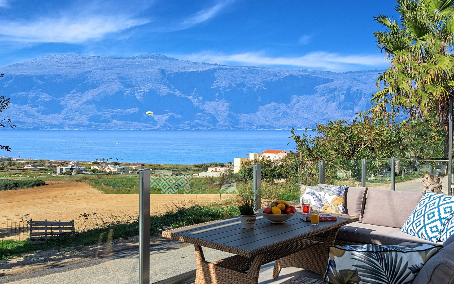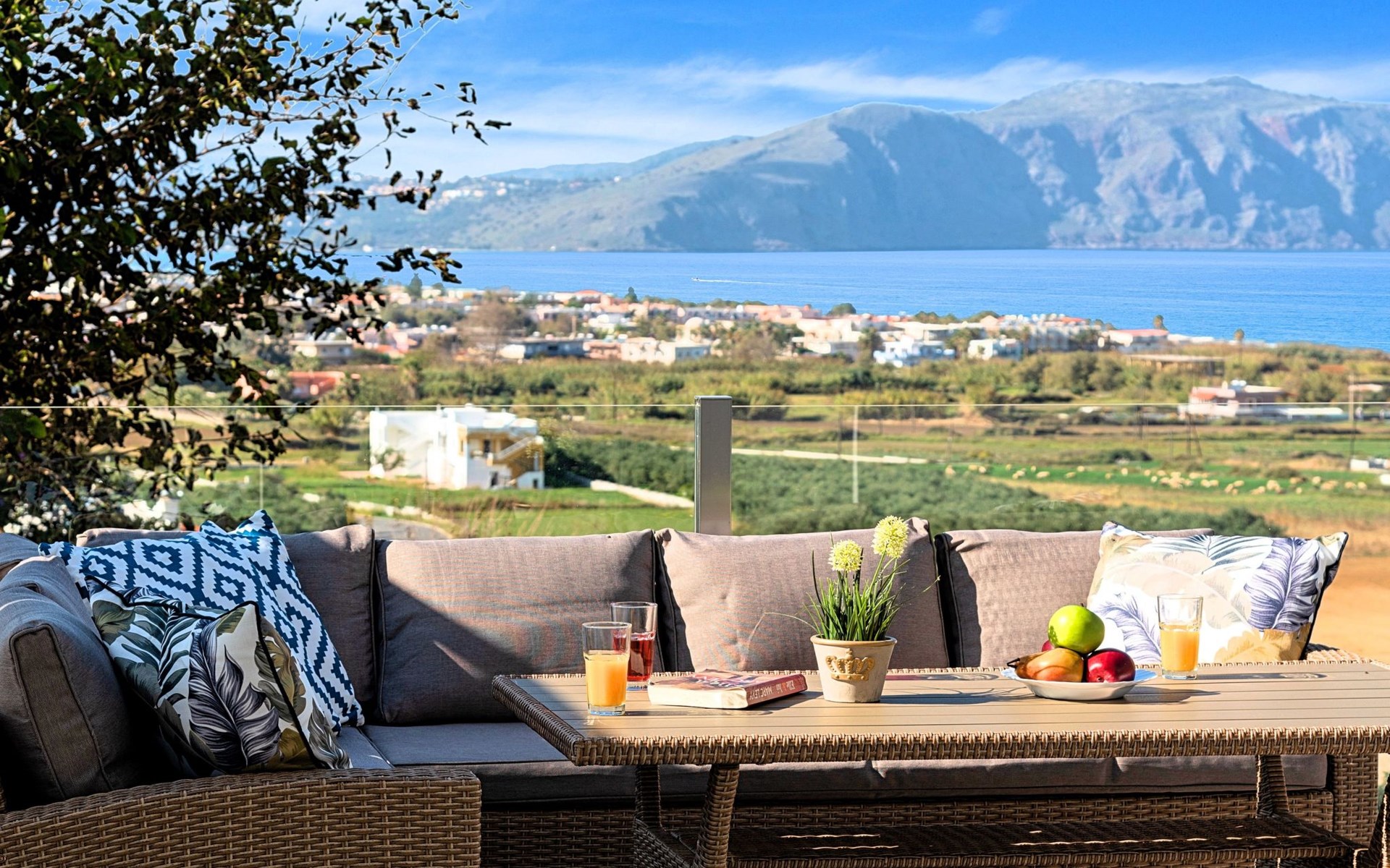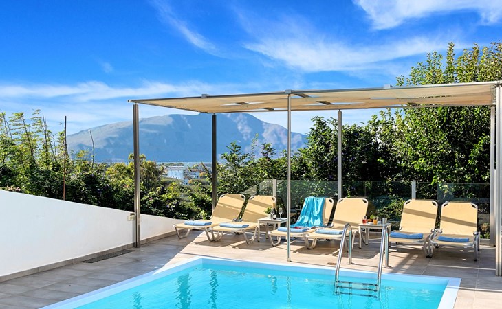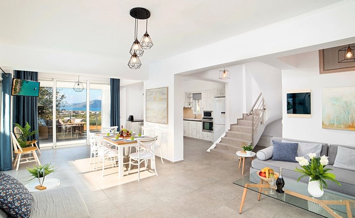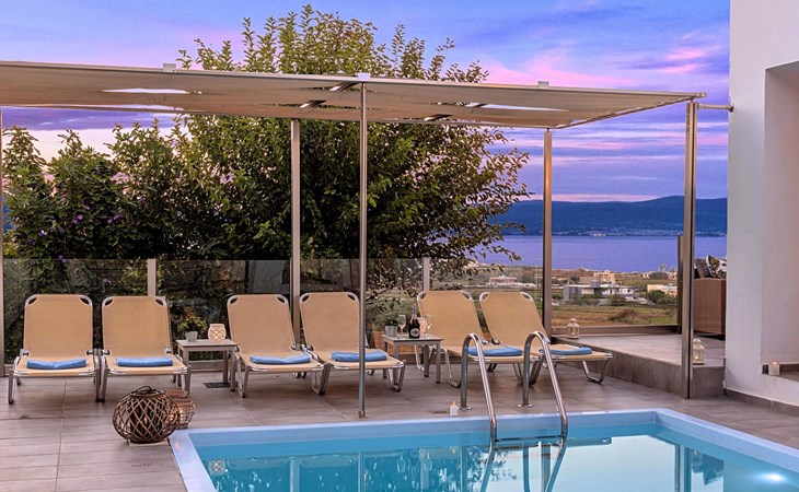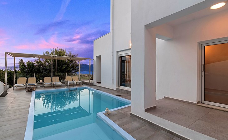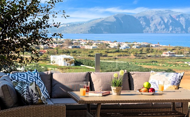 Welcome If the beauty was a location, it would be the island of Crete. If the relaxation and rejuvenation were accommodation, it would be the Cretan Sunset Villa. Built on one of the most green and quiet spots of Crete island, about 40km from Chania and 18km from Rethymnon. Cretan Sunset Villa is the ideal base for discovering all the elements that make Crete a top destination. With scenic views to the Cretan Sea and the White Mountains. It is just a few minutes' walk from the most famous long sandy beach of Georgioupolis-Episkopi with the crystal-clear waters and Kournas lake. The experience of staying at Cretan Sunset Villa consists of a special game that captures the senses. Here you are not to enjoy TV or browsing your laptop but the breathless sea view over the scenic landscape. The luxury here is not in technology and the fancy materials, but the reactivation of the senses that have been diminished by the modern rhythms of life. Here, the meaning lies in the singing of the birds and the heady aromas of the herbs that grow in every corner of the island. Facilities & Services Cretan Sunset Villa is the ideal choice for those who seek moments of absolute relaxation and tranquility. Start your day enjoying a rich breakfast made with the finest Cretan ingredients before heading out to some of the beaches of the island. In the afternoons, relax next to the swimming pool, enjoying your drink or a snack and gazing at the endless blue of the Aegean. We firmly believe that the greatest satisfaction lies in the simplest things. We invite you to live the experience of staying at Cretan Sunset Villa and we are sure that when it is completed, you will agree with us.Cretan Sunset Villa offer the following facilities:Ground Floor● A living room with a large sofa bed and two armchairs/beds.Our living room can accommodate up to 4 guests.● A fully equipped Kitchen with an oven, a fridge, a microwave, dish washer, washing machine, tumble dryer, a coffee maker, tea facilities and a juicer.● A dining area with a TV set● A large bathroom with shower.● Two spacious terraces both with dining areas, sunbeds and umbrellas and outdoor shower.● A big BBQ● A heated swimming pool.Upper floor● A bathroom●Three bedrooms, each one with a balcony. Two out of three bedrooms offer two twin beds pushed together.The third bedroom offer two single beds.● Air-condition in all areas● Free WiFi internet access● An iron and an ironing board● Hair dryer● Fine linens and towels● Toiletries● Safe box● Sun beds● Baby cot● High chair● Towels / bed linen, Cleaning- Every 3 or 4 days ● Free Parking area ● BBQCretan Sunset Villa offer the following facilities:Ground Floor● A living room with a large sofa bed and two armchairs/beds.Our living room can accommodate up to 4 guests.● A fully equipped Kitchen with an oven, a fridge, a microwave, dish washer, washing machine, tumble dryer, a coffee maker, tea facilities and a juicer.● A dining area with a TV set● A large bathroom with shower.● Two spacious terraces both with dining areas, sunbeds and umbrellas and outdoor shower.● A big BBQ● A heated swimming pool.Upper floor● A bathroom●Three bedrooms, each one with a balcony. Two out of three bedrooms offer two twin beds pushed together.The third bedroom offer two single beds.● Air-condition in all areas● Free WiFi internet access● An iron and an ironing board● Hair dryer● Fine linens and towels● Toiletries● Safe box● Sun beds● Baby cot● High chair● Towels / bed linen, Cleaning- Every 3 or 4 days ● Free Parking area ● BBQThe outdoor pool is heated and can reach 6 to 8 degrees more that the 24 h average air temperature with maximum value of 29°CYou can easily walk to the village center where you can find cafes, shops, supermarkets, tavernas and the sandy long beach. Everything is within 600 meters walking distance. 1261988