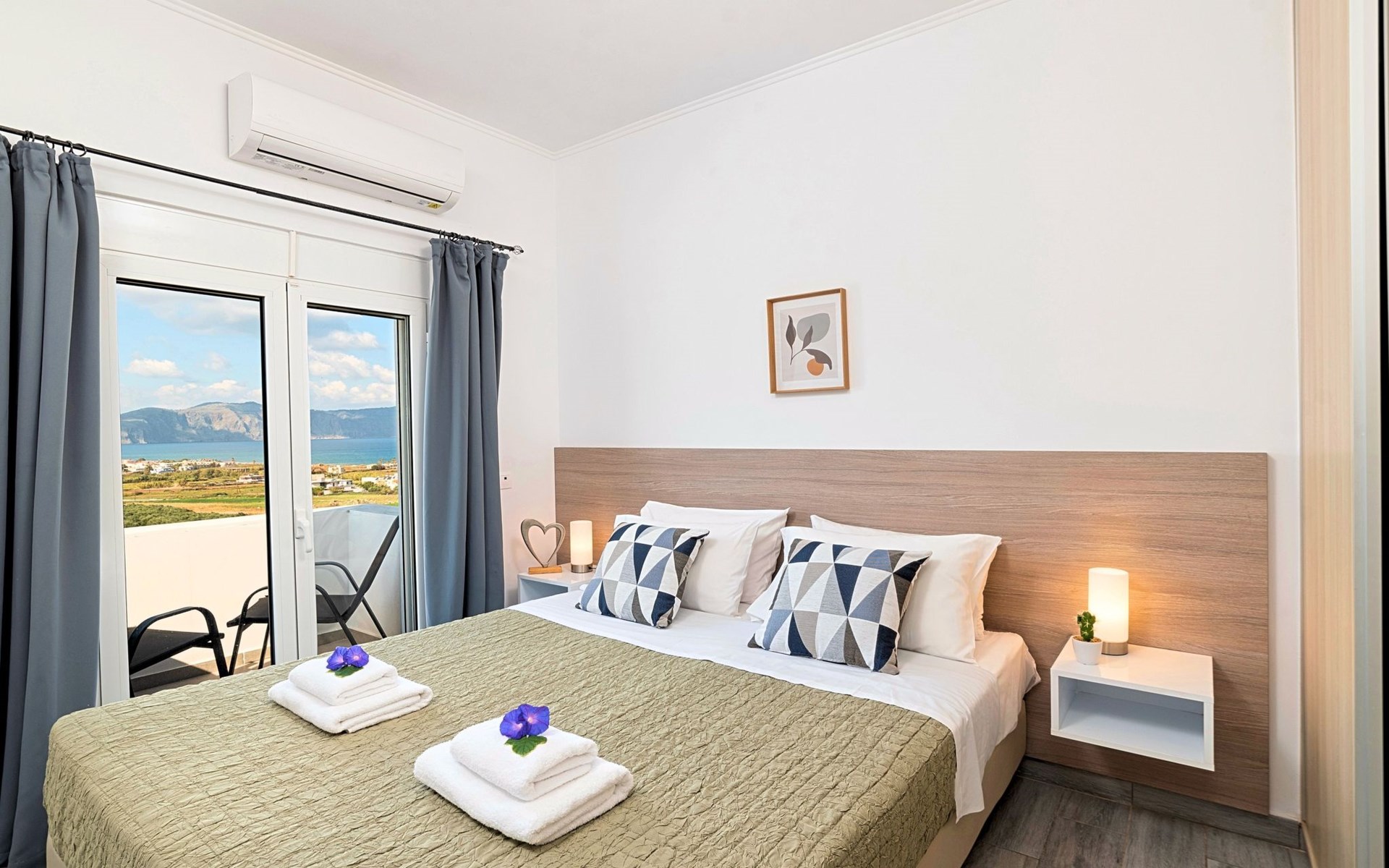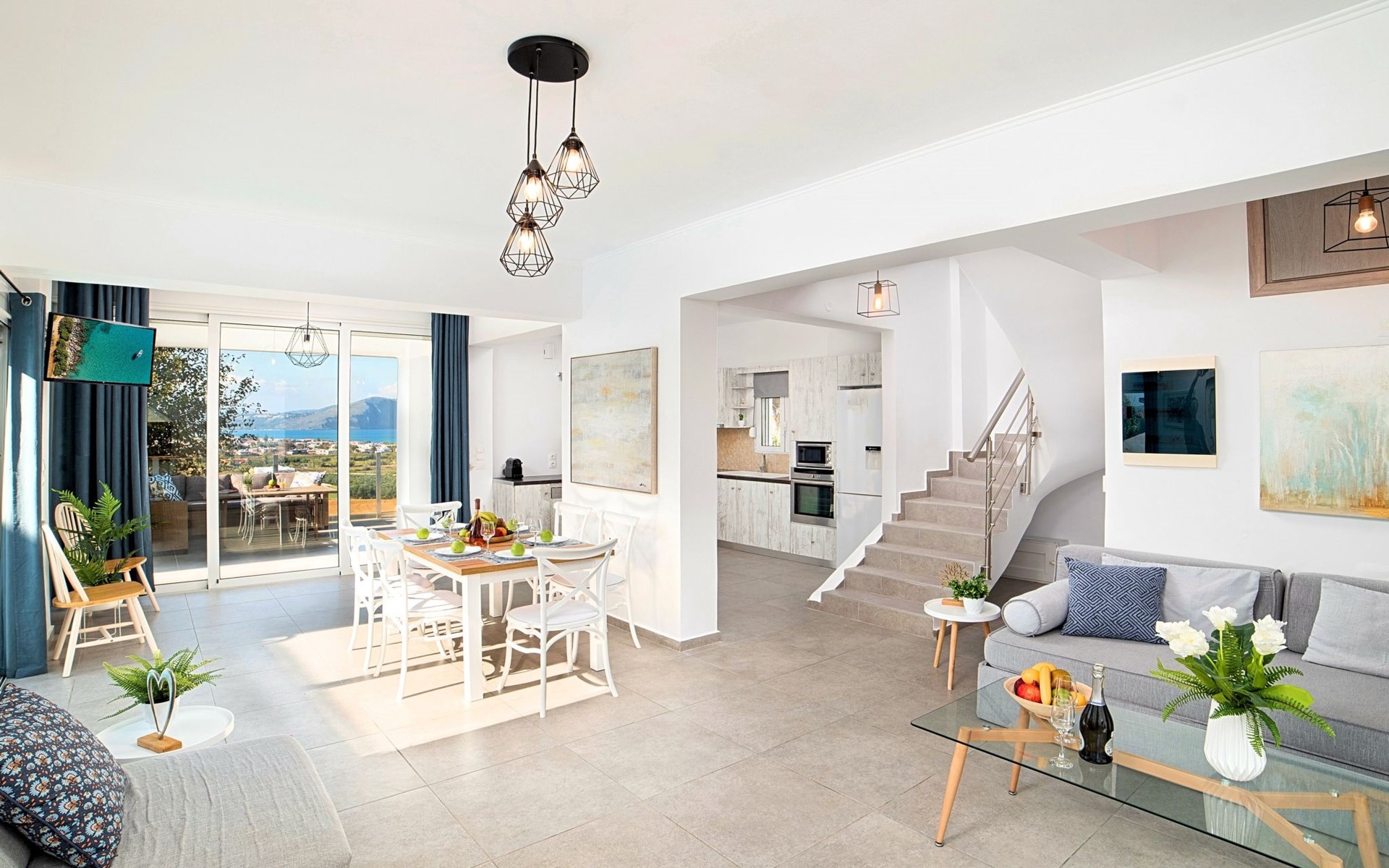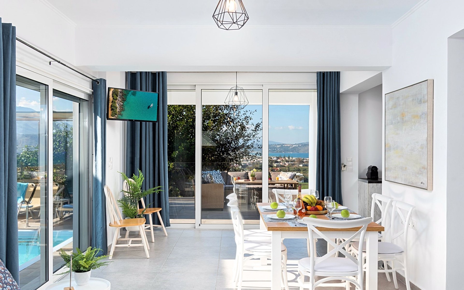 Welcome If the beauty was a location, it would be the island of Crete. If the relaxation and rejuvenation were accommodation, it would be the Cretan Sunset Villa. Built on one of the most green and quiet spots of Crete island, about 40km from Chania and 18km from Rethymnon. Cretan Sunset Villa is the ideal base for discovering all the elements that make Crete a top destination. With scenic views to the Cretan Sea and the White Mountains. It is just a few minutes' walk from the most famous long sandy beach of Georgioupolis-Episkopi with the crystal-clear waters and Kournas lake. The experience of staying at Cretan Sunset Villa consists of a special game that captures the senses. Here you are not to enjoy TV or browsing your laptop but the breathless sea view over the scenic landscape. The luxury here is not in technology and the fancy materials, but the reactivation of the senses that have been diminished by the modern rhythms of life. Here, the meaning lies in the singing of the birds and the heady aromas of the herbs that grow in every corner of the island. Facilities & Services Cretan Sunset Villa is the ideal choice for those who seek moments of absolute relaxation and tranquility. Start your day enjoying a rich breakfast made with the finest Cretan ingredients before heading out to some of the beaches of the island. In the afternoons, relax next to the swimming pool, enjoying your drink or a snack and gazing at the endless blue of the Aegean. We firmly believe that the greatest satisfaction lies in the simplest things. We invite you to live the experience of staying at Cretan Sunset Villa and we are sure that when it is completed, you will agree with us.Cretan Sunset Villa offer the following facilities:Ground Floor● A living room with a large sofa bed and two armchairs/beds.Our living room can accommodate up to 4 guests.● A fully equipped Kitchen with an oven, a fridge, a microwave, dish washer, washing machine, tumble dryer, a coffee maker, tea facilities and a juicer.● A dining area with a TV set● A large bathroom with shower.● Two spacious terraces both with dining areas, sunbeds and umbrellas and outdoor shower.● A big BBQ● A heated swimming pool.Upper floor● A bathroom●Three bedrooms, each one with a balcony. Two out of three bedrooms offer two twin beds pushed together.The third bedroom offer two single beds.● Air-condition in all areas● Free WiFi internet access● An iron and an ironing board● Hair dryer● Fine linens and towels● Toiletries● Safe box● Sun beds● Baby cot● High chair● Towels / bed linen, Cleaning- Every 3 or 4 days ● Free Parking area ● BBQCretan Sunset Villa offer the following facilities:Ground Floor● A living room with a large sofa bed and two armchairs/beds.Our living room can accommodate up to 4 guests.● A fully equipped Kitchen with an oven, a fridge, a microwave, dish washer, washing machine, tumble dryer, a coffee maker, tea facilities and a juicer.● A dining area with a TV set● A large bathroom with shower.● Two spacious terraces both with dining areas, sunbeds and umbrellas and outdoor shower.● A big BBQ● A heated swimming pool.Upper floor● A bathroom●Three bedrooms, each one with a balcony. Two out of three bedrooms offer two twin beds pushed together.The third bedroom offer two single beds.● Air-condition in all areas● Free WiFi internet access● An iron and an ironing board● Hair dryer● Fine linens and towels● Toiletries● Safe box● Sun beds● Baby cot● High chair● Towels / bed linen, Cleaning- Every 3 or 4 days ● Free Parking area ● BBQThe outdoor pool is heated and can reach 6 to 8 degrees more that the 24 h average air temperature with maximum value of 29°CYou can easily walk to the village center where you can find cafes, shops, supermarkets, tavernas and the sandy long beach. Everything is within 600 meters walking distance. 1261988