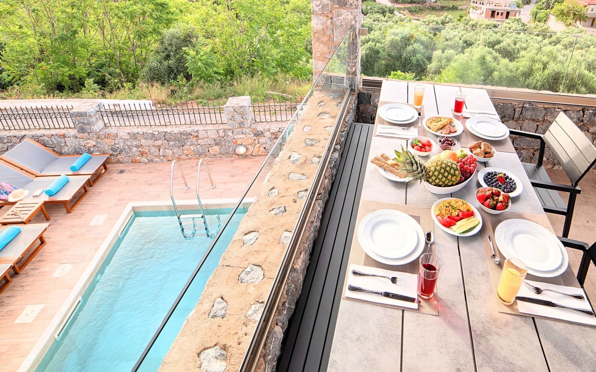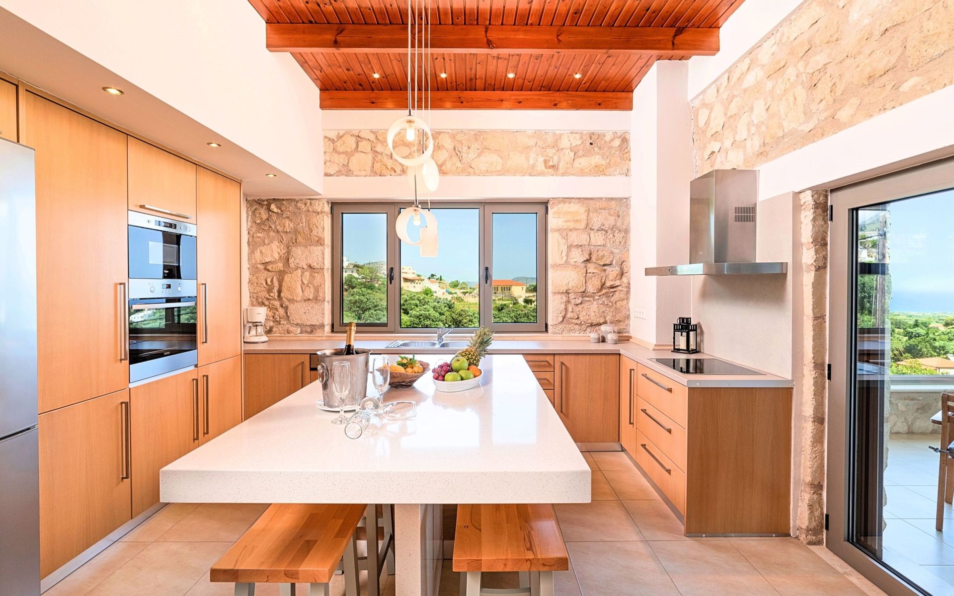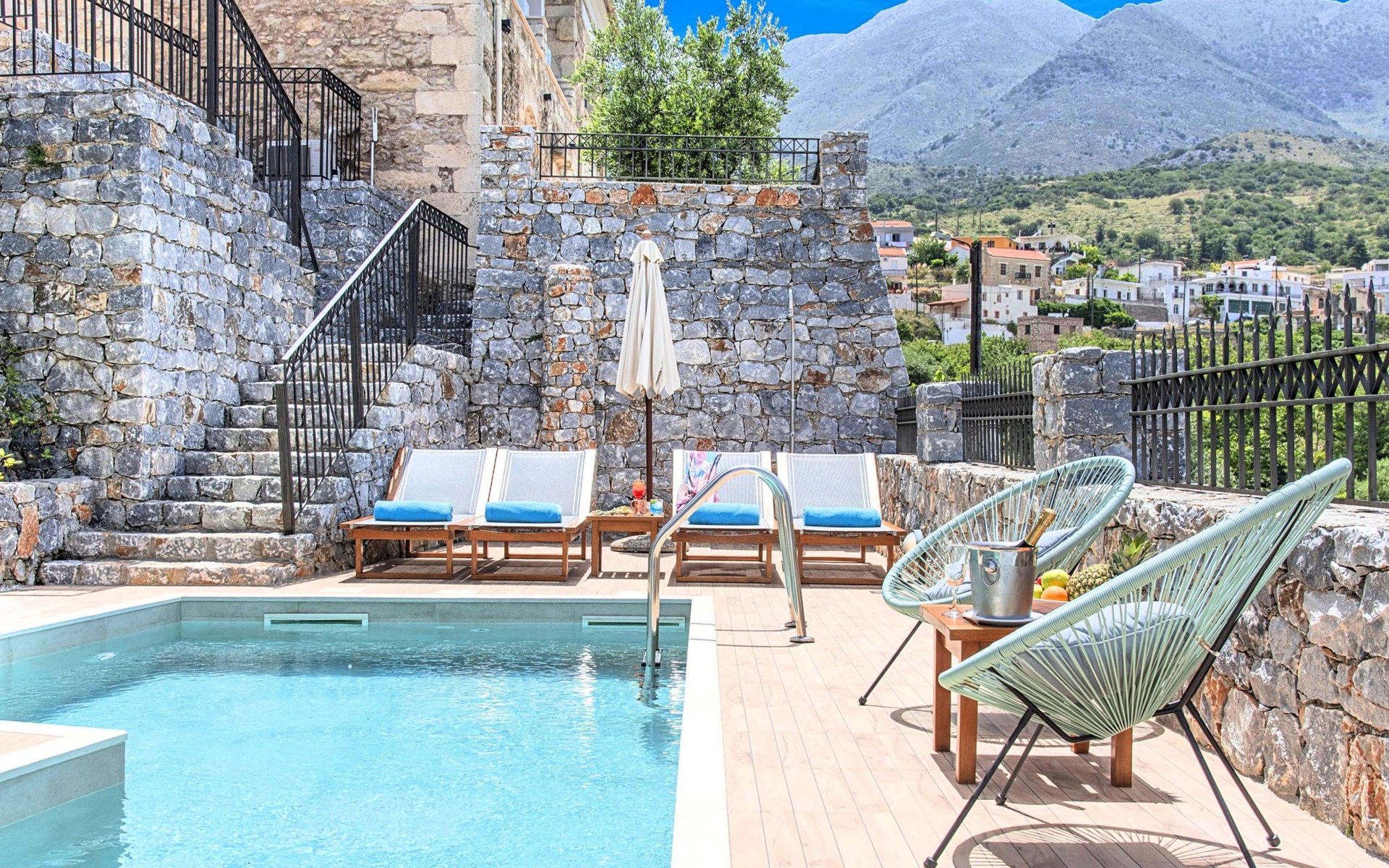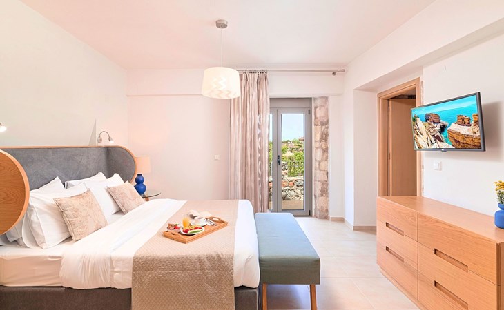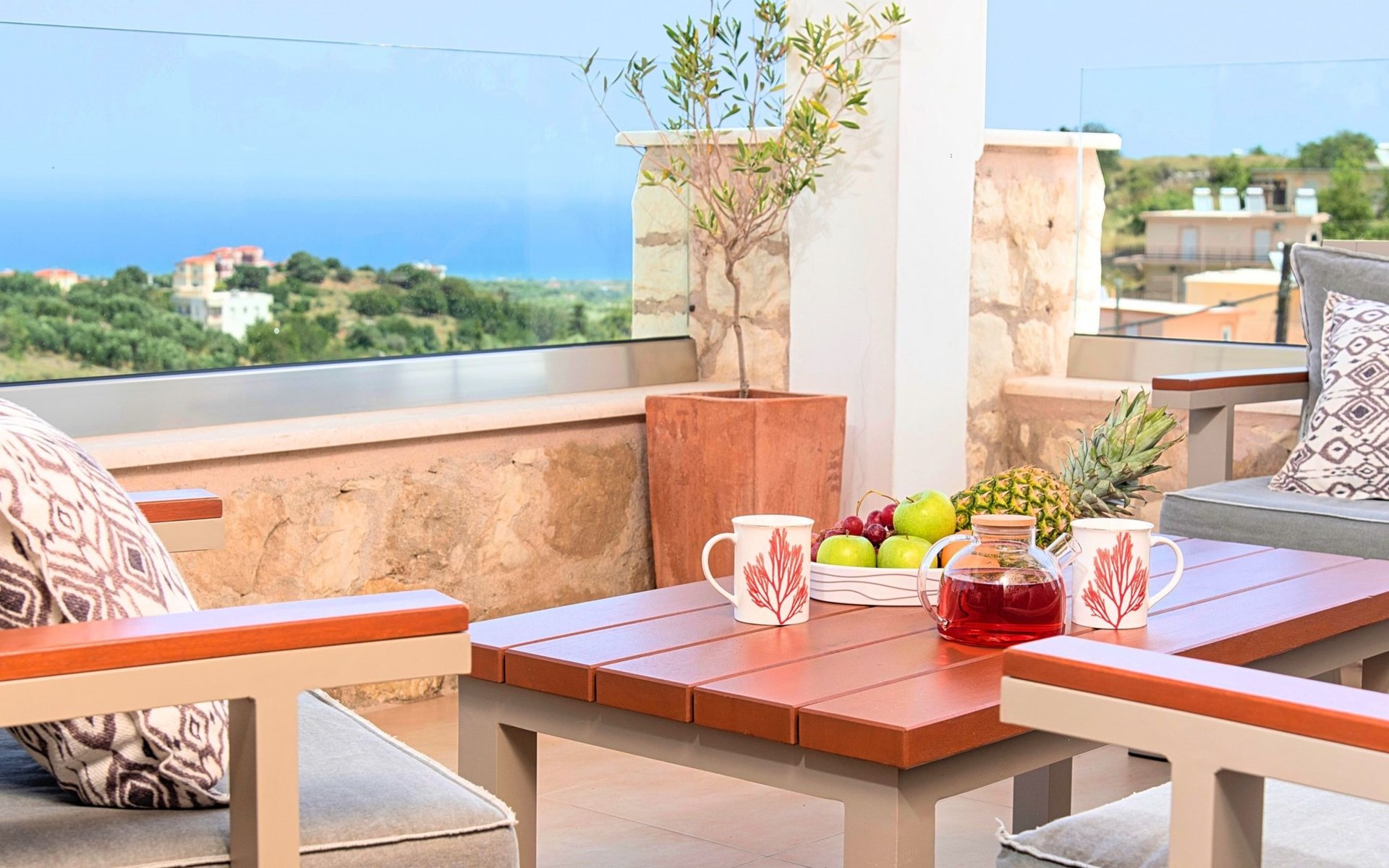 Built of stone and wood, Acrothea with the natural landscape between the slopes of the mountains and the olive trees while giving the sense of a settlement. Crafted with ambition to offer visitors a unique experience through the perfect combination of outdoor activities, the comfort of spacious house and personalized services. Designed with respect to Cretan architecture that ensures the comfort and pleasant hospitality experience of its guests, the house is nestled on the side of a hill. Enjoy fascinating views of the endless Cretan sea and of Kournas village. Luxury is in the fine tactful details, the villa presents a delightful landscape of island Mediterranean gardens, a tranquil atmosphere, protected from the usual crowds. Acrothea Villa is ideal for families or group of friends● Swimming pool with a whirlpool edge ● Two Sun lounge areas with sun beds next to the Swimming pool ● Private Parking.The outdoor pool is heated and can reach 6 to 8 degrees more that the 24 h average air temperature with maximum value of 29°CAcrothea Villa has the following facilities: ● A large living-dining room with easy access to the terraces and the pool and the whirlpool area. ● House Kitchen provide oven, fridge, coffee maker, tea facilities, juicer, toaster and dish sets. ● The house offers two bathrooms and a wc at the living room ● Three bedrooms ● Master bedroom with a Queen size double bed, wardrobe room, private bathroom with bathtub. ● Second bedroom with a two twin push together single beds. ● Third bedroom with two twin push together single beds. ● A living area between the bedrooms with a large sofa (the sofa offers two bunk beds ● TV at the Living Room and the bedrooms ● Air-condition ● Free WiFi internet access ● Outdoor Dinning Set (table with chairs) ● BBQ area with traditional brick oven and Dinning set ● Washing machine ● Dishwasher ● An iron and an ironing board ● Safe deposit box ● Hair dryer ● Fine linens and towels ● Toiletries ● Swimming pool towels ● Baby cot ● High chair ● Towels / bed linen, Cleaning- Every 3 or 4 days Guests of Acrothea Villa can also be provided with the following services, upon request and at extra cost: ● Car rental service ● Transfer service ● Travel services ● Massage sessions ● Daily delivery of groceries ● Diving lessons ● Climbing lessons ● Water sports ● Yacht cruises ● BabysittingThe old houses, the village square, the pottery workshop opposite the large kafeneio and Agapinakis's taverna "Kali Kardia", with its wonderful salads and delicious meat, are the first things you will notice in the village of Kournas. The village of Kournas has 500 inhabitants and lies at an altitude of 200 metres in the foothills of Mount Dafnomadara (1680 m). Kournas prospered from the 16th century onwards and is linked to many battles for freedom from the Turks. It was the seat of the Revolutionary Government in the Rising of 1866 and the seat of the Cretan General Assembly in 1897. The village of Kournas lacks particular facilities for tourists, but nearby Georgioupoli offers everything you might need. In the village of Kournas is the church of Agios Georgios, to which leads a road to the right of the square. It was built in Byzantine times, with architectural features added later during the Venetian period. The church is locked and you will not be able to see inside unless you find someone in the neighbourhood to give you the key, but it’s worth a try.Kournas is a pretty traditional village 8 km from Georgioupoli and about 4 km from Lake Kournas. If you are visiting Lake Kournas it is worth driving 15 minutes further along the narrow uphill road to Kournas. While the lake is 'touristy', Kournas village is completely unaffected by tourism and takes visitors on a journey back in time, as do many villages in the interior of Crete (these words were written in 2009, I hope I won’t need to change them in future…). 1002432