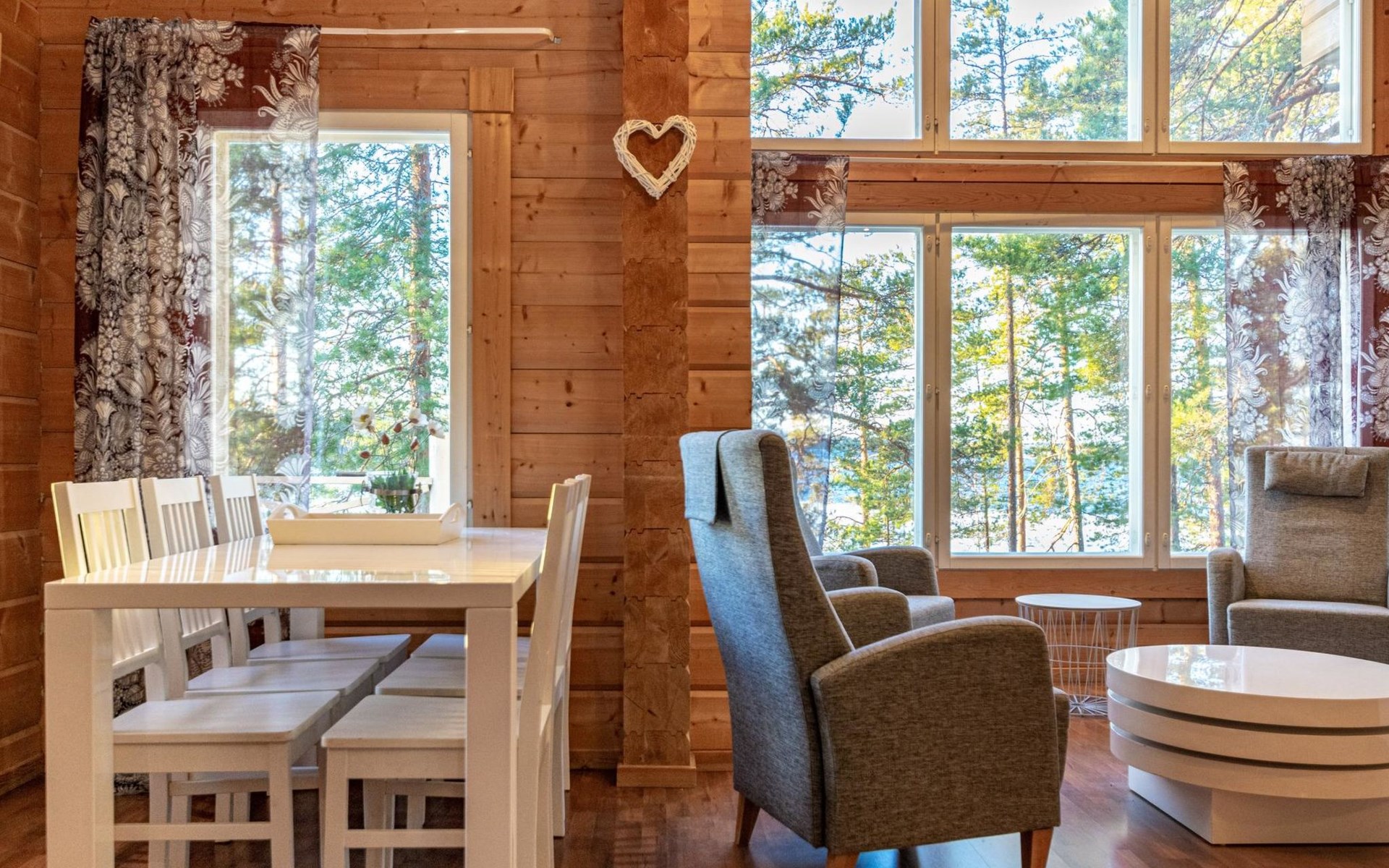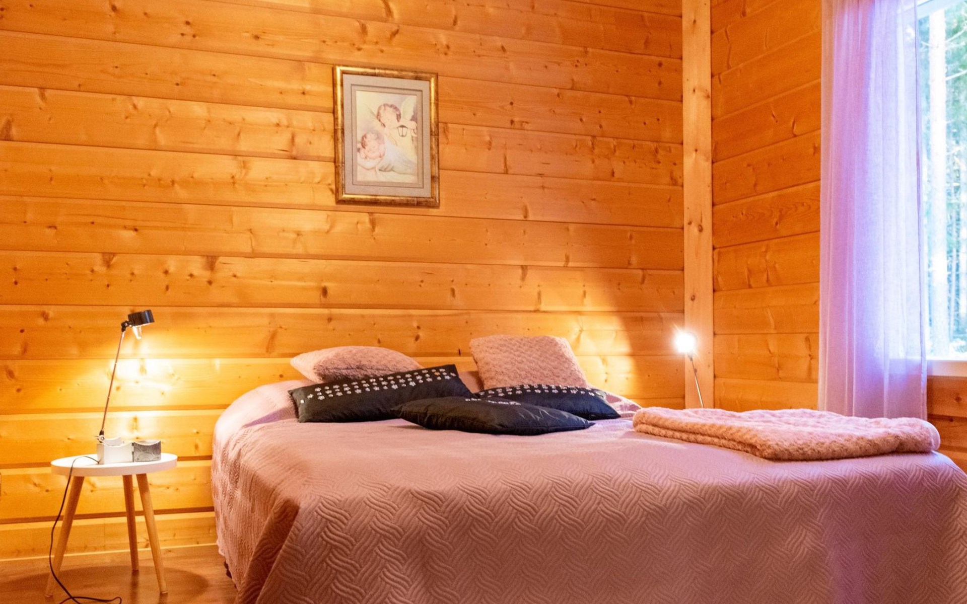 The only neighbor is 30 m away, the owner's other cabin, 17313 Näsinneito. Together, these two neighboring cabins can accommodate groups of up to 15 people.