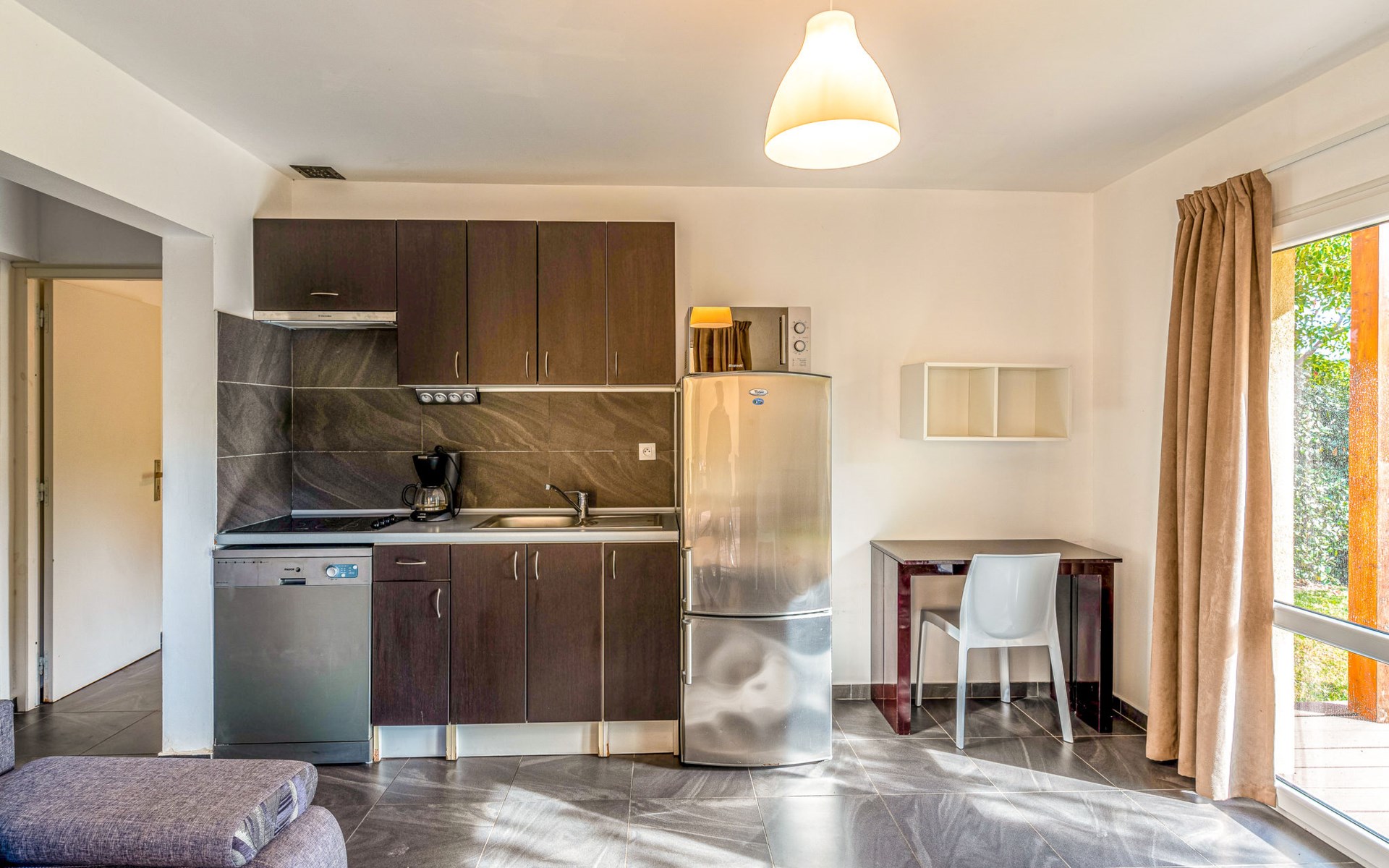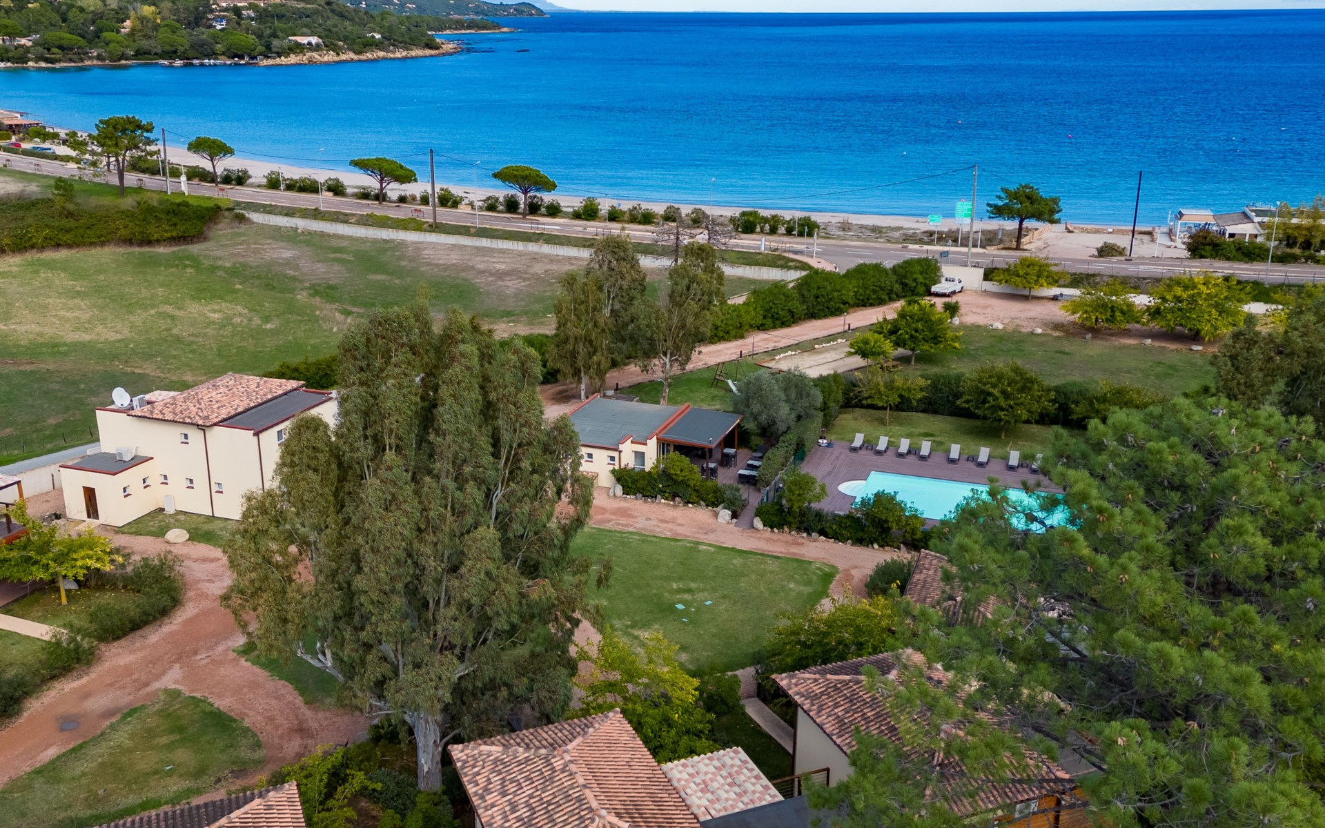 Vakantiecomplex "Marina di Favone", van 2 verdiepingen. 3 huizen in de woning. 18 appartementen in de woning. 300 m van het centrum van Favone, 10 km van het centrum van Solenzara, 116 km van het centrum van Bastia, 200 m van zee, de straat oversteken. Voor medegebruik: terrein 15.000 m2 met planten en bomen, weide, openluchtzwembad (14 x 7 m, seizoensgebonden beschikbaarheid: 30.Apr. - 31.Okt. openingstijden zwembad: 09:00-20:00). WC bij het zwembad, buitendouche, hot tub, jeu de boules, terras, tuinmeubelen (glijbaan, schommel). In het complex: receptie, bar, Internet (WiFi), wasmachine, droger (voor medegebruik). Parkeerplaats op het terrein. Oplaadstation. Winkel 10 km, bushalte 350 m, zandstrand "Plage de Favone" 200 m. Midgetgolf 100 m. Attracties in de buurt: Porto-Vecchio 28 km, Plage de Santa Giulia 36 km, Plage de Palombaggia 37 km, Bonifacio 55 km. Auto noodzakelijk. De afgebeelde foto is slechts een voorbeeld.