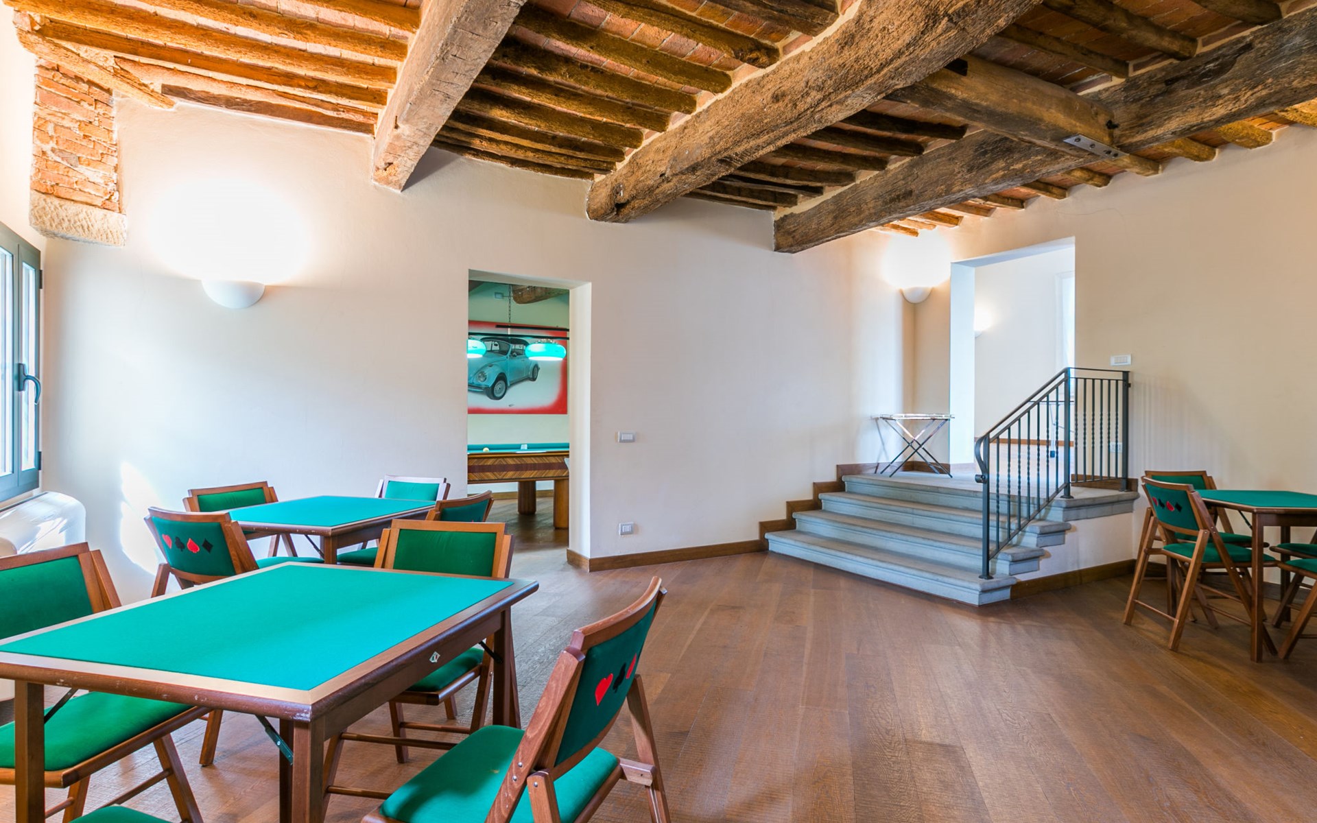 Historisch landhuis "Villa La Guardia Vecchia", vrijstaand, bouwjaar 1700, gerenoveerd, omgeven door weiden. 700 m van het centrum van Crespina Lorenzana, 30 km van het centrum van Pisa, 33 km van het centrum van Livorno, geïsoleerde, rustige, zonnige ligging op een heuvel, 30 km van zee, te midden van groen. Voor alleengebruik: park (omheind), bloemen en bomen, mooie tuin ter ontspanning, openluchtzwembad (15 x 7 m, 120 - 275 cm diepte, seizoensgebonden beschikbaarheid: 01.Mei. - 01.Okt.). Douche/WC bij het zwembad, tennisbaan (1 x hard court), tafeltennis, tuinmeubelen, barbecue. In het huis: biljart, Verwarming ter plaatse te betalen, verwarming alleen beschikbaar van 01.Nov. - 15.Apr.. Parkeerplaats op het terrein. Restaurant 1 km, bushalte 500 m, zandstrand "Castiglioncello" 35 km, rotsstrand "Calafuria" 38 km, thermaalbad "Cascina Terme" 10 km. Golfterrein (9 holes) 30 km, manege 500 m. Attracties in de buurt: Villa Belvedere 500 m, Certosa di Calci 23 km, Lajatico 29 km, Volterra 46 km, San Gimignano 55 km, Lucca 63 km. Auto noodzakelijk. Geschikt voor families. Groepen jongeren uitsluitend op aanvraag. Geschikt voor evenementen.