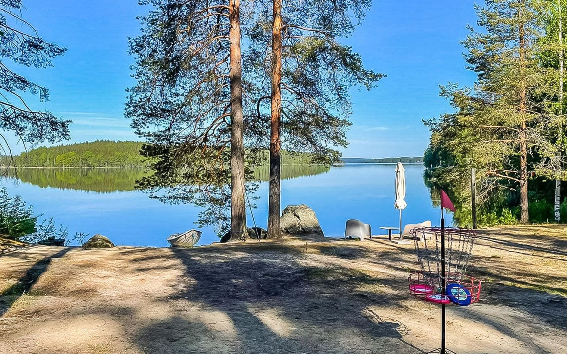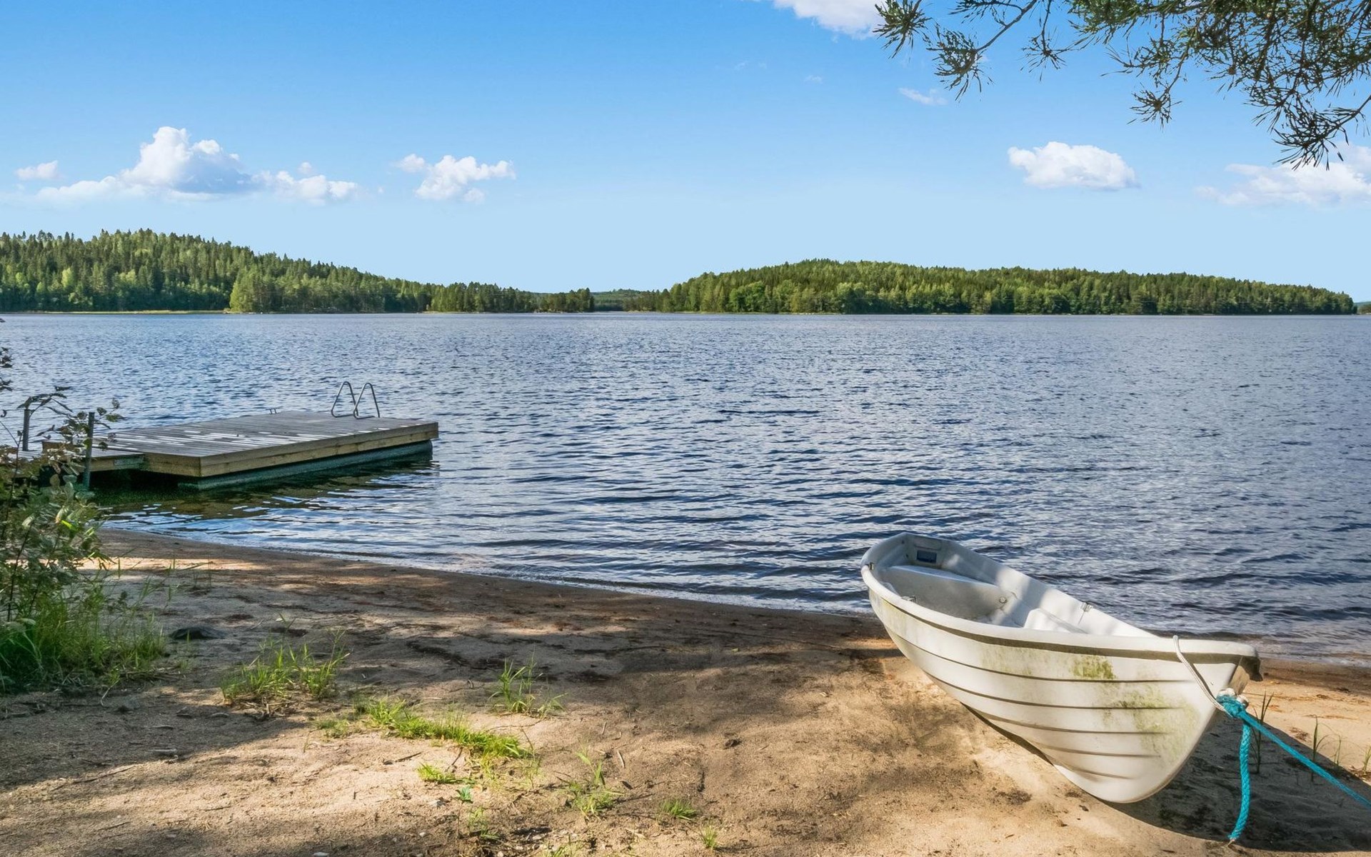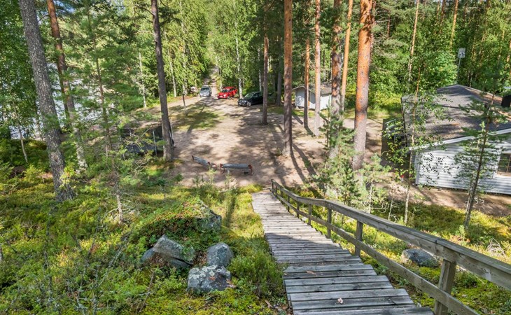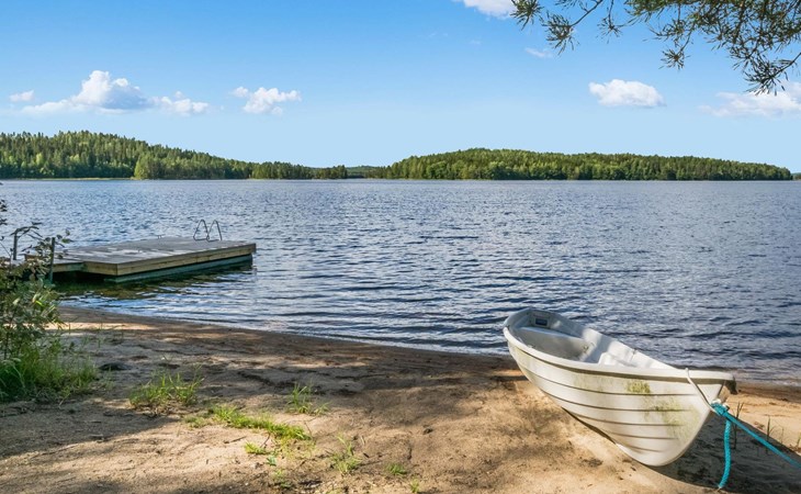 49 km to the north from Savonlinna, lake Saimaa/Pyyvesi 30 m, hard, evenly deepening sand bottom, pier and rowing boat.