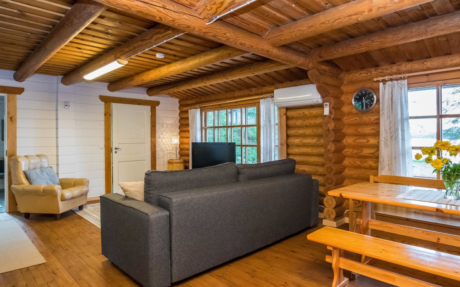 The frame of the log cabin was originally built in 1982, but it was moved to its current location in 2008 and rebuilt, the extension part (bedroom and washroom) is built in 2021.