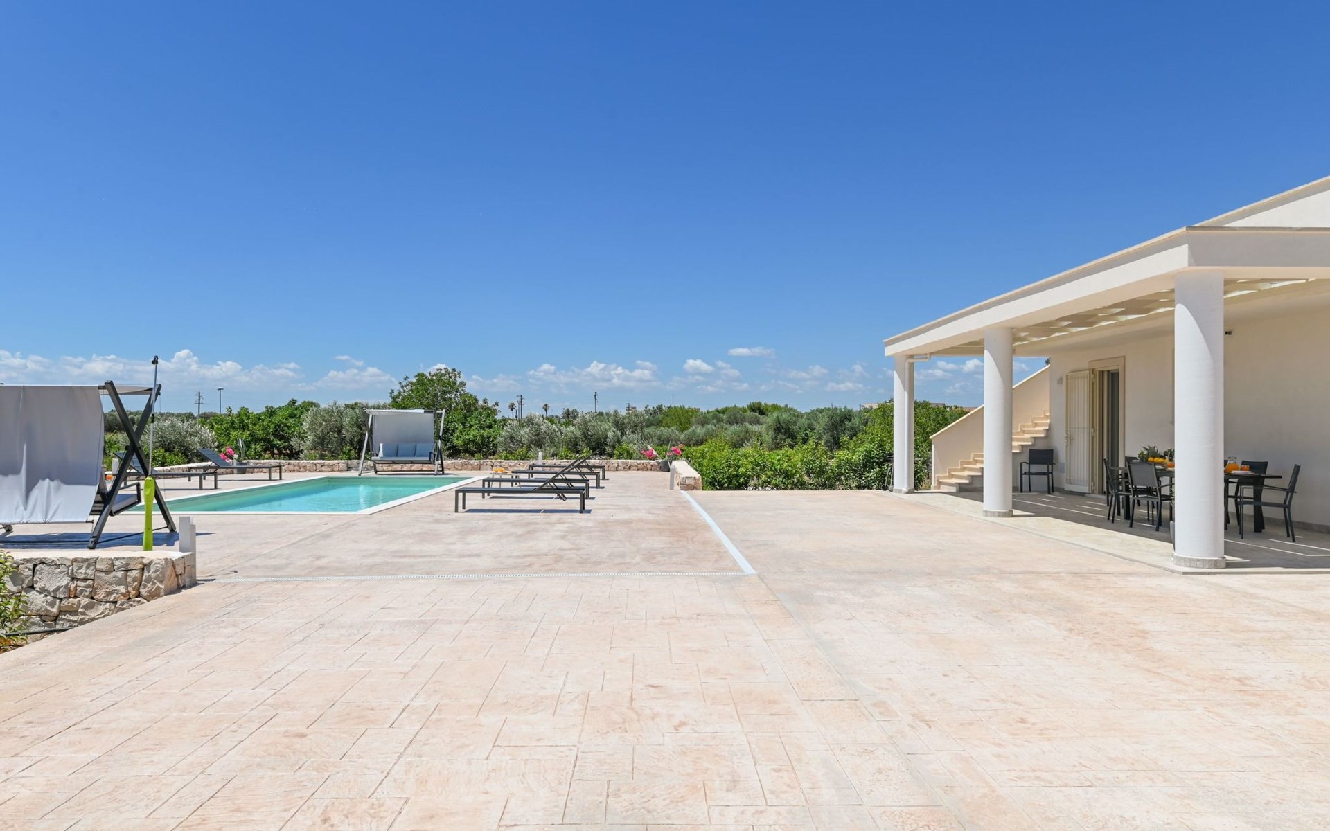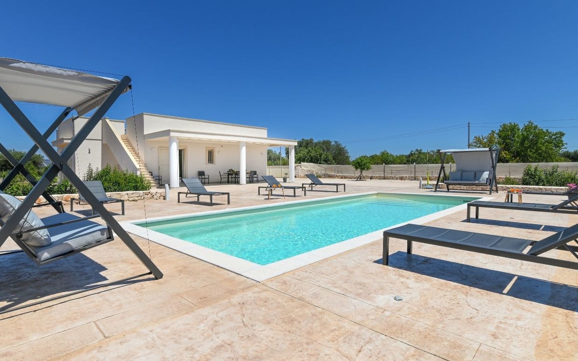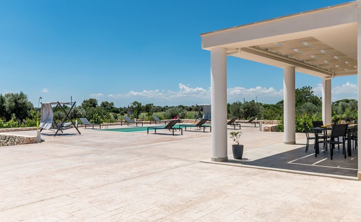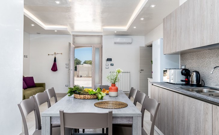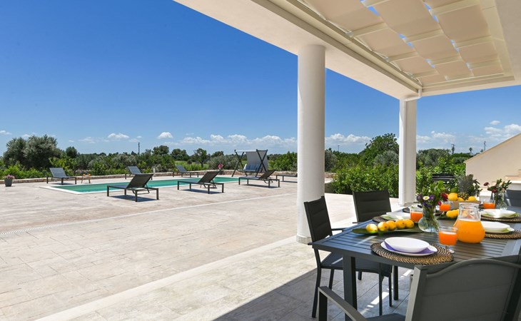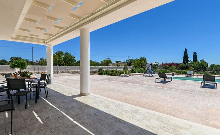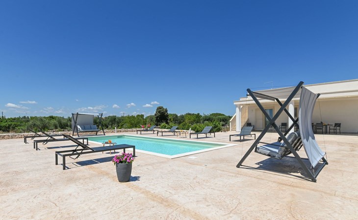 This exceptional villa is the ideal place to gather with family and friends. It is located in San Vito dei Normanni, 10 km from the Torre Guaceto Reserve and Ostuni, known as the 'White City'. Outdoor living includes a beautiful veranda overlooking the pool and two comfortable rocking chairs for snoozing in the shade. Enjoy a private pool, four bedrooms and proximity to the castle square. You will find shops, bars and restaurants within 1000 m. A wide choice of regional culinary experiences is easily accessible including many masserias with extraordinary local produce and fabulous fish and seafood restaurants.The accommodationthe garden is yours and your family's alone;you have a super-equipped kitchen for preparing meals: coffee machine, toaster, microwave as well as a convenient dishwasher;the garden is completely enclosed.Number of beds: 8Guest accessThe ground floor house consists of the following:n.3 double bedrooms, n.1 bedroom with n.2 single beds, n.1 living room with double sofa bed,n.2 bathroom with shower.Outside:n.1 veranda facing the swimming pool with dining table, n.1 veranda facing the gate entrance with lounges, private swimming pool 10x4m.A tour of the surroundingsFor those of you who love to visit ancient villages and renowned towns nearby during your holidays, here are our recommendations on the most popular destinations with distances (as the crow flies) from the property: Ostuni 10 km, Brindisi 19 km, Ceglie Messapica 27 km, Cisternino 37 km, Martina Franca and Locorotondo 38 km, Fasano safari zoo 38 km, Lecce 57 km, Alberobello 47 km, Monopoli 48 km, Polignano a Mare 57 km.Nearest airportsBrindisi (Bds) 20 km, Bari (Bri) 100 km, Napoli Capodichino (Nap) 350 km, Roma Ciampino (Cia) 522 km and Roma Fiumicino (Fco) 550 km. IT074017B400068386