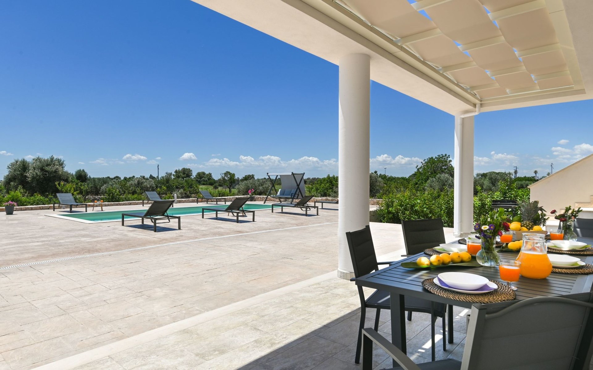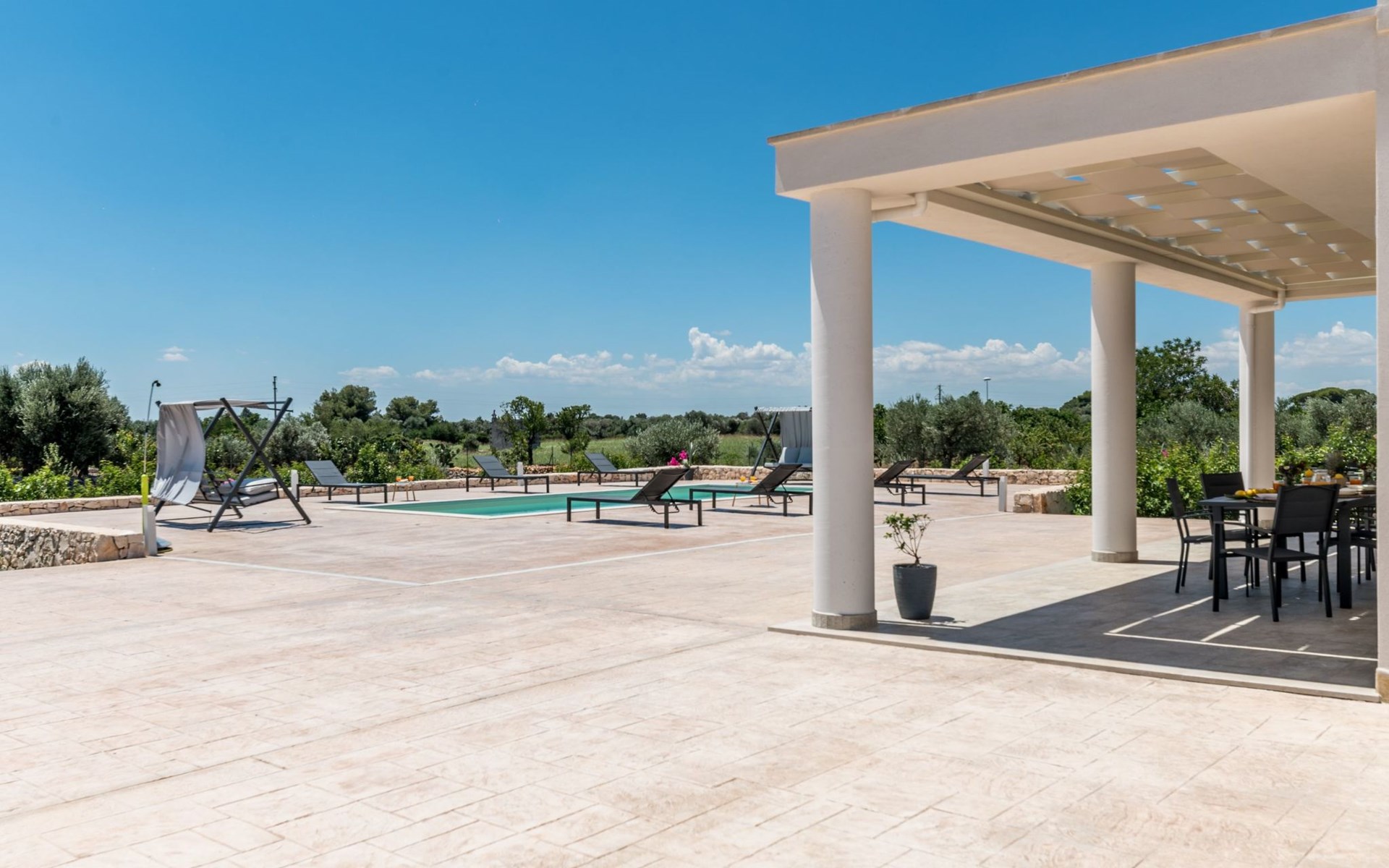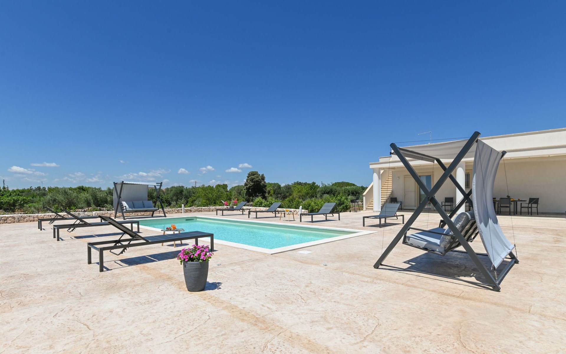 This exceptional villa is the ideal place to gather with family and friends. It is located in San Vito dei Normanni, 10 km from the Torre Guaceto Reserve and Ostuni, known as the 'White City'. Outdoor living includes a beautiful veranda overlooking the pool and two comfortable rocking chairs for snoozing in the shade. Enjoy a private pool, four bedrooms and proximity to the castle square. You will find shops, bars and restaurants within 1000 m. A wide choice of regional culinary experiences is easily accessible including many masserias with extraordinary local produce and fabulous fish and seafood restaurants.The accommodationthe garden is yours and your family's alone;you have a super-equipped kitchen for preparing meals: coffee machine, toaster, microwave as well as a convenient dishwasher;the garden is completely enclosed.Number of beds: 8Guest accessThe ground floor house consists of the following:n.3 double bedrooms, n.1 bedroom with n.2 single beds, n.1 living room with double sofa bed,n.2 bathroom with shower.Outside:n.1 veranda facing the swimming pool with dining table, n.1 veranda facing the gate entrance with lounges, private swimming pool 10x4m.A tour of the surroundingsFor those of you who love to visit ancient villages and renowned towns nearby during your holidays, here are our recommendations on the most popular destinations with distances (as the crow flies) from the property: Ostuni 10 km, Brindisi 19 km, Ceglie Messapica 27 km, Cisternino 37 km, Martina Franca and Locorotondo 38 km, Fasano safari zoo 38 km, Lecce 57 km, Alberobello 47 km, Monopoli 48 km, Polignano a Mare 57 km.Nearest airportsBrindisi (Bds) 20 km, Bari (Bri) 100 km, Napoli Capodichino (Nap) 350 km, Roma Ciampino (Cia) 522 km and Roma Fiumicino (Fco) 550 km. IT074017B400068386