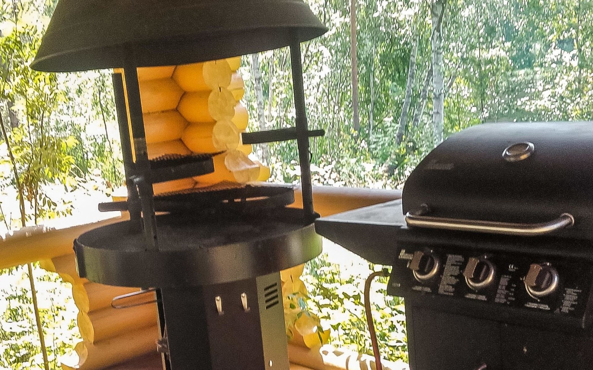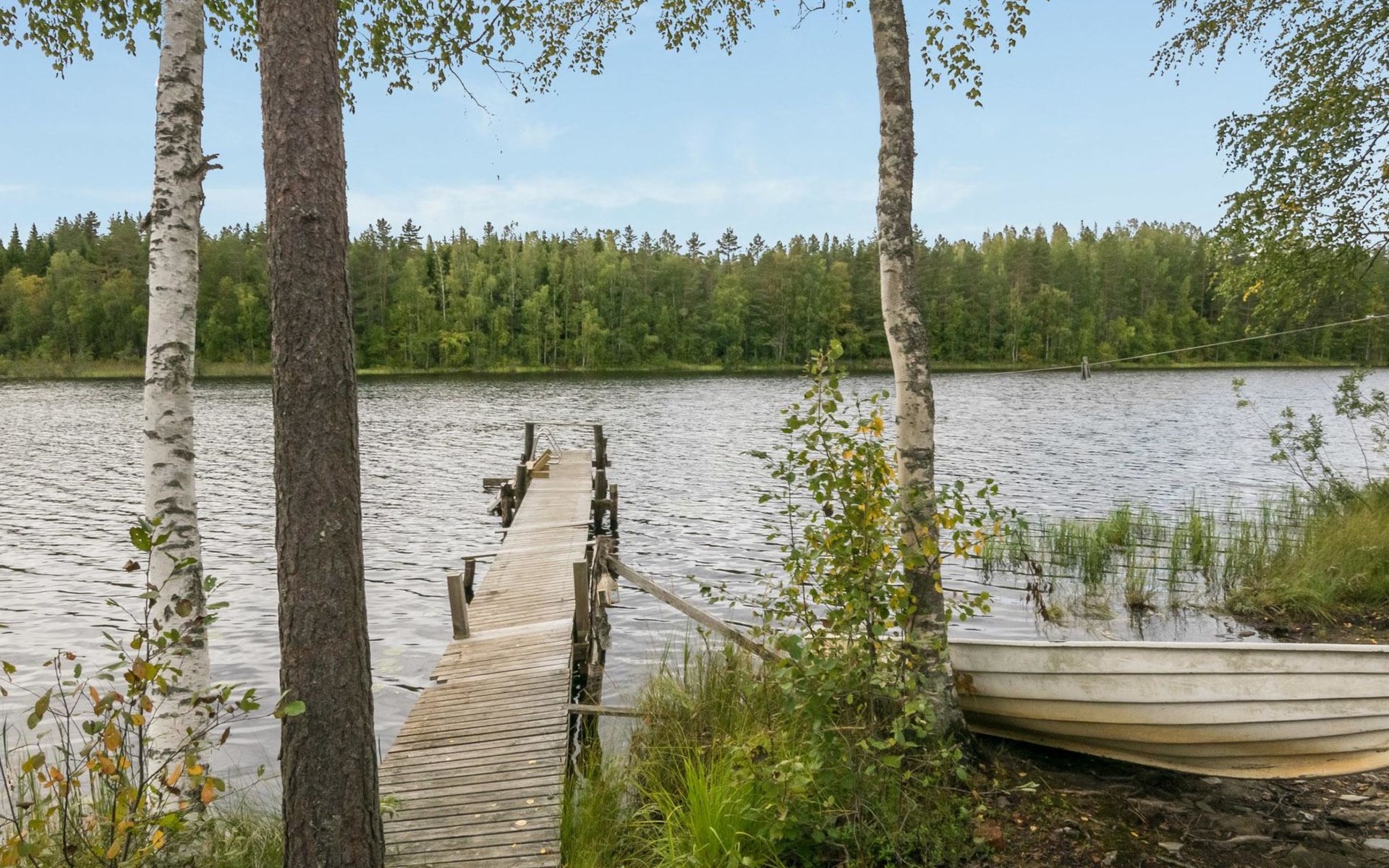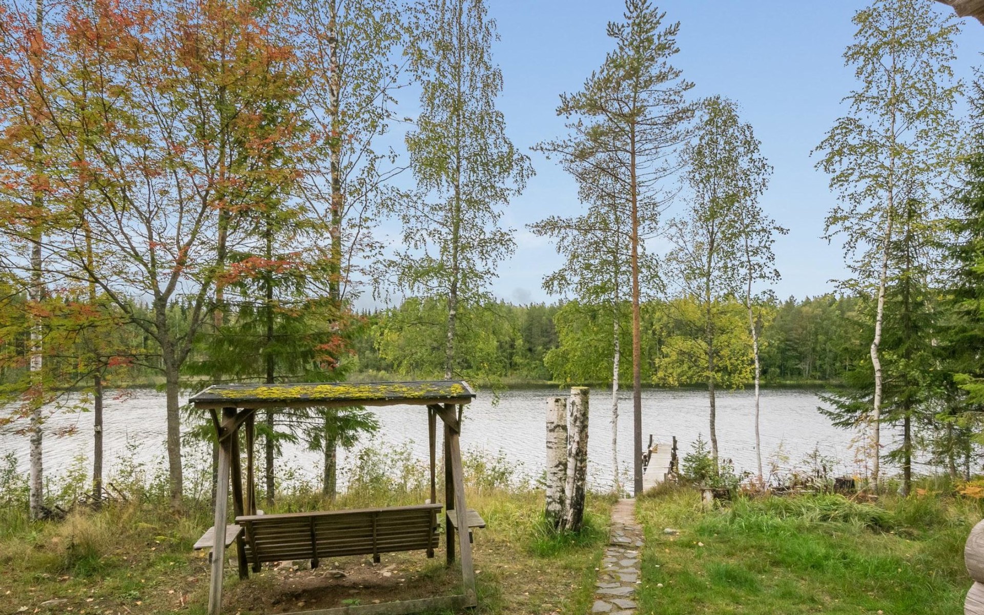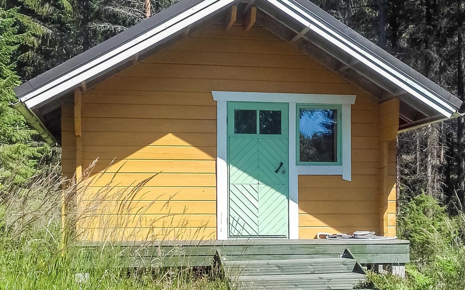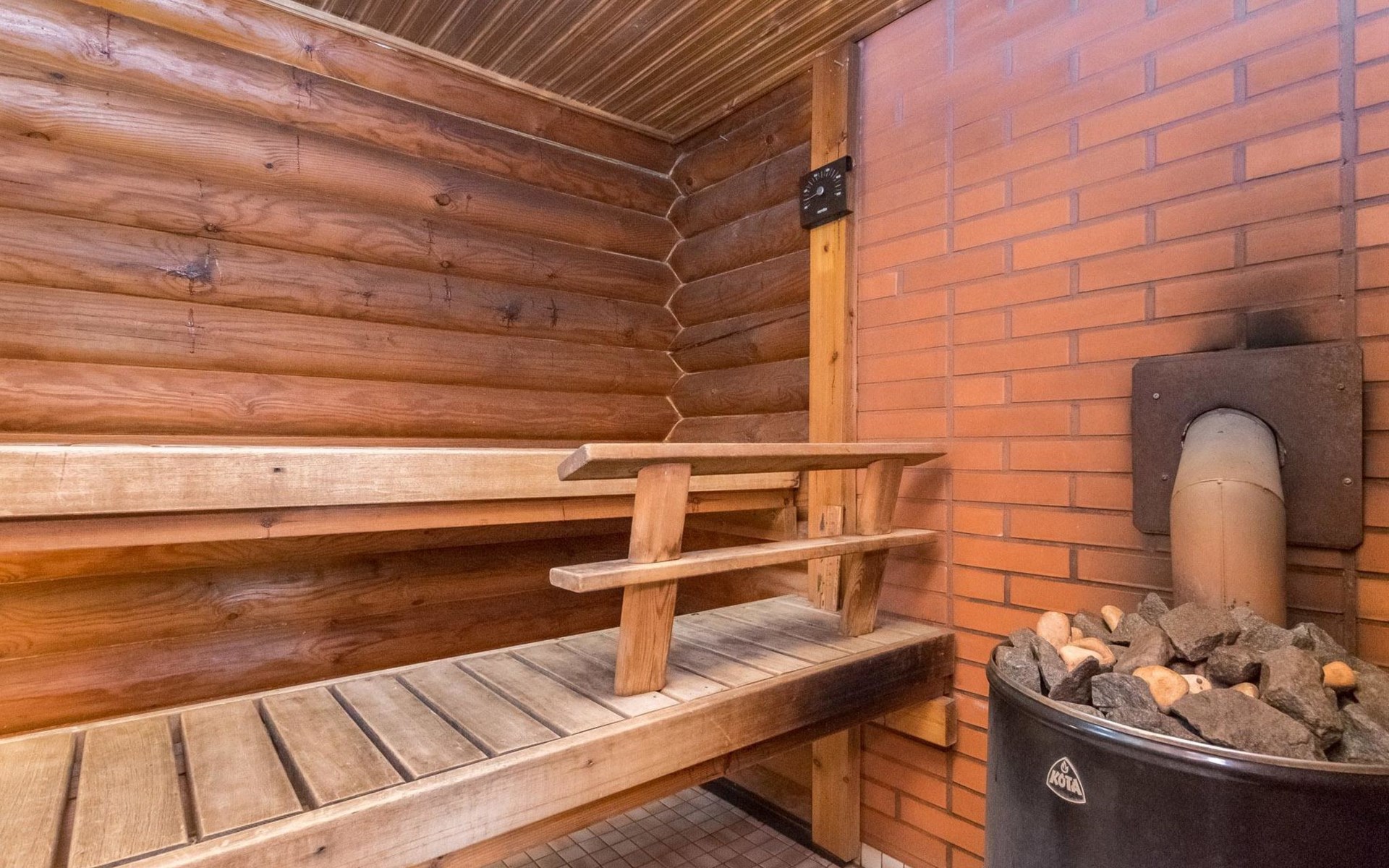 Log cabin, 1997, kitchenette, living room, sleeping loft with 2 double beds, sauna, washing room (toilet) access through porch, veranda.