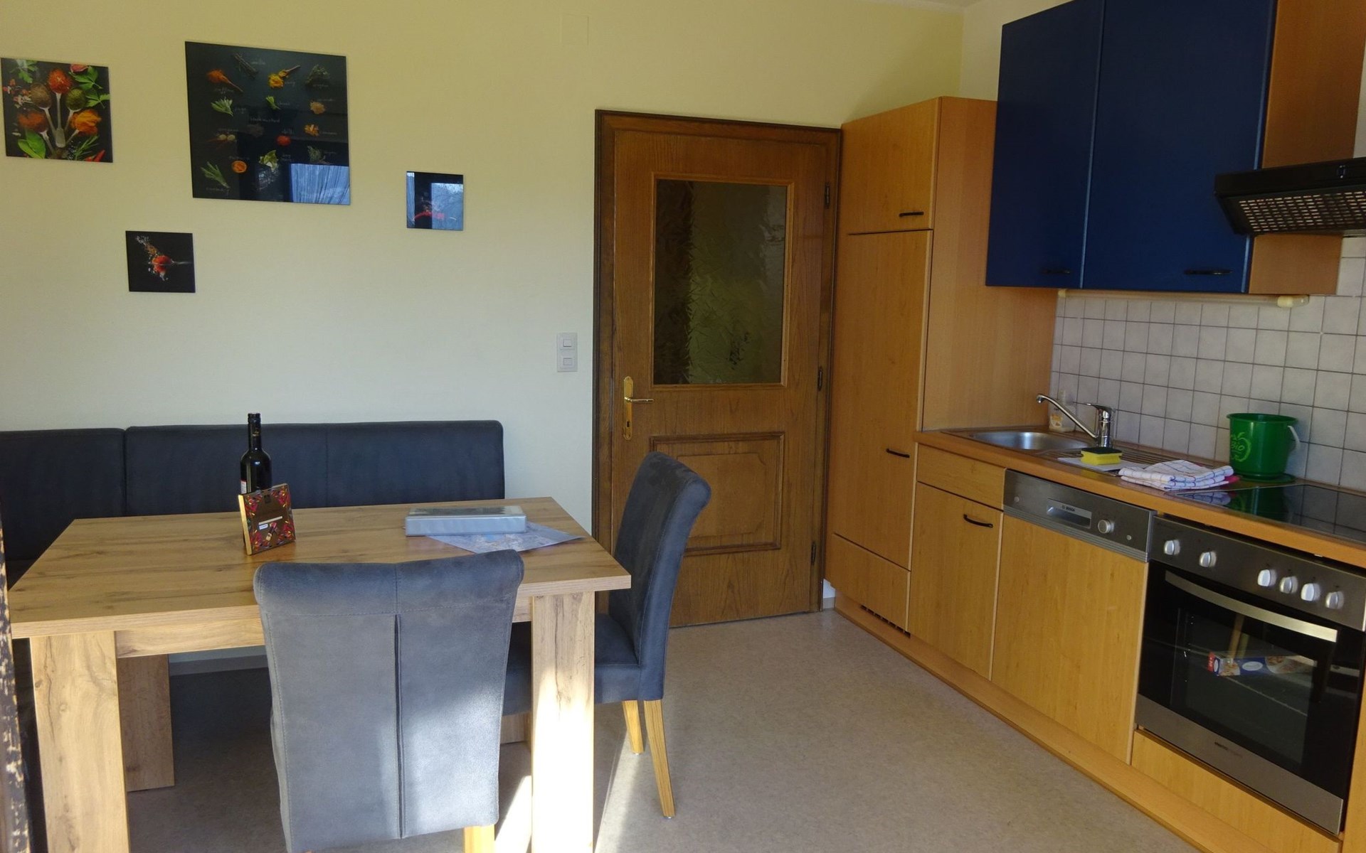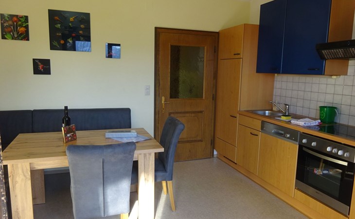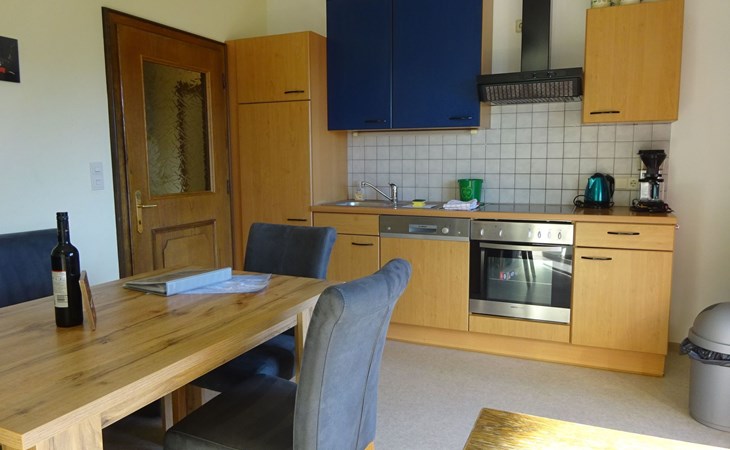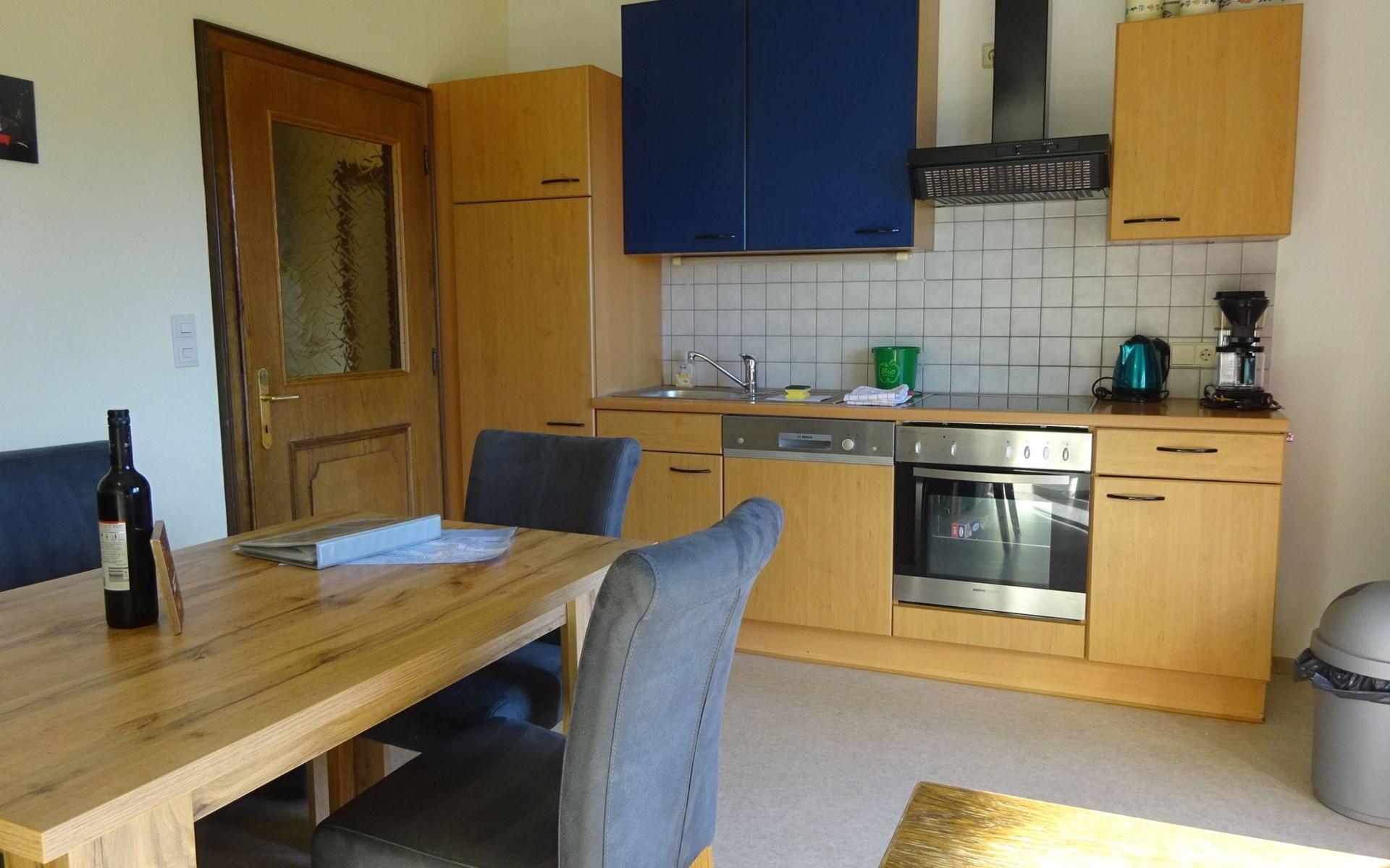 * Keuken met eethoek, afwasmachine, koelkast met vriesvak, keramische kookplaat, oven, koffiezetapparaat en waterkoker