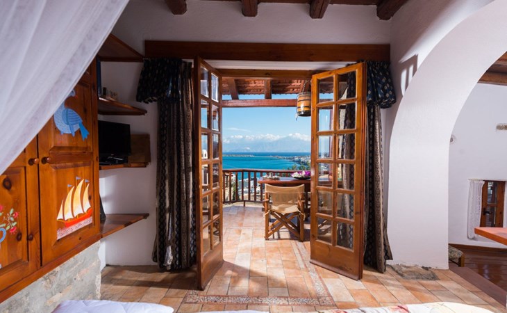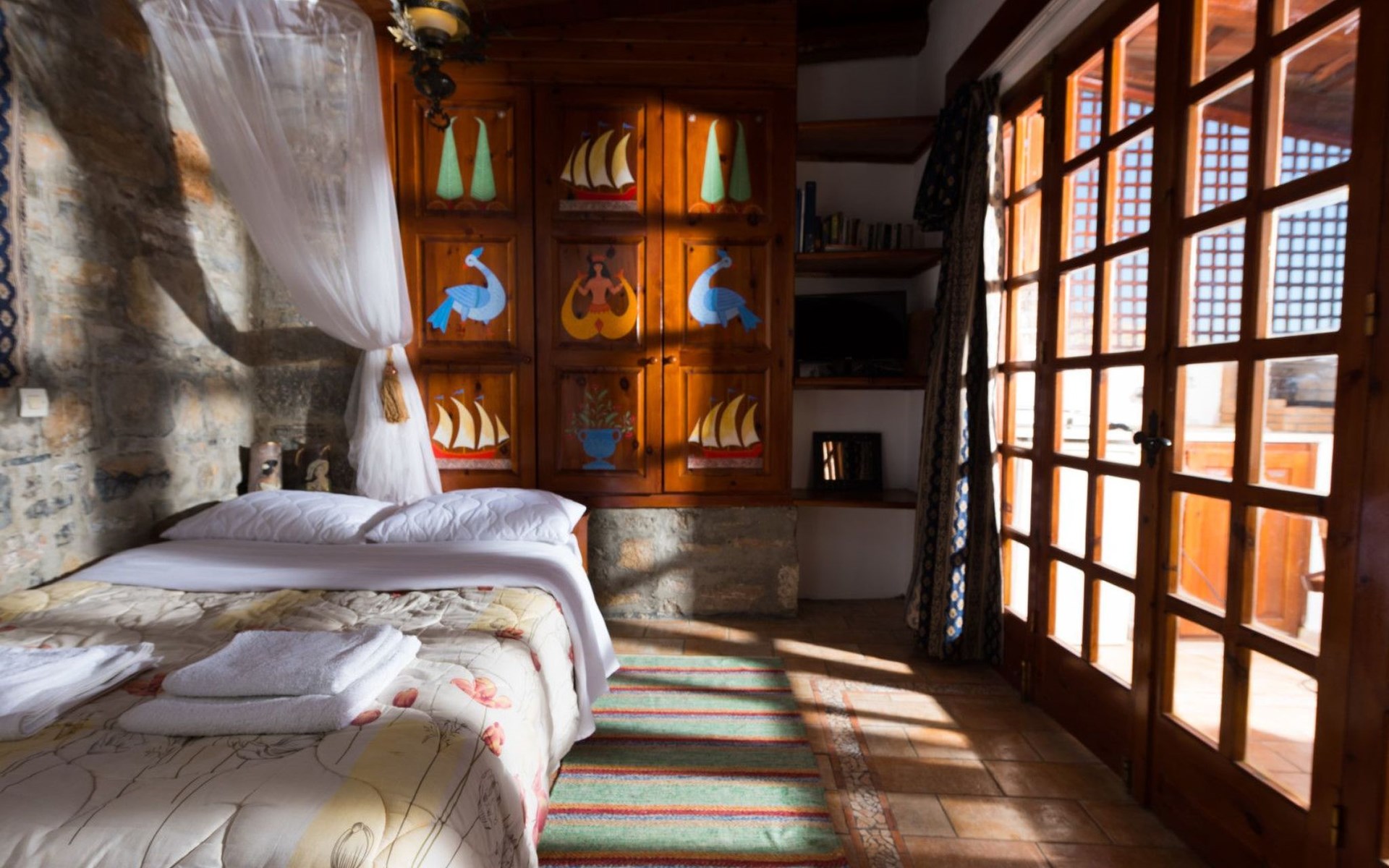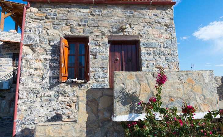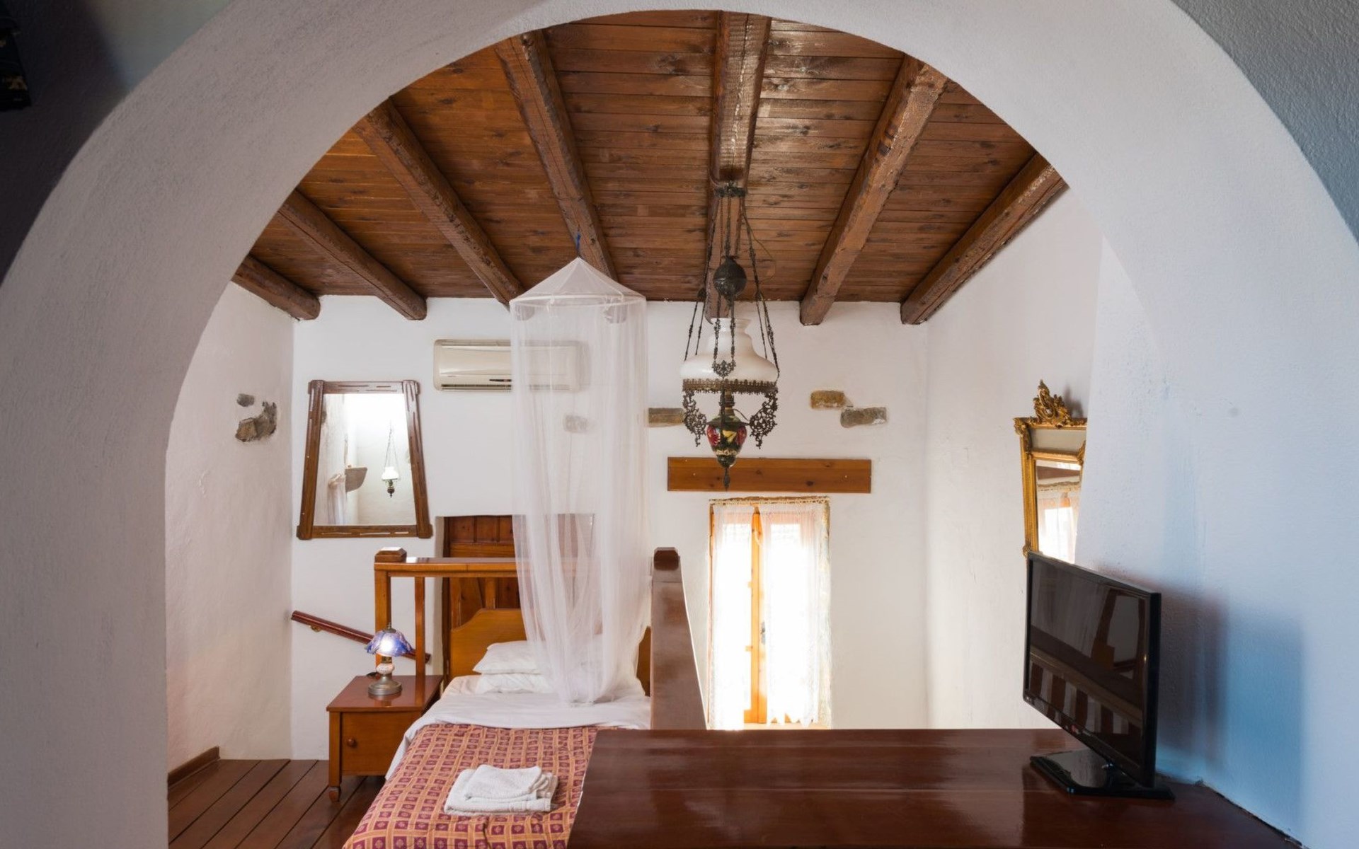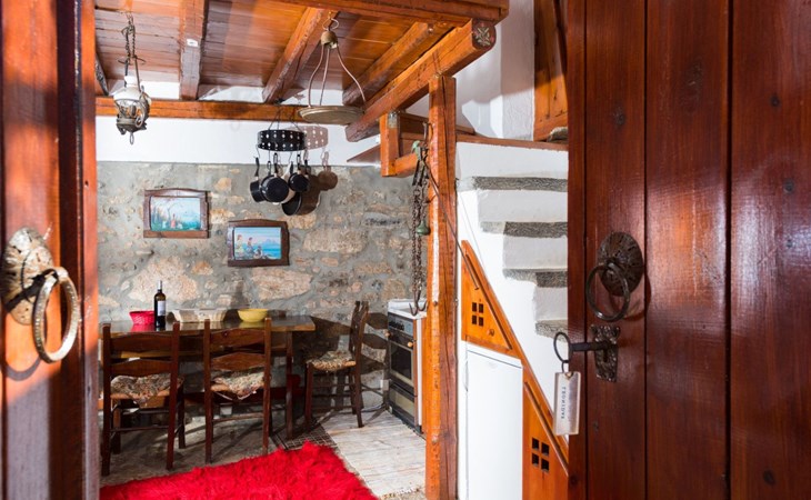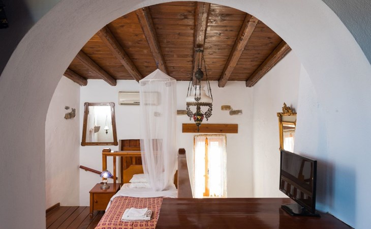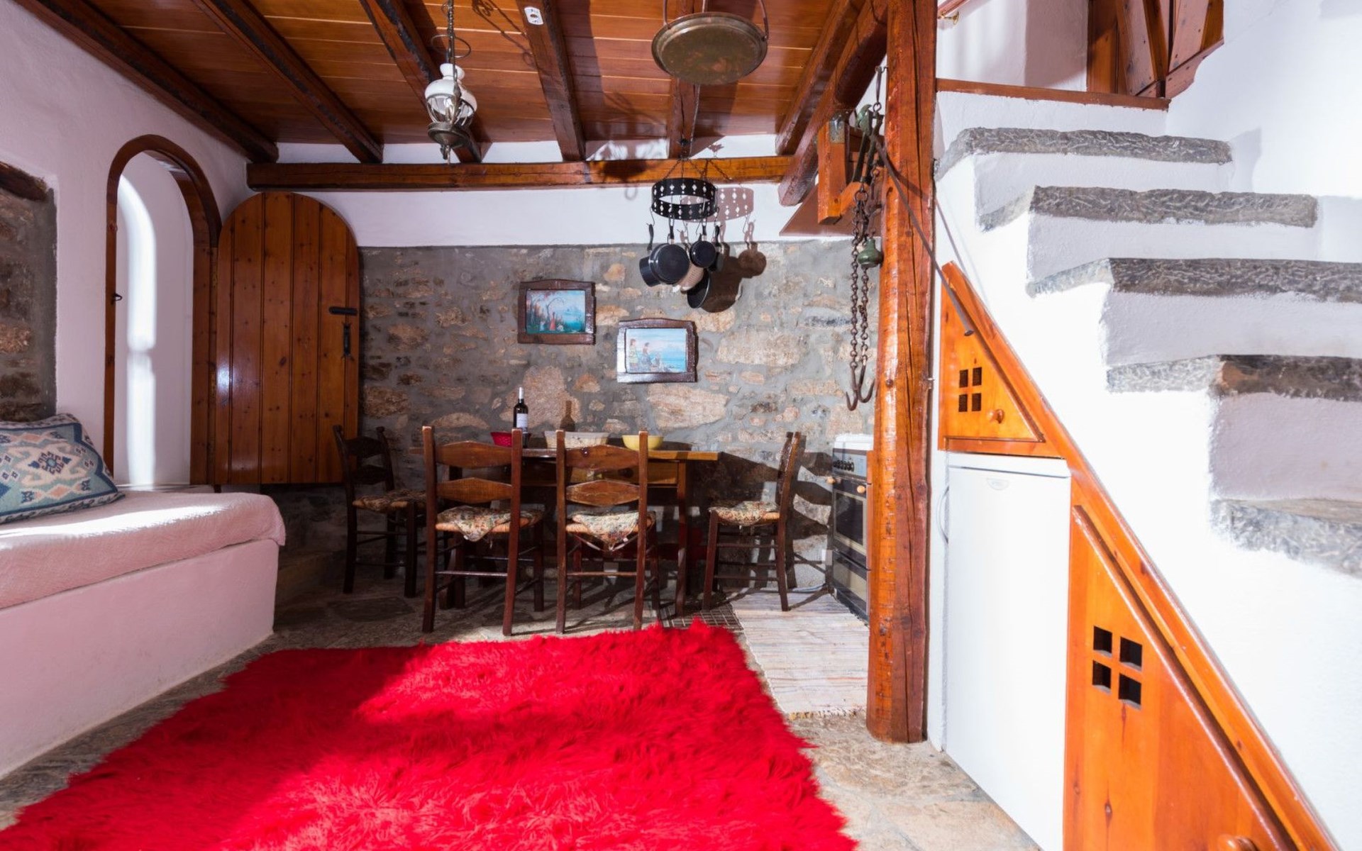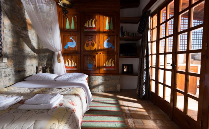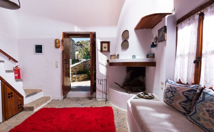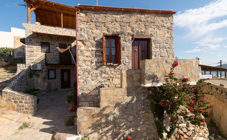 Dit huis ligt in het dorp Mavrikiano, een dorp met uitzicht op Elounda. Leonidas is geschikt voor 3 personen in twee verschillende ruimtes. A/C inbegrepen. Je komt binnen in de ruime zit- en eethoek met een bank aan de linkerkant naast de open haard. Aan de rechterkant is een complete keuken met alle keukengerei, en aan de linkerkant is een badkamer. Een paar trappen omhoog en je bent op de tussenverdieping met een slaapkamer, een eenpersoonsbed en helemaal aan het eind een tweepersoonsbed. De deur rechts leidt je naar het balkon. De hoofdslaapkamer en de veranda, met een zomerkeukentje met een koelkast en een barbecue, bieden een adembenemend uitzicht op de oceaan.