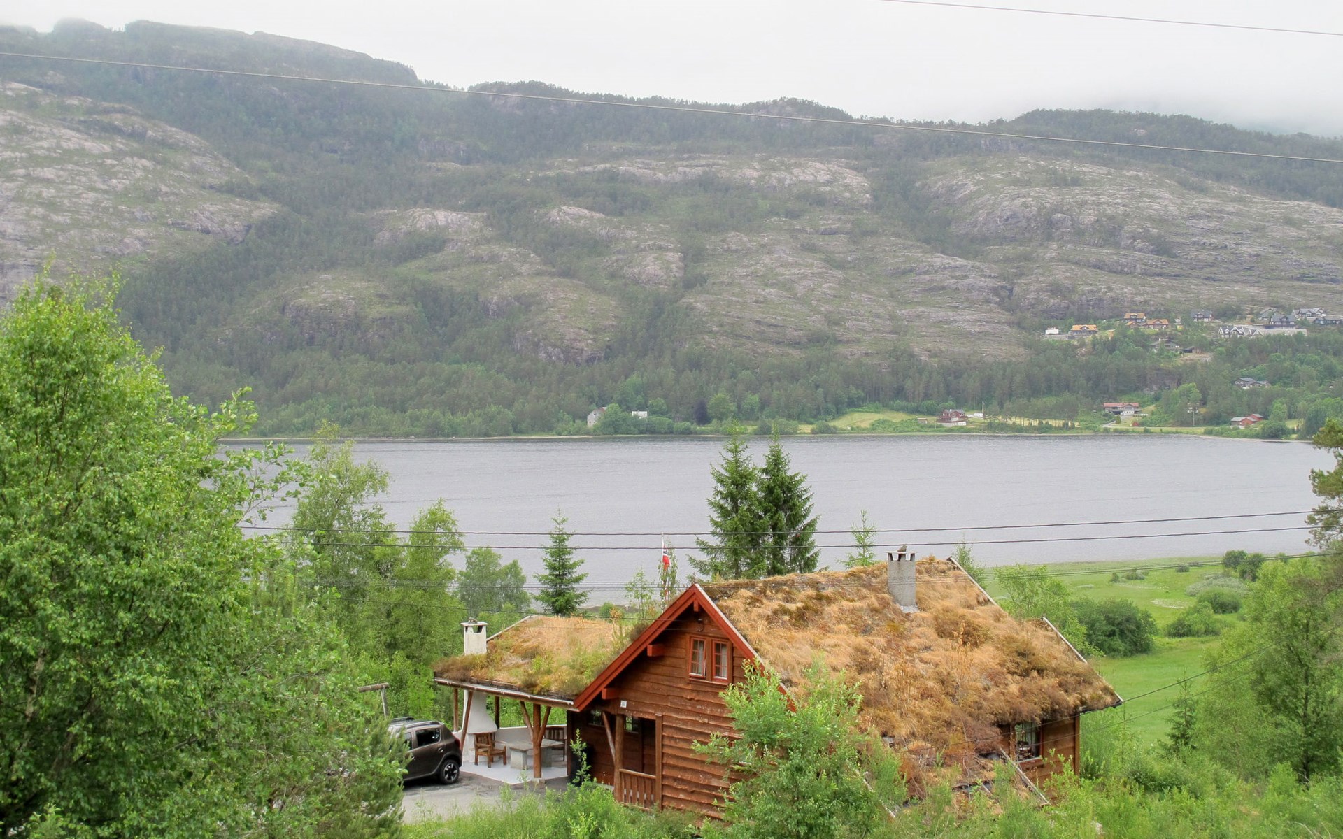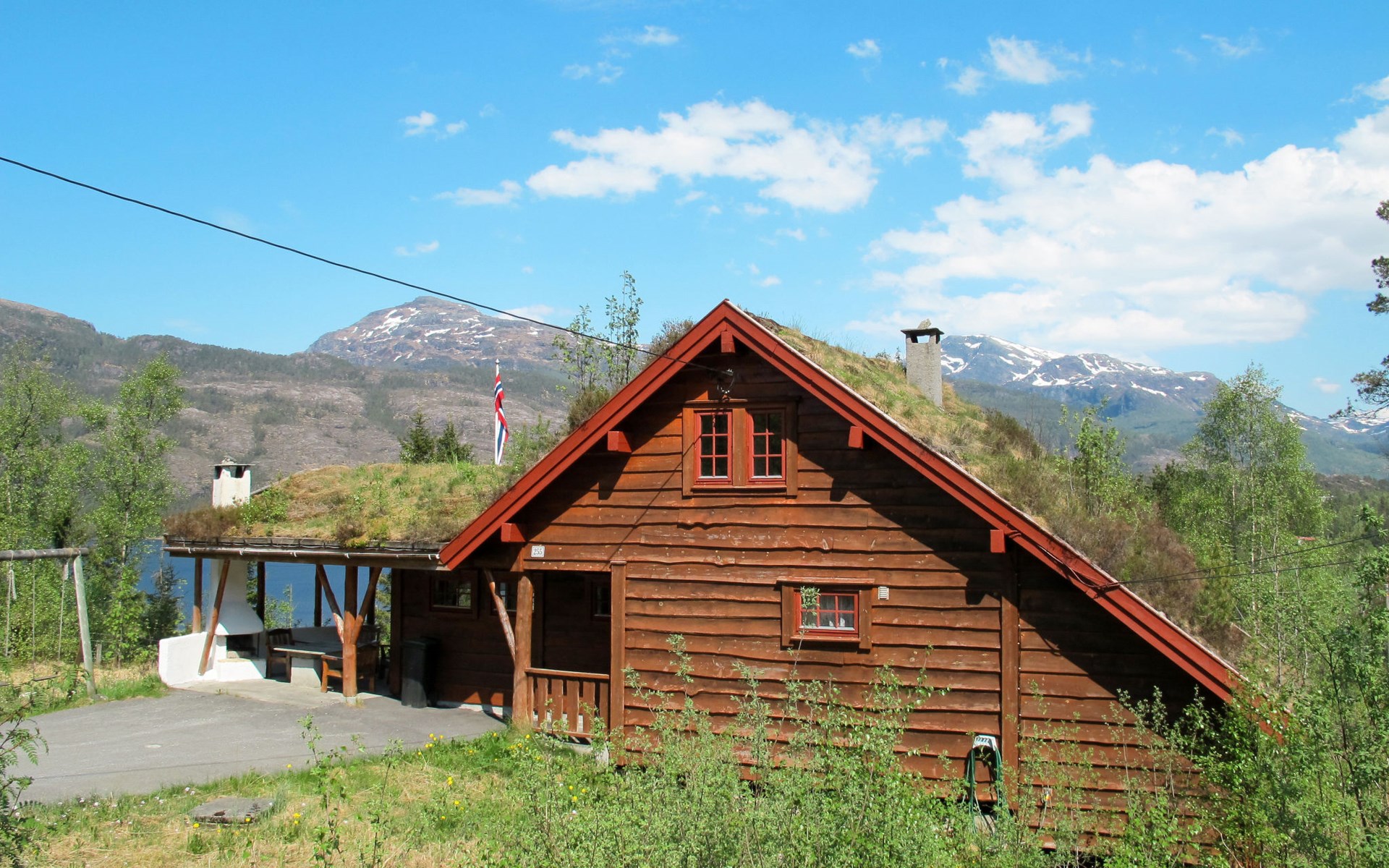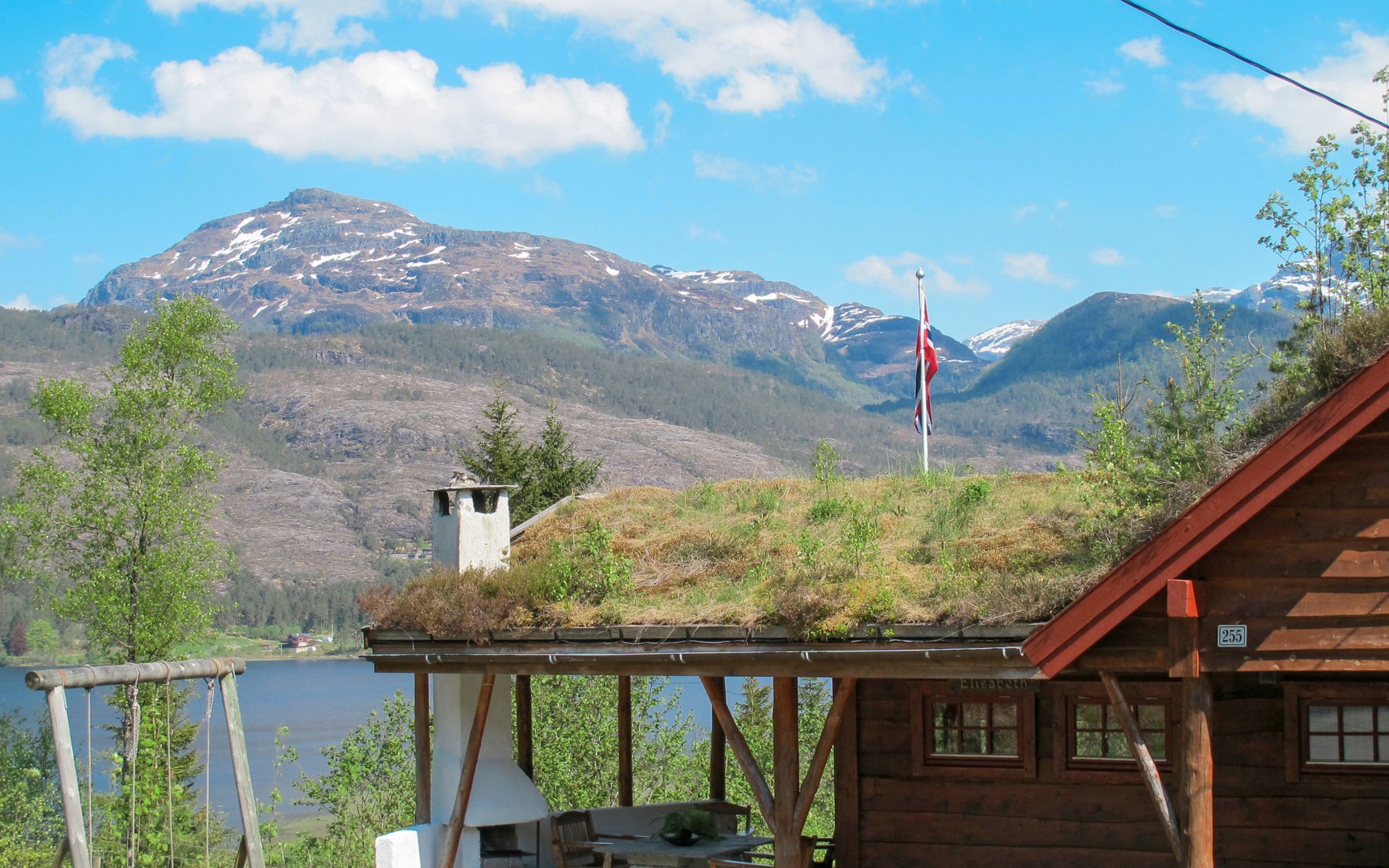 Houten huis "Elisabeth", 79 m boven zeeniveau, bouwjaar 1995. 2.5 km van het centrum van Eikelandsosen, 53 km van het centrum van Bergen, 55 km van het centrum van Norheimsund, 250 m van het meer, 3 km van de fjord. Voor alleengebruik: wild terrein. Barbecue. Roeiboot (op aanvraag ter plaatse overeen te komen), parkeerplaats op het terrein. Winkel 2.5 km, bushalte "Heimstad" 300 m, station "Bergen" 53 km, veerboot "Bergen" 53 km. Langlaufloipe 6 km, Vismogelijkheden 800 m.