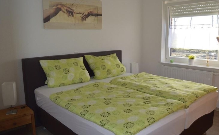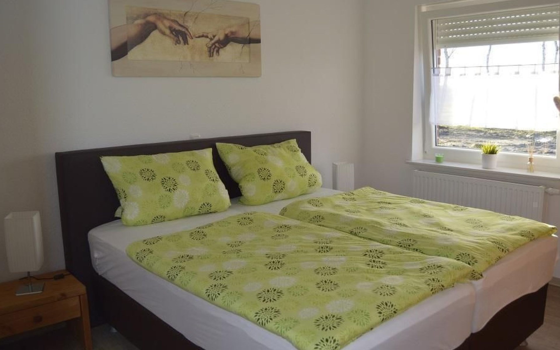 Spend the best time of the year in this comfortable holiday home with plenty of space for up to five people. The detached house is located in the immediate vicinity of the Bernsteinsee holiday park and is in a quiet location on a private road with little traffic.Inside the house you will find a spacious 100 m² without thresholds, making it handicapped accessible. The ground floor consists of the following rooms: An open-plan living room with a sofa bed, an armchair, a large flat-screen TV with DVD player, a hi-fi system, DVDs, CDs and a large dining table with five chairs. Next door is the fully equipped kitchen with hob, oven, dishwasher, microwave, filter coffee machine, capsule coffee machine (Netto), kettle, egg cooker, toaster, sandwich maker, blender, scales, etc. In addition, there are two bedrooms, one of which is furnished with a double bed (consisting of two mattresses of 0.90 m x 2.00 m each) and the second, the children's room, with a single bed (1.00 m x 2.00 m) (also a cot if necessary). From this room you can reach the gallery via a ladder, where there is a further double bed (1.60 m x 2.00 m). The bright daylight bathroom has a walk-in shower, washbasin, washing machine and WC.The holiday home is cleaned by "Pro Aqua" (floors, mattresses, etc.).Conservatory for cosy sitting even in wind and rain (not heated)Whirlpool (March/April to October)with outdoor sauna (can be used all year round)and a frieze shower2 folding bicyclesto be paid on site:Deposit (which you will get back after following the rules)WLANBarbecue = deposit (you will get it back after cleaning)Sauna (coin-operated) 30 min for 1€Flat rate for energy costsThe 550 m² property is fenced with a covered terrace, garden shed, garden furniture, sun loungers, parasol, barbecue, fire bowl, parking facilities and lots of greenery all around. You also have your own outdoor whirlpool at your disposal (April to October). A handcart is available for relaxed excursions to the Bernsteinsee.The distance to the lake is 300 metres. The holiday park offers a kiosk for the most important things. You can pick up your bread rolls and newspapers there in the morning. There is a delicious restaurant 1 km away (themed buffet at weekends). Other restaurants and shops can be found in Spohle (4 km), in Obenstrohe (6 km) and in Varel (9 km). Varel offers a beautiful harbour with shopping facilities, e.g. Bahlsen (factory outlet) and great fish restaurants. The Ammerland has a very well-developed network of cycle paths and hiking trails through a unique park landscape, which is very beneficial for guests who enjoy cycling or walking. For example, it is only 12 kilometres by road to the nearby North Sea resort of Dangast - a cycle path is also available. For all those who long for maritime flair, a trip to Bremerhaven, for example, is a must. It is just 45 kilometres from Conneforde via the new Weser Tunnel. Visit the new climate house, the zoo by the sea, the emigration centre or take a harbour tour through Europe's largest car harbour followed by a stroll through the fishing harbour showcase. If you want to cross wobbly suspension bridges like Indian Jones, or race over 100 metres across the water on a steel cable like James Bond, or swing bravely from one tree to another like Tarzan, the "Forest 4 Fun" climbing forest is just the thing for you. Forest 4 Fun currently offers something for every guest on 8 climbing courses with different levels of difficulty and heights with more than 70 climbing elements. After an introductory course, you can climb the climbing courses independently. The climbing forest is open all year round, 6 to 8 year olds can only climb when accompanied by an adult. The Bernsteinsee fishing lake can be used for fishing. A fishing licence is required. The Almsee trout pond is approx. 1.8 kilometres away. It offers its guests fishing fun in four different pond sizes, one of which is a natural pond. Trout up to 10 pounds are caught daily. Sufficient shelter is provided, even on wet days. In the summer months, the ponds are open daily from 6.30 am to approx. 9.00 pm, on days when it is not so warm, depending on the light.