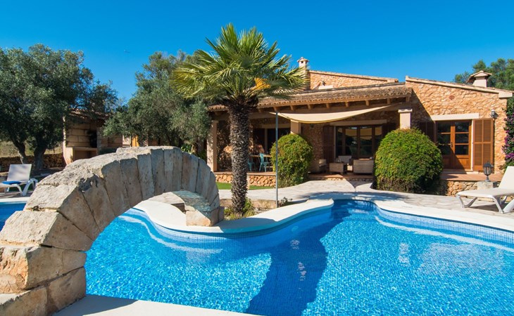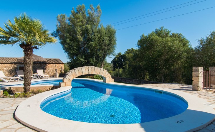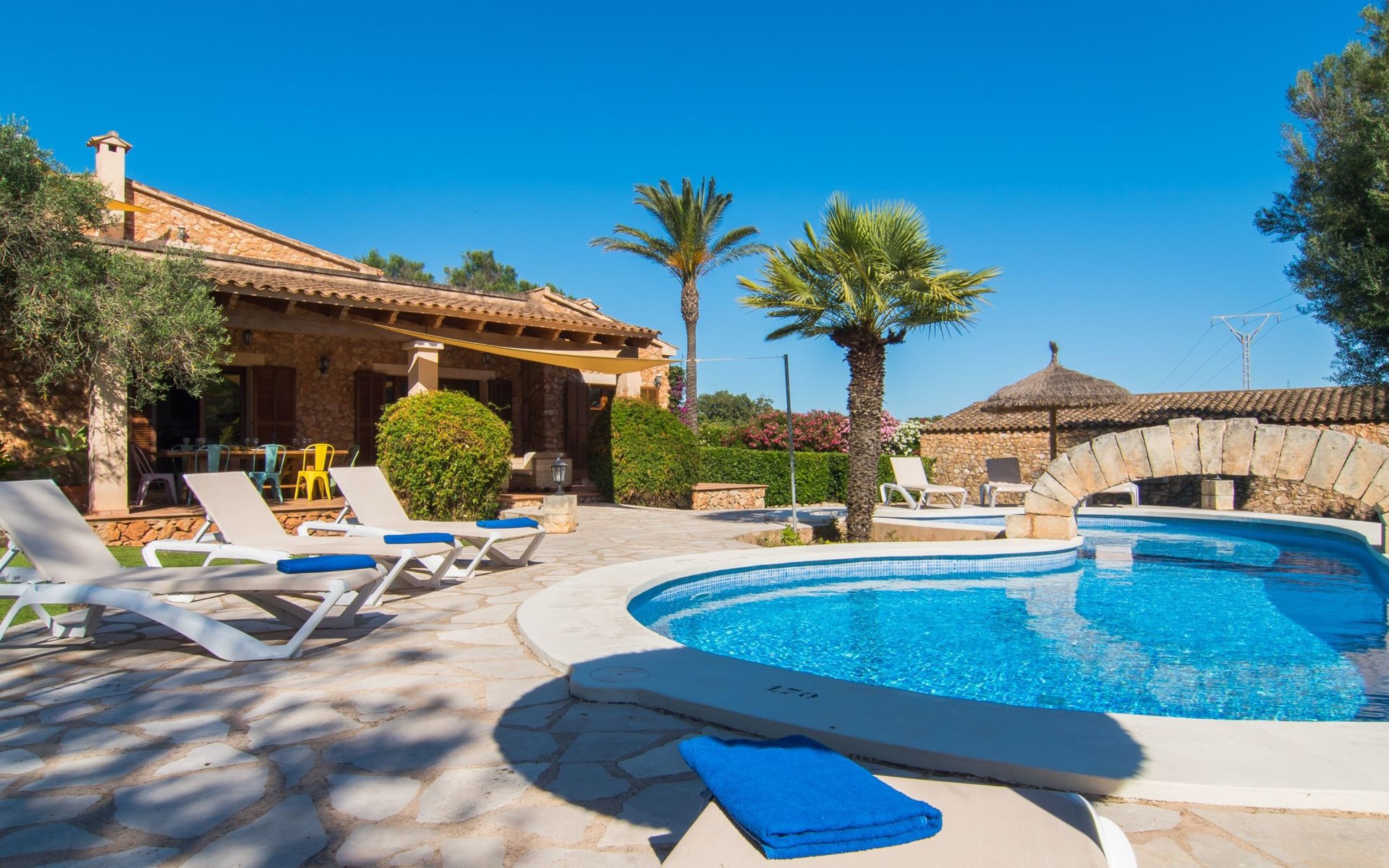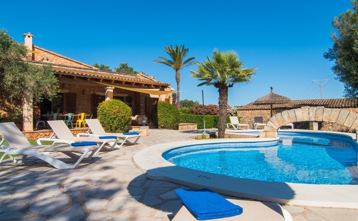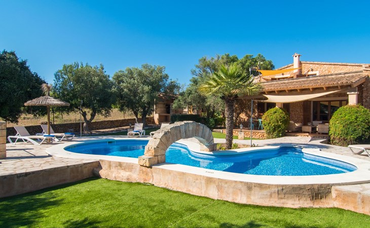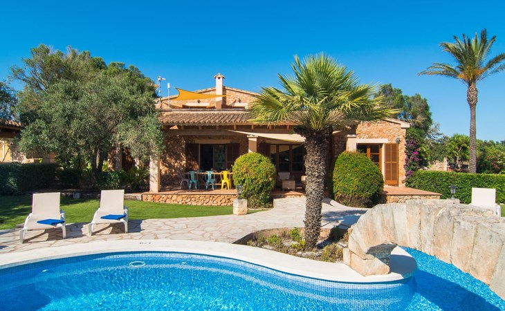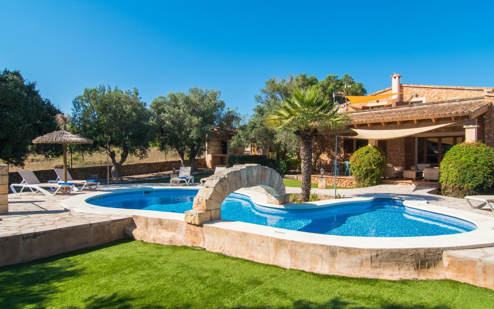 Luxury villa, located southeast of the island of Mallorca (Porto Cristo), in a quiet, leafy, a few kilometers of wonderful beaches, shops and golf S'Era Pula. The house is on two floors and can accommodate 8 people.On the first floor are 3 bedrooms, two of them are equipped with two single beds (90 cm wide each), ie in total there are 4 beds of 90 cm over 2 bedrooms, and the other bedroom has a double bed of 1.80 cm, a bathroom (with bath, video, toilet ...) and a terrace.On the ground floor there: the hall, the kitchen, which is fully equipped (oven, refrigerator, dishwasher, kettle, toaster, microwave ...), a bathroom (with toilet and shower), laundry, home to the washing machine , iron ..., a living room with TV, satellite, dvd, books, sofas, fireplace ..., a room with a double bed of 1.80 x 2.00, is a suite dressing room and bathroom (with toilet, tub, shower. ..)The house has free WIFI for guests, central heating (10h/dia) the winter months.All rooms are exterior, outside there is also a lovely barbecue, a cozy covered terrace (with sofas, dining table ...) private pool, beautiful garden ... ESFCTU000007023000594297000000000000000000000VT/1