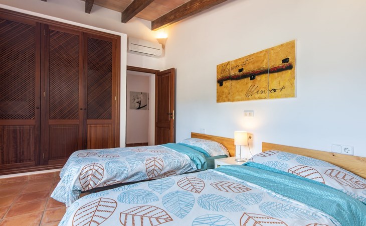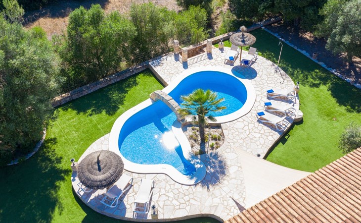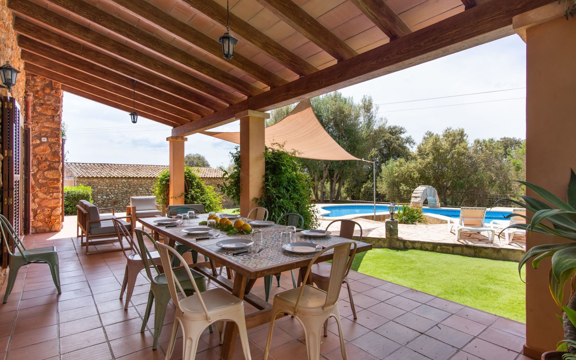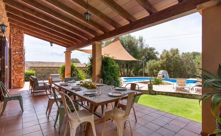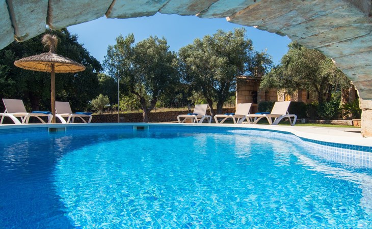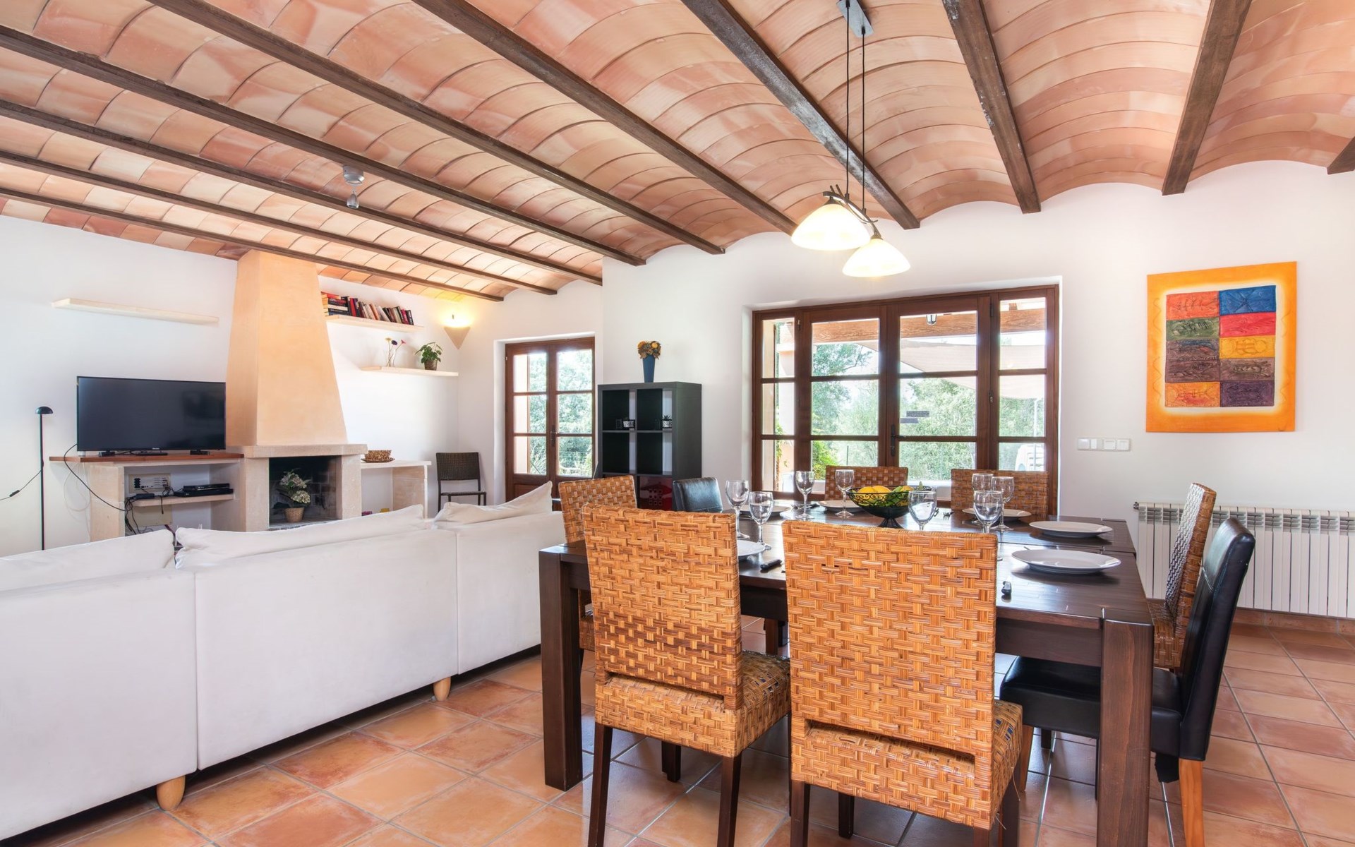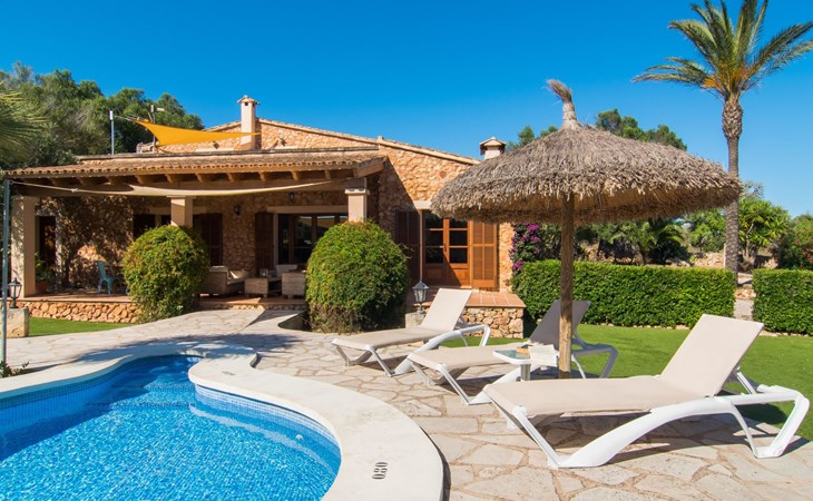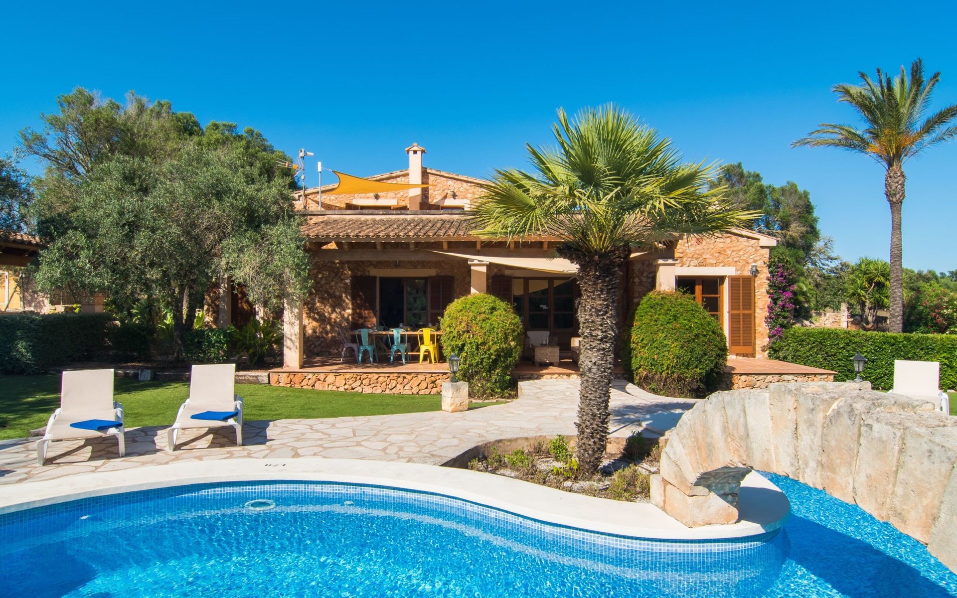 Luxury villa, located southeast of the island of Mallorca (Porto Cristo), in a quiet, leafy, a few kilometers of wonderful beaches, shops and golf S'Era Pula. The house is on two floors and can accommodate 8 people.On the first floor are 3 bedrooms, two of them are equipped with two single beds (90 cm wide each), ie in total there are 4 beds of 90 cm over 2 bedrooms, and the other bedroom has a double bed of 1.80 cm, a bathroom (with bath, video, toilet ...) and a terrace.On the ground floor there: the hall, the kitchen, which is fully equipped (oven, refrigerator, dishwasher, kettle, toaster, microwave ...), a bathroom (with toilet and shower), laundry, home to the washing machine , iron ..., a living room with TV, satellite, dvd, books, sofas, fireplace ..., a room with a double bed of 1.80 x 2.00, is a suite dressing room and bathroom (with toilet, tub, shower. ..)The house has free WIFI for guests, central heating (10h/dia) the winter months.All rooms are exterior, outside there is also a lovely barbecue, a cozy covered terrace (with sofas, dining table ...) private pool, beautiful garden ... ESFCTU000007023000594297000000000000000000000VT/1