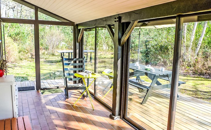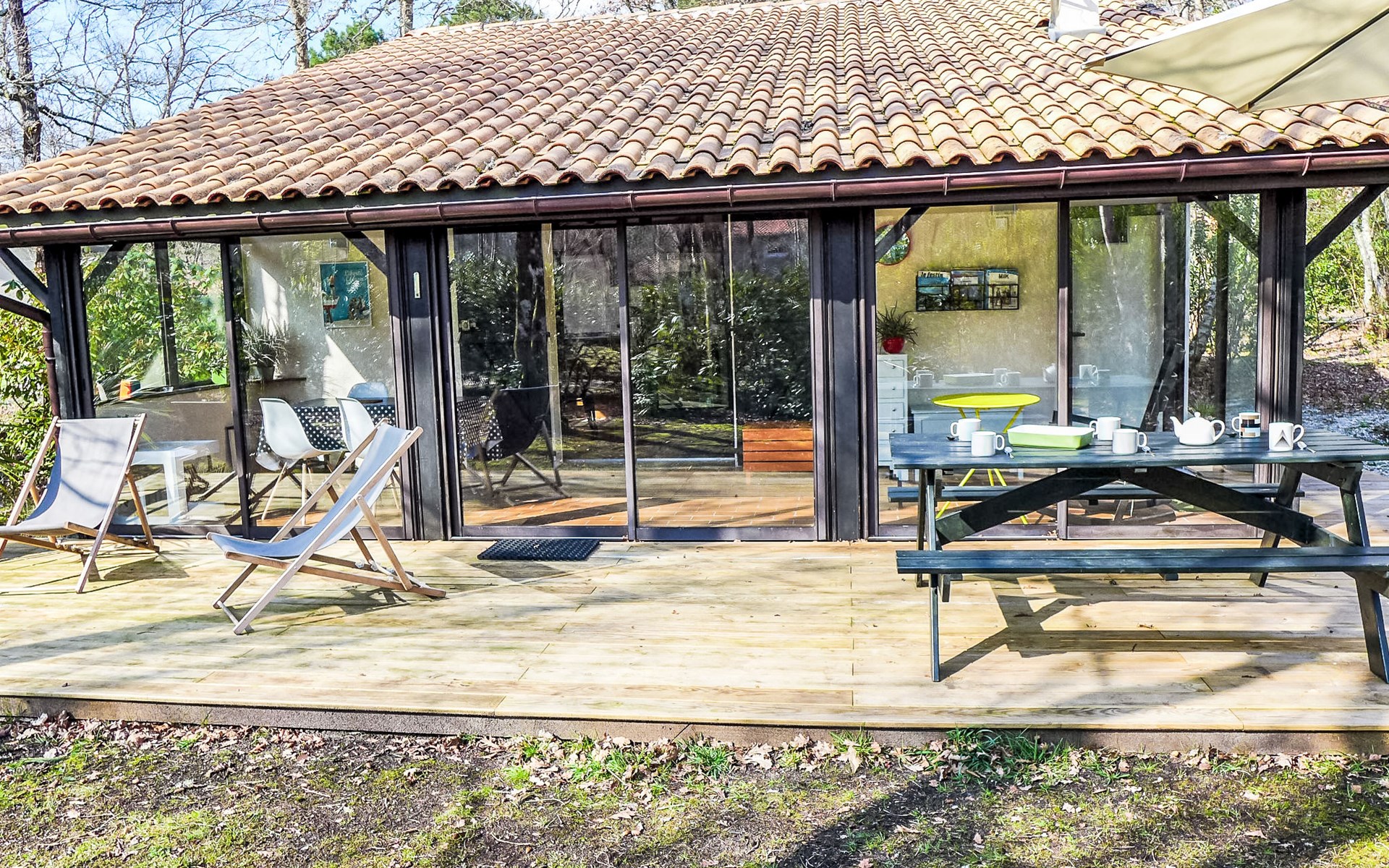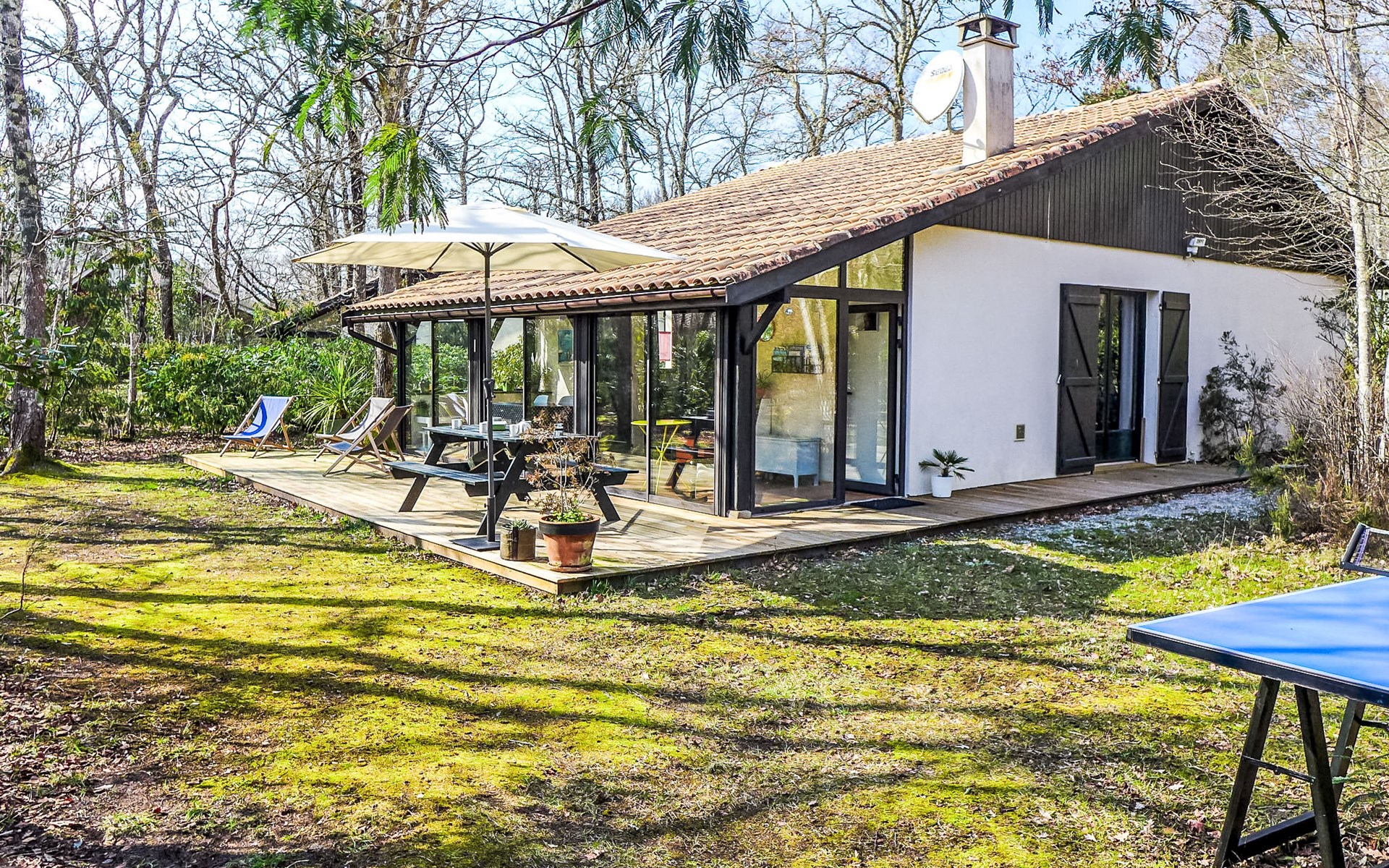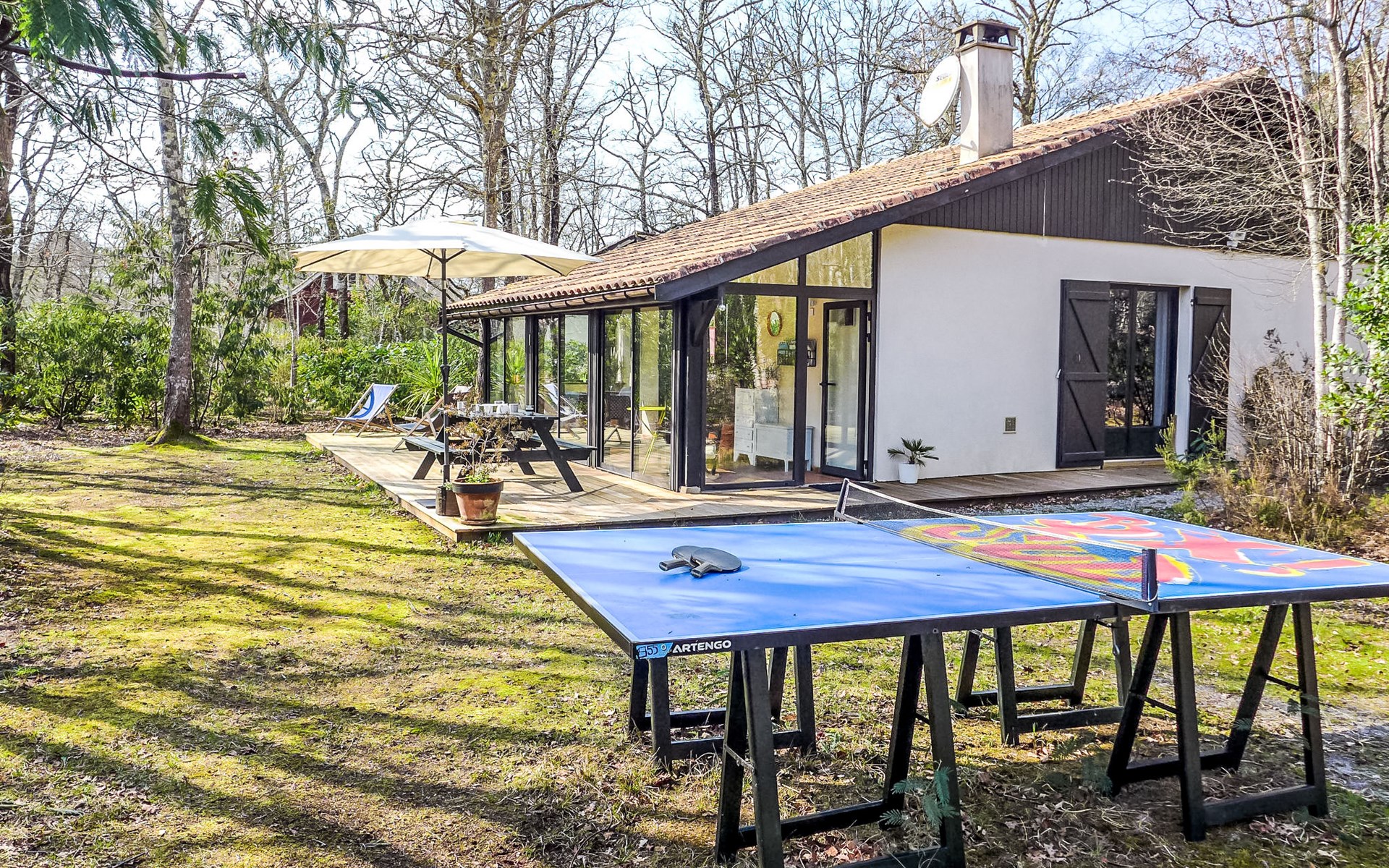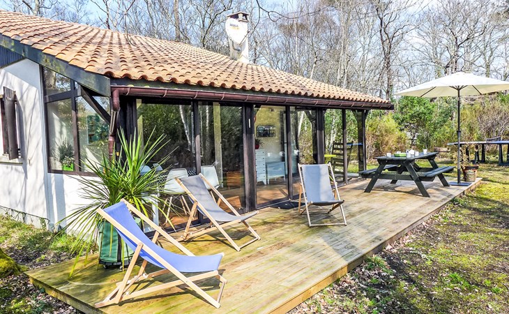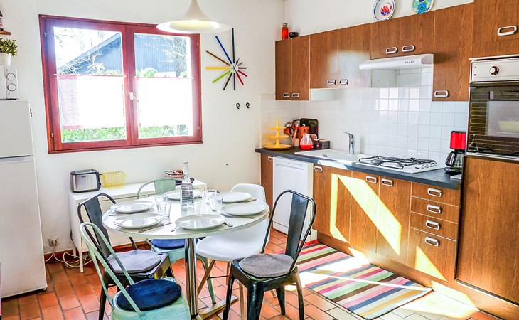 Lacanau-Médoc 11 km van Lacanau-Océan: Eengezinswoning "Marina de Talaris". In het gehucht Marina de Talaris, 3 km van het centrum van Lacanau-Médoc, 900 m van het meer. Voor medegebruik: openluchtzwembad (seizoensgebonden beschikbaarheid: 15.Jun. - 15.Sep.). Tennisbaan (01.Jul. - 31.Aug.). Voor alleengebruik: wild terrein 1.000 m2. Tafeltennis, parkeerplaats op het terrein. Winkel 3 km, supermarkt 3 km, restaurant 3 km, bushalte "Marina Talaris" 1.3 km, zandstrand "Lacanau Océan" 11 km, meer (zwemmen) "Lac de Lacanau" 2 km. Golfterrein (18 holes) 8 km, surfschool 9 km, tennis 9 km, manege 650 m. Attracties in de buurt: Dune du Pilat 90 m, Bordeaux 60 m, Saint Emilion 98 m, Cap Ferret 48 m. Bekende meren kunnen gemakkelijk worden bereikt: Moutchic 4 km, Maubuisson 20 km. Wandelgebied Vélodyssée 10 km. De sleuteloverdracht vindt plaats bij het agentschap Interhome in Lacanau, 9 km.