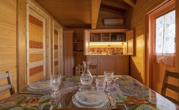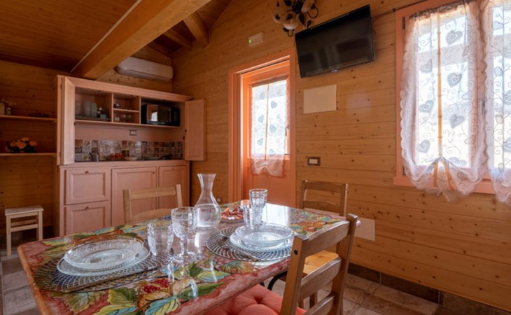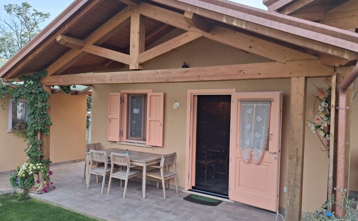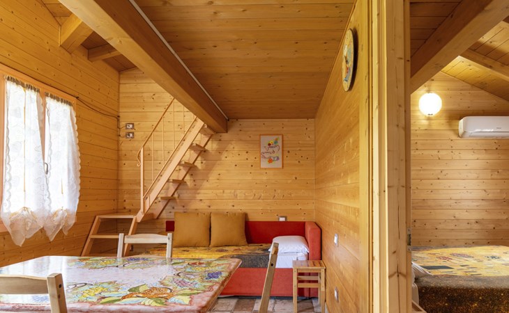In the green heart of Italy, in Umbria, in the immediate vicinity of Spoleto, a splendid medieval city, full of history, art and culture, stand the four wooden cottages of 'Il Campo di Nonno Giò', the ideal setting for a stay in close contact with nature, in a reserved and quiet but strategic location, far from the routine and hurry imposed by everyday life.We promote a green philosophy, respecting the nature that surrounds us and the Planet that hosts us, trying to reduce consumption and supporting alternative mobility with the presence of a charging station for electric cars.The cottage is single-storey and ground floor. It can accommodate up to 5 people and has every comfort, with a double bedroom, a blue bathroom, a kitchen, a small loft and a cosy outdoor porch where it is possible, depending on the season, to have meals outdoors.The interior of each cottage is equipped with all the necessary comforts to ensure a carefree stay. Air conditioners ensure an ideal climate at all times and together with household appliances such as a dishwasher, induction oven, microwave, coffee maker and much more, WiFi included in the price of your stay and Android televisions allow you to enjoy your holiday with maximum autonomy.The exterior boasts a pleasant garden for communal use, where young and old can spend pleasant moments in the open air. The presence of a play house and a Ping Pong table promises fun for all ages. And for gourmets, a BBQ is available.Included in the price of your stay are- bed linen and towels- WiFi- autonomous use of air conditioning/heated air via air conditioners- use of super-equipped kitchen- car parking behind the cottage- outdoor and board games- when the season allows take vegetables from our garden- house cleaning on check outNot included and classified as extras in the price of your stay are- any change of bed linen or towels during the stay- any cleaning during the stay- use of laundry room- use of BBQ- tourist taxThe location is strategic not only because of its proximity to a grocery shop, located only 200 metres away, but also because it is centrally located for access to the main attractions of Spoleto and Umbria."Il Campo di Nonno Giò" in Spoleto is therefore the perfect destination for those seeking an unforgettable stay, where comfort, practicality and a love of nature come together to offer a truly unique experience. Whether it is a family holiday, a romantic getaway or an adventure with friends, here you will find everything you need to create precious memories in the heart of Italy. IT054051B404032402