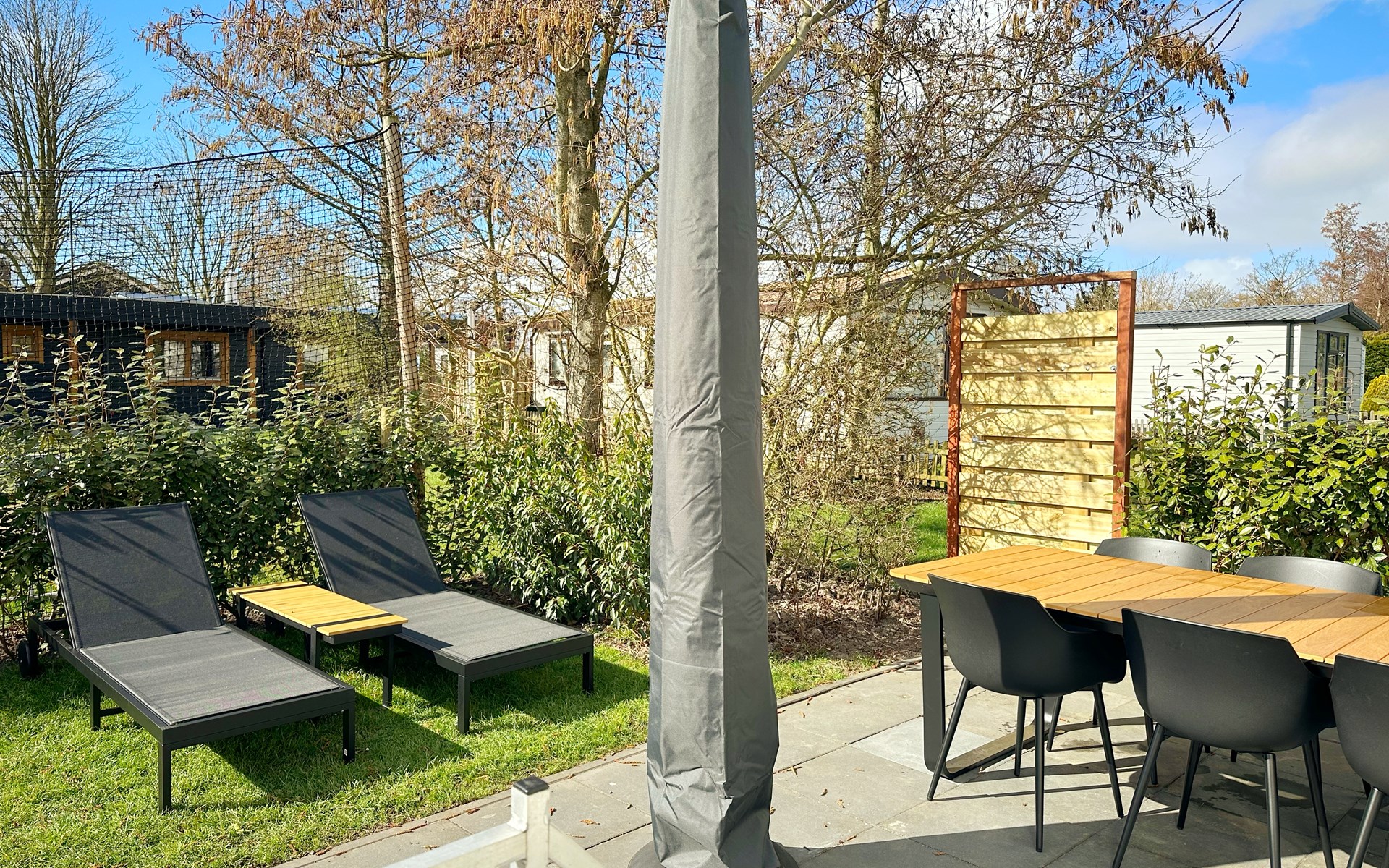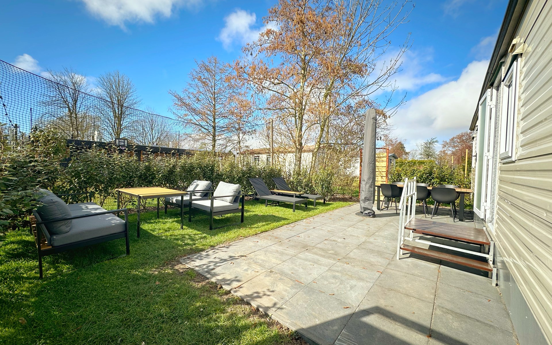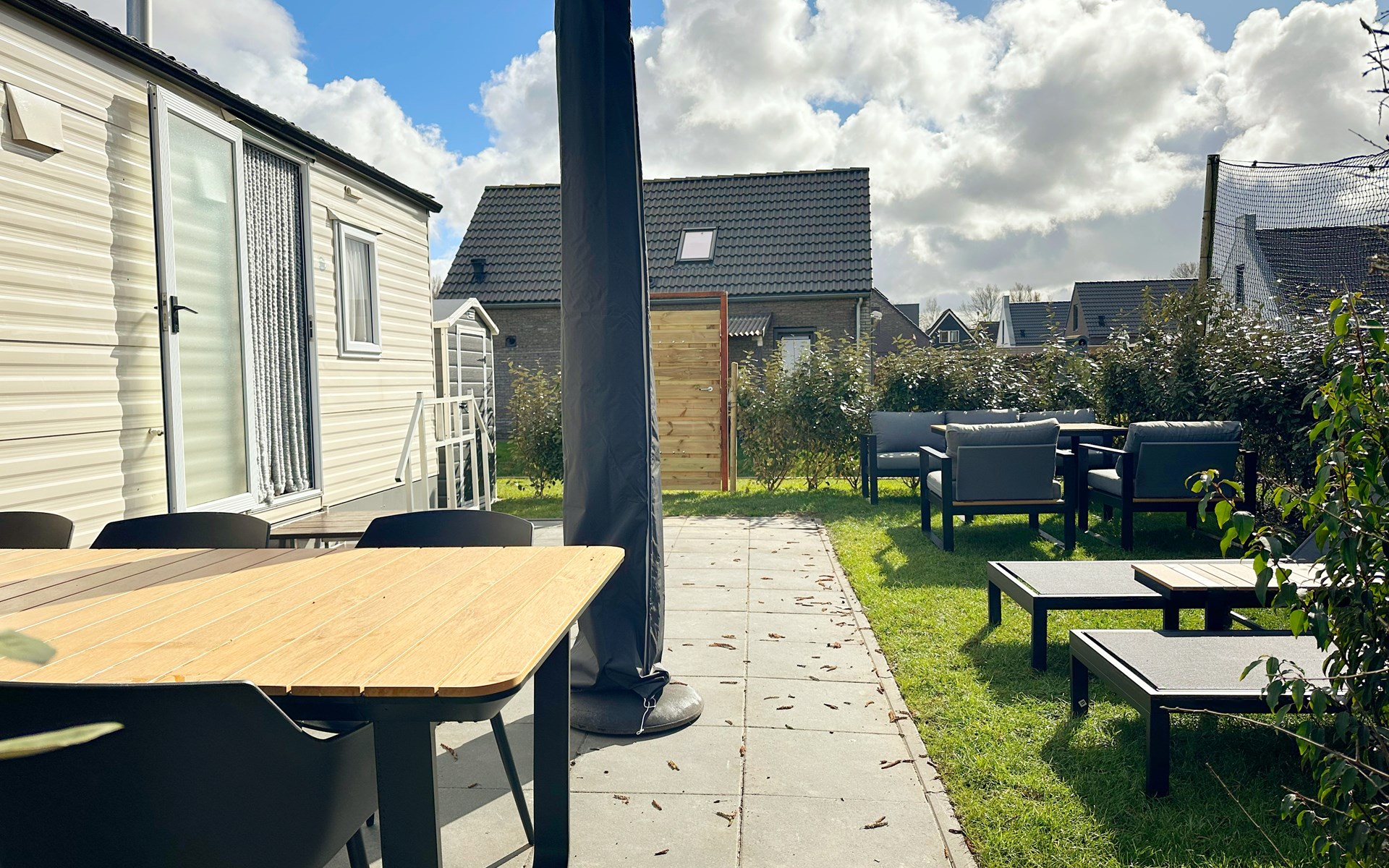 Het was erg netjes en gezellig. Nette keukenspullen, had het idee dat alles vrij nieuw was. Mooie buitenmeubelen.