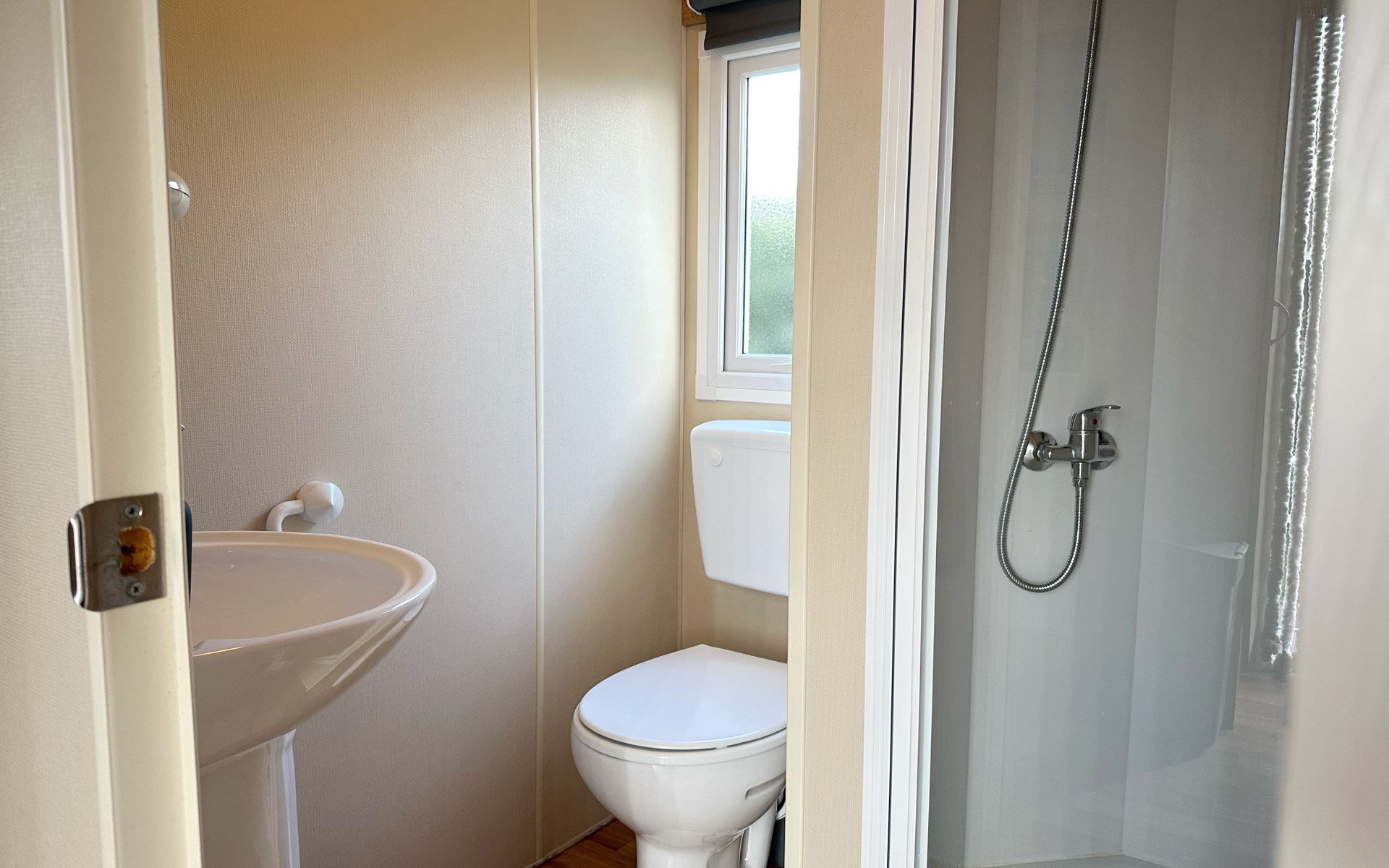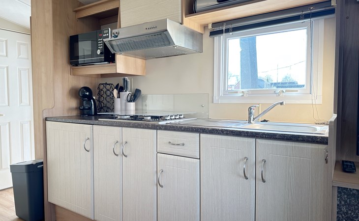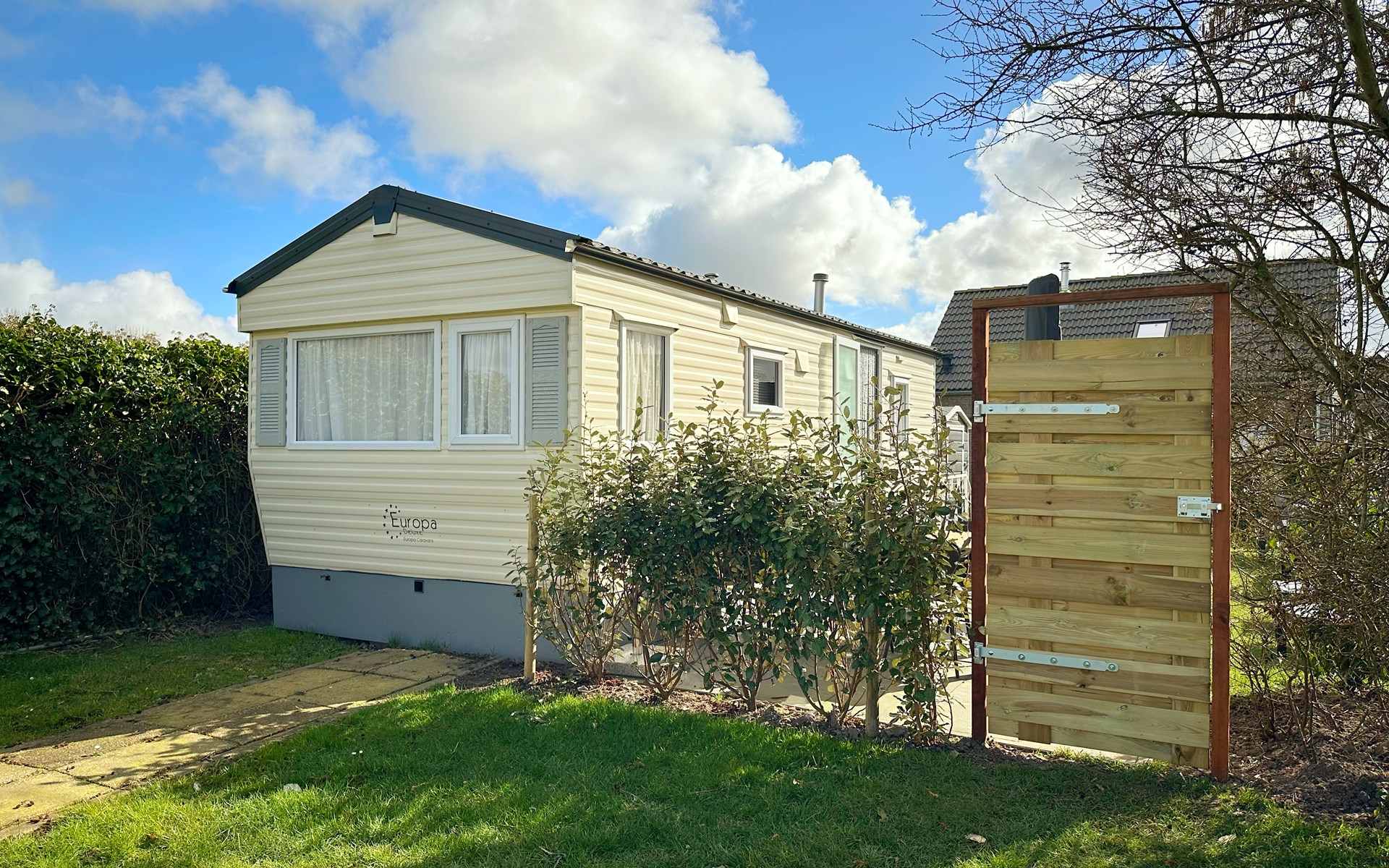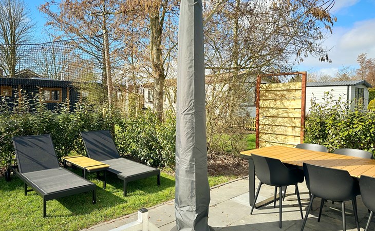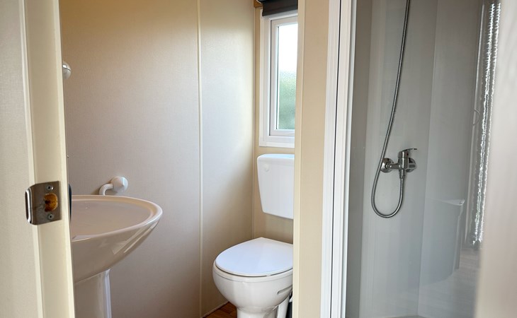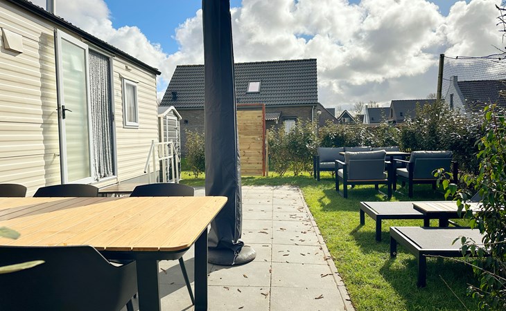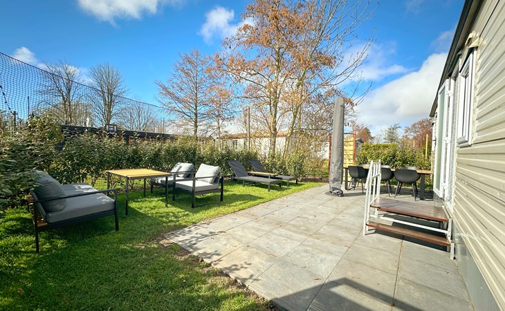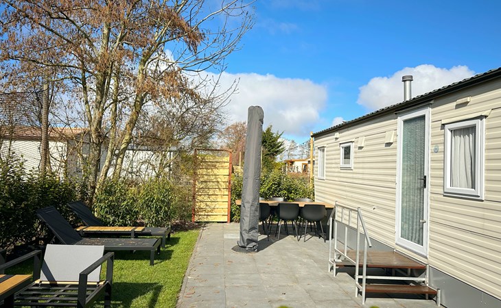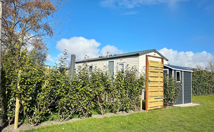 De open keuken is volledig uitgerust met een koelkast, een vierpits gasstel, ideaal voor het bereiden van maaltijden tijdens uw vakantie of weekendje weg. De eethoek grenst direct aan de keuken voor gezellig samen eten. De badkamer is voorzien van een douche voor extra gemak. De tuin grenst aan het sportveld.