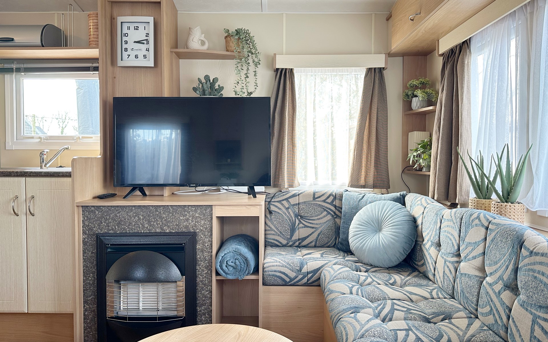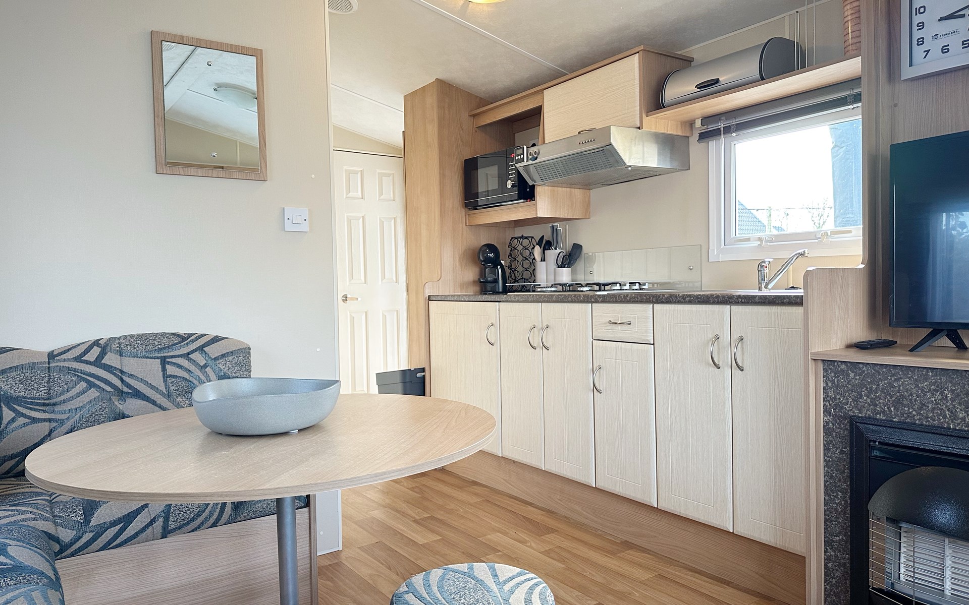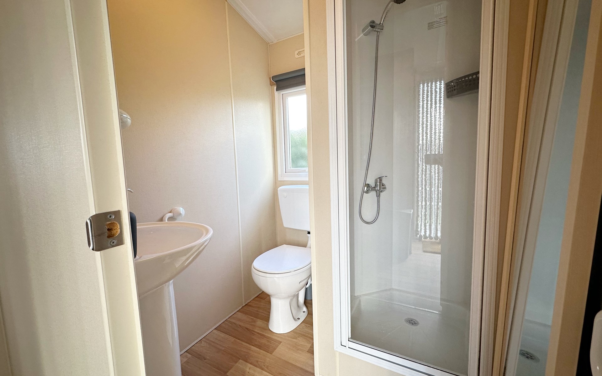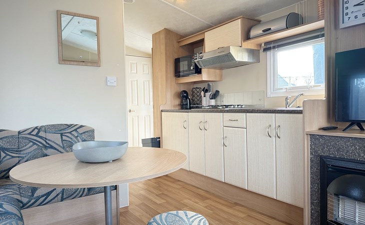 De open keuken is volledig uitgerust met een koelkast, een vierpits gasstel, ideaal voor het bereiden van maaltijden tijdens uw vakantie of weekendje weg. De eethoek grenst direct aan de keuken voor gezellig samen eten. De badkamer is voorzien van een douche voor extra gemak. De tuin grenst aan het sportveld.