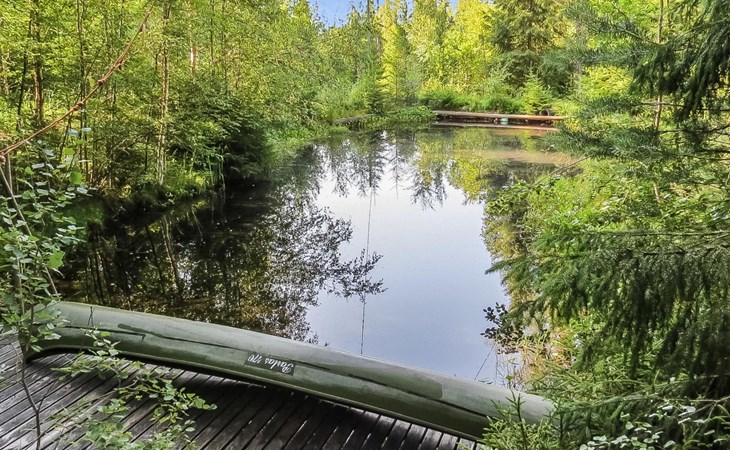 100 km north-east of Turku. Pihalampi Pond 20 m (length 30 m, breadth 20 m), water flows through the pond, deep water, soft bottom, pier. Own canoe. The pond is more than 2 m deep.