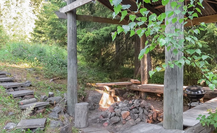 Sheltered campfire in the yard (location in the woods limits use in dry times).