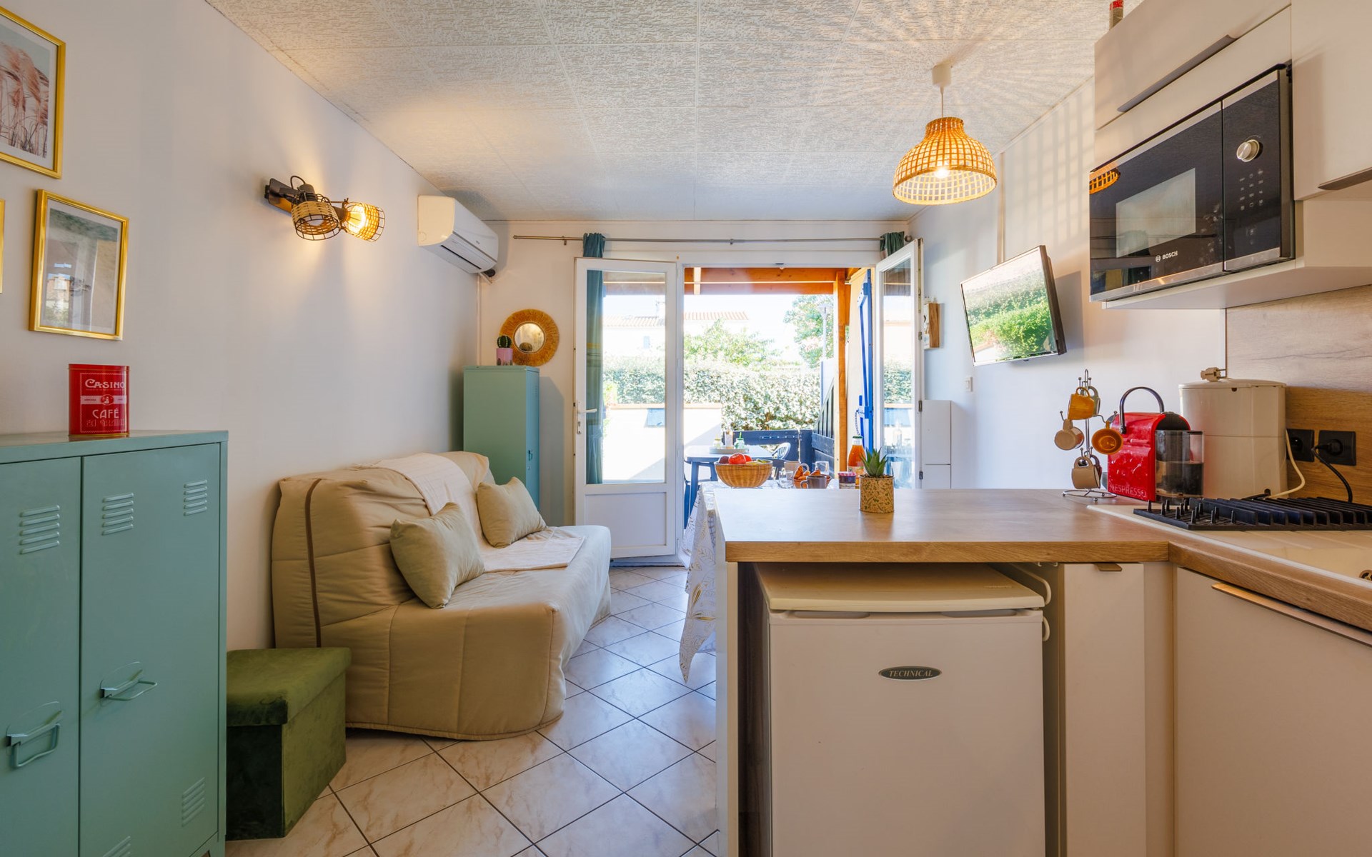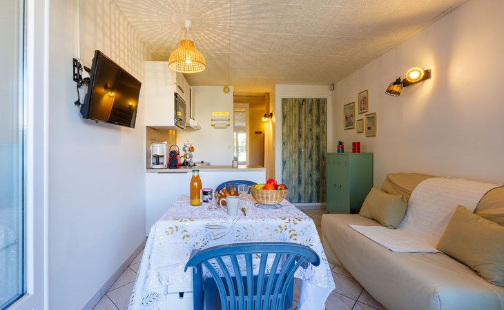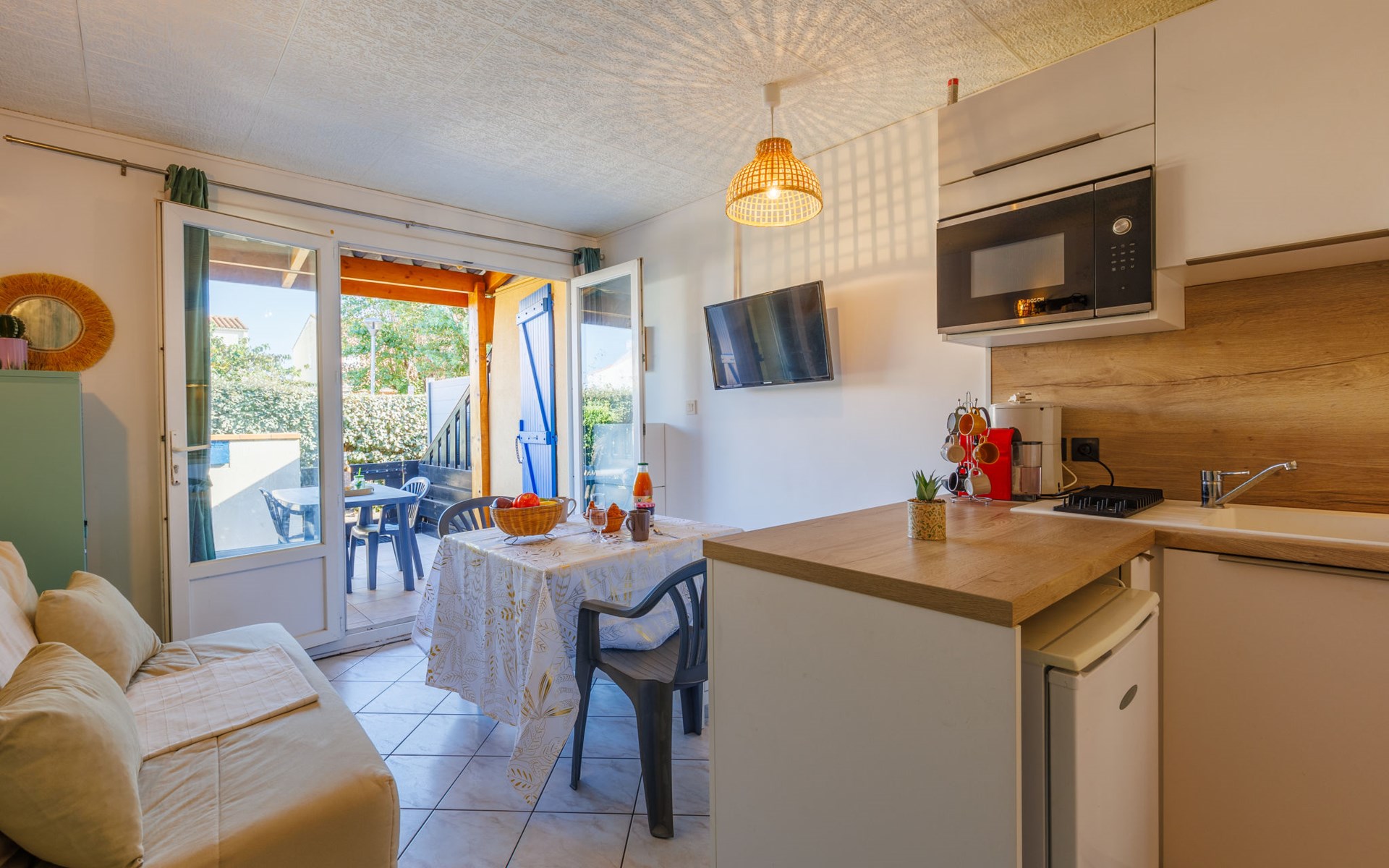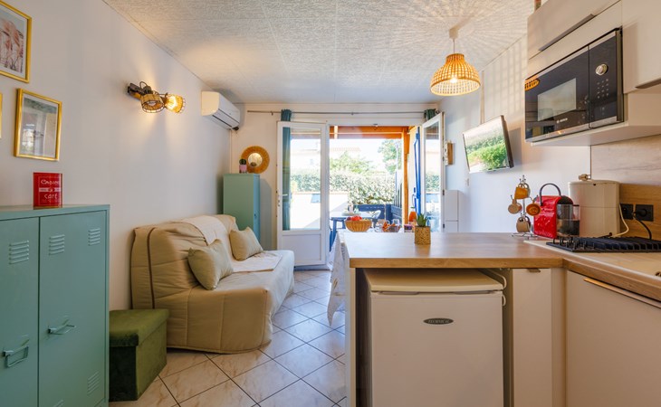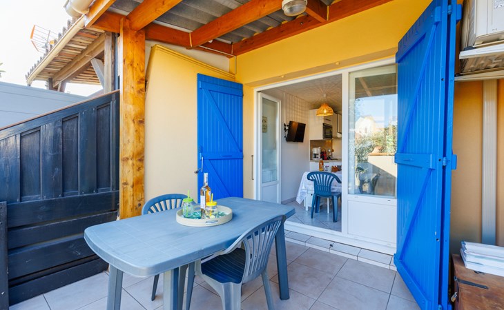 Residentie "Port La Roquille", van 2 verdiepingen. In de wijk La Roquille, 80 m van zee, 80 m van het strand, directe toegang tot het strand. Winkel, levensmiddelenwinkel, restaurant, café 200 m, bushalte "Roquille" 400 m, zandstrand "La Roquille" 180 m, park "Lano" 550 m, fKK-strand 3 km. Golfterrein (27 holes) 3 km, tennis 1 km, tennishal 1 km, midgetgolf 4 km, manege 4 km. Attracties in de buurt: Iles des Loisirs 4 km, Jet ski 300 m, Mango's Beach 200 m. Bekende meren kunnen gemakkelijk worden bereikt: Lac du Salagou 55 km.