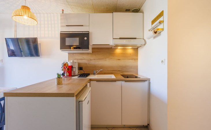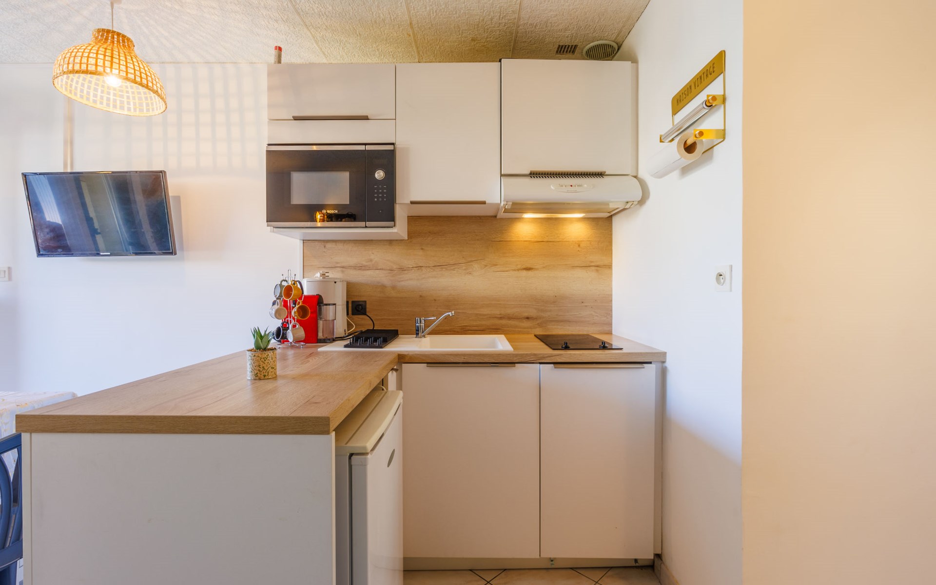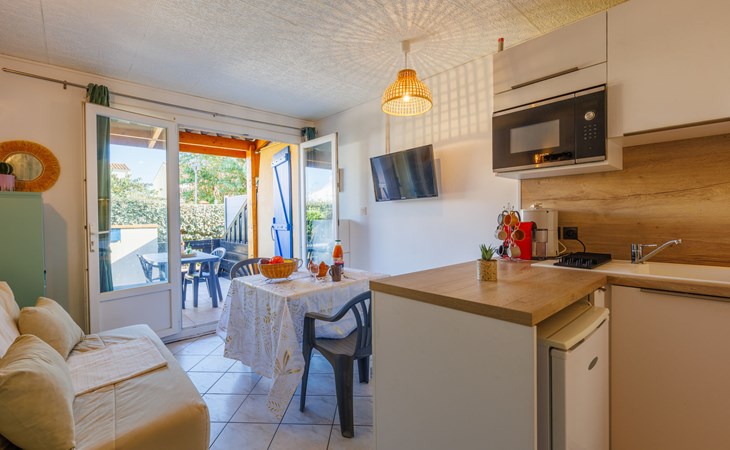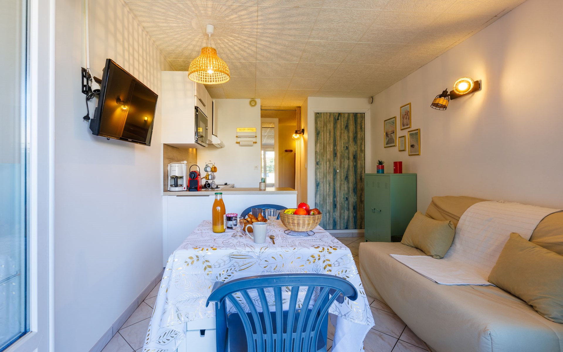 Residentie "Port La Roquille", van 2 verdiepingen. In de wijk La Roquille, 80 m van zee, 80 m van het strand, directe toegang tot het strand. Winkel, levensmiddelenwinkel, restaurant, café 200 m, bushalte "Roquille" 400 m, zandstrand "La Roquille" 180 m, park "Lano" 550 m, fKK-strand 3 km. Golfterrein (27 holes) 3 km, tennis 1 km, tennishal 1 km, midgetgolf 4 km, manege 4 km. Attracties in de buurt: Iles des Loisirs 4 km, Jet ski 300 m, Mango's Beach 200 m. Bekende meren kunnen gemakkelijk worden bereikt: Lac du Salagou 55 km.