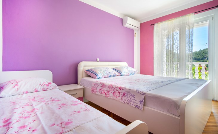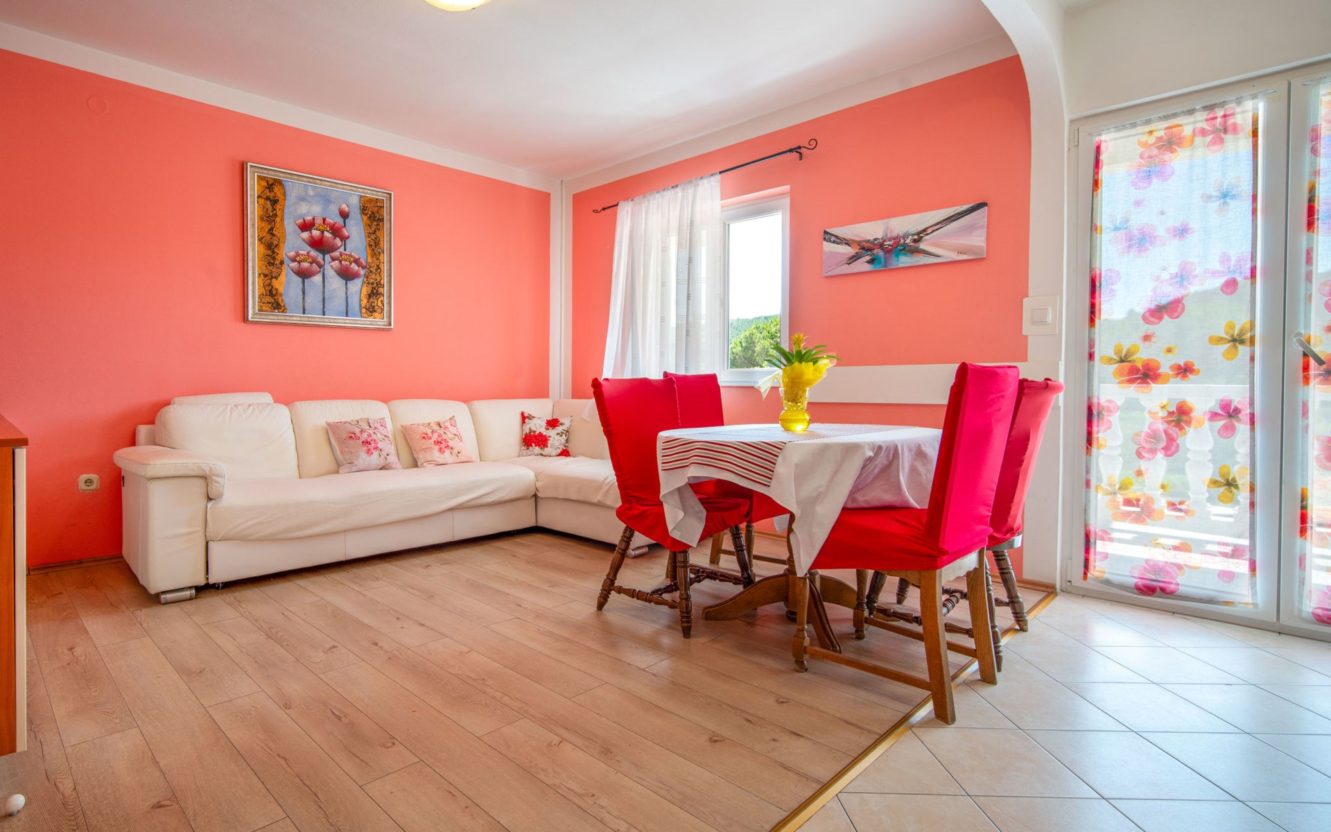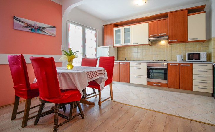 Appartementencomplex "Zora". 600 m van het centrum van Lopar, 13 km van het centrum van Rab, 700 m van zee, 700 m van het strand, aan een weg. Voor medegebruik: terrein 700 m2, bloemen en bomen. Terras (30 m2), tuinmeubelen, barbecue. In het huis: internetaansluiting. Parkeerplaats bij het huis op het terrein. Winkel 350 m, supermarkt 600 m, restaurant 750 m, bakkerij 210 m, café 500 m, bushalte 800 m, veerboot 1.9 km, zandstrand 700 m.