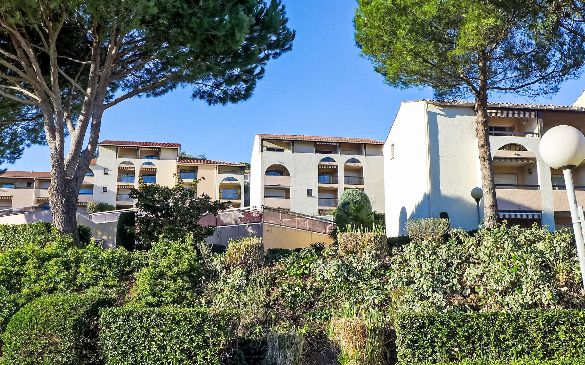 Shorts en bermuda's zijn verboden in de zwembaden. De appartementen op de begane grond zijn bereikbaar via een trap met 8 treden. Residentie "La Gaillarde". Aan de rand van de plaats, 2.5 km van het centrum van Saint Aygulf, 300 m van zee, 300 m van het strand. Voor medegebruik: 2 zwembaden (seizoensgebonden beschikbaarheid: 01.Mei. - 30.Sep. openingstijden zwembad: 09:30-21:00 en 10:30-21:00). Kinderzwembad, tennisbaan, jeu de boules, kinderspeelplaats, parkeerplaats. Winkel 2 km, levensmiddelenwinkel 300 m, supermarkt 2.5 km, winkelcentrum 7 km, bakkerij 300 m, centrum te voet bereikbaar in 15 minuten, bushalte "La Gaillarde" 450 m, zandstrand "La Gaillarde" 300 m, park "Aqualand" 7 km, duikschool 9 km, thermaalbad "Thalasso des Issambres" 6 km, meer St Cassien 45 km. Jachthaven 2 km, jachthaven 2 km, zeilschool 8 km, tennis 4 km, manege 6 km, sportcentrum 1.5 km, wandelroutes 2 km vanaf het huis. Attracties in de buurt: Lunapark, Aqualand 8 km, Fréjus 9 km, Saint Raphaël 10 km, St Tropez 29 km, Cannes 45 km. Bekende skigebieden kunnen gemakkelijk worden bereikt: Auron 150 km, Isola 2000 150 km. Bekende meren kunnen gemakkelijk worden bereikt: Lac de St Cassien 45 km, Lac du Du Verdon 90 km. Wandelgebied Petites Maures 2 km, Estérel 20 km, Sentier du Litoral 1 km. Geen lift. De sleuteloverdracht vindt plaats bij het agentschap Interhome in Saint Aygulf. Nachtclub/disco in de buurt.