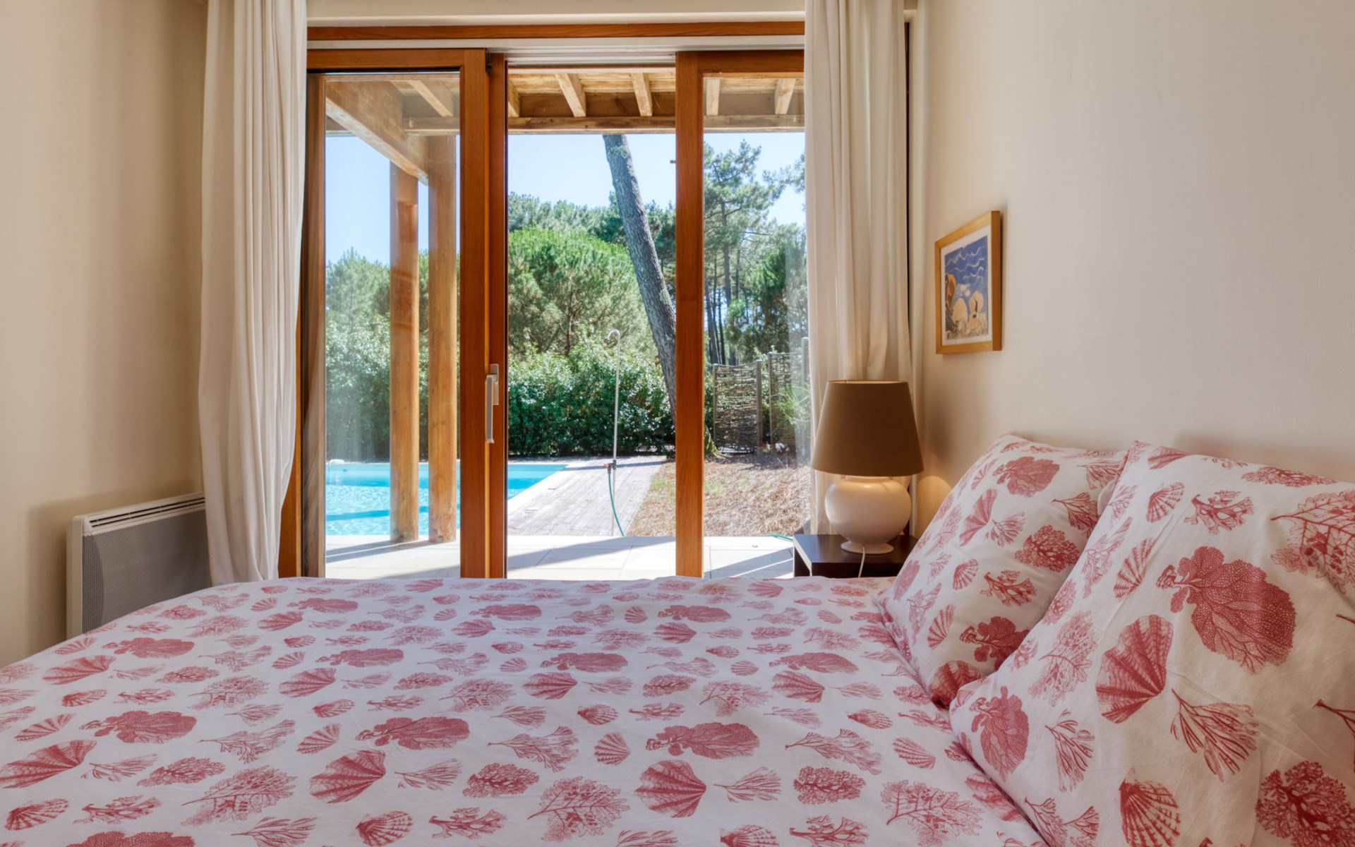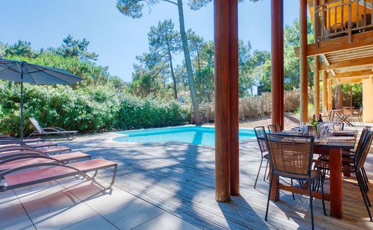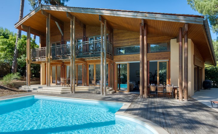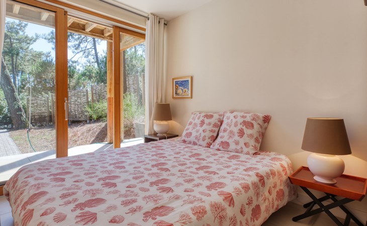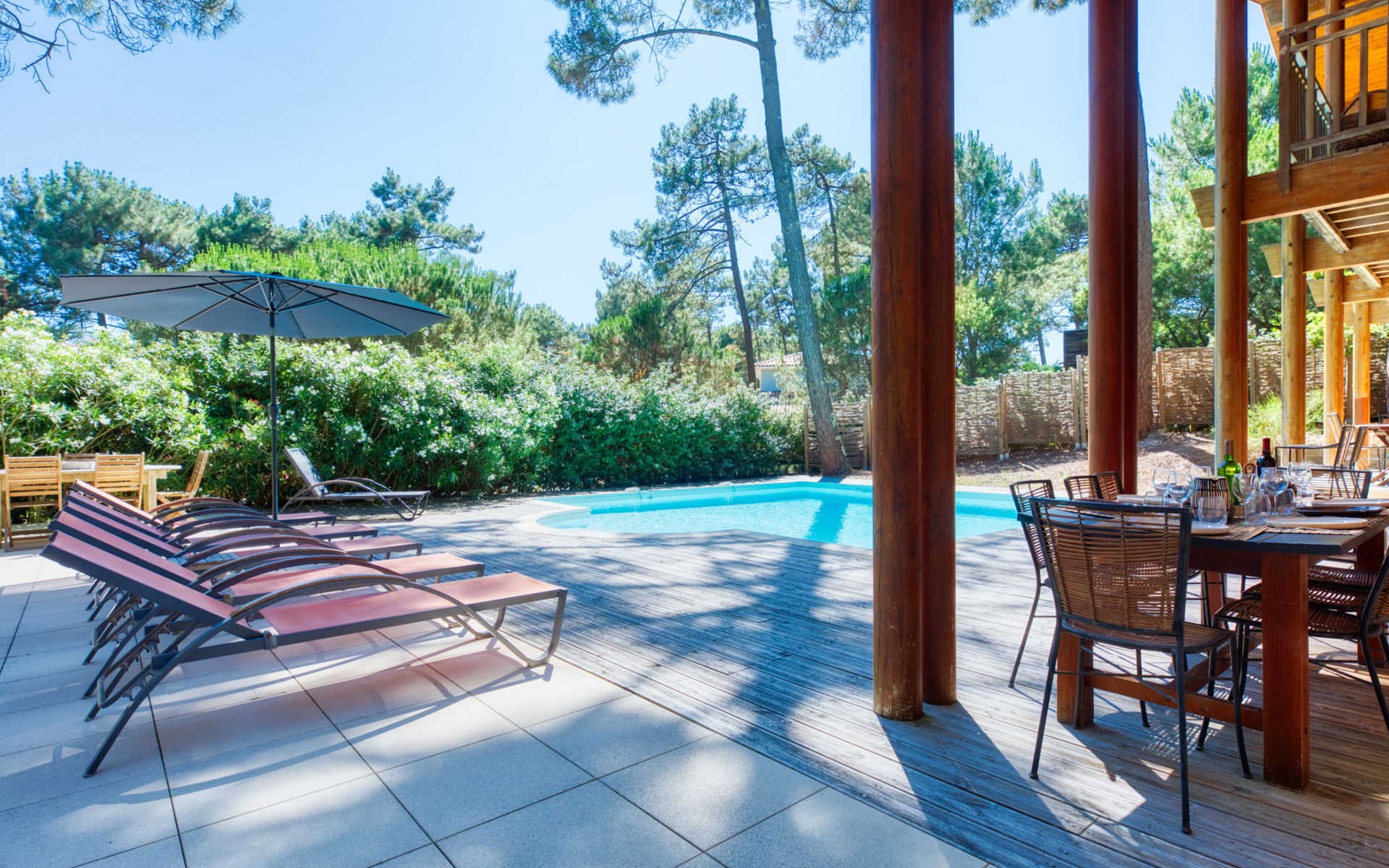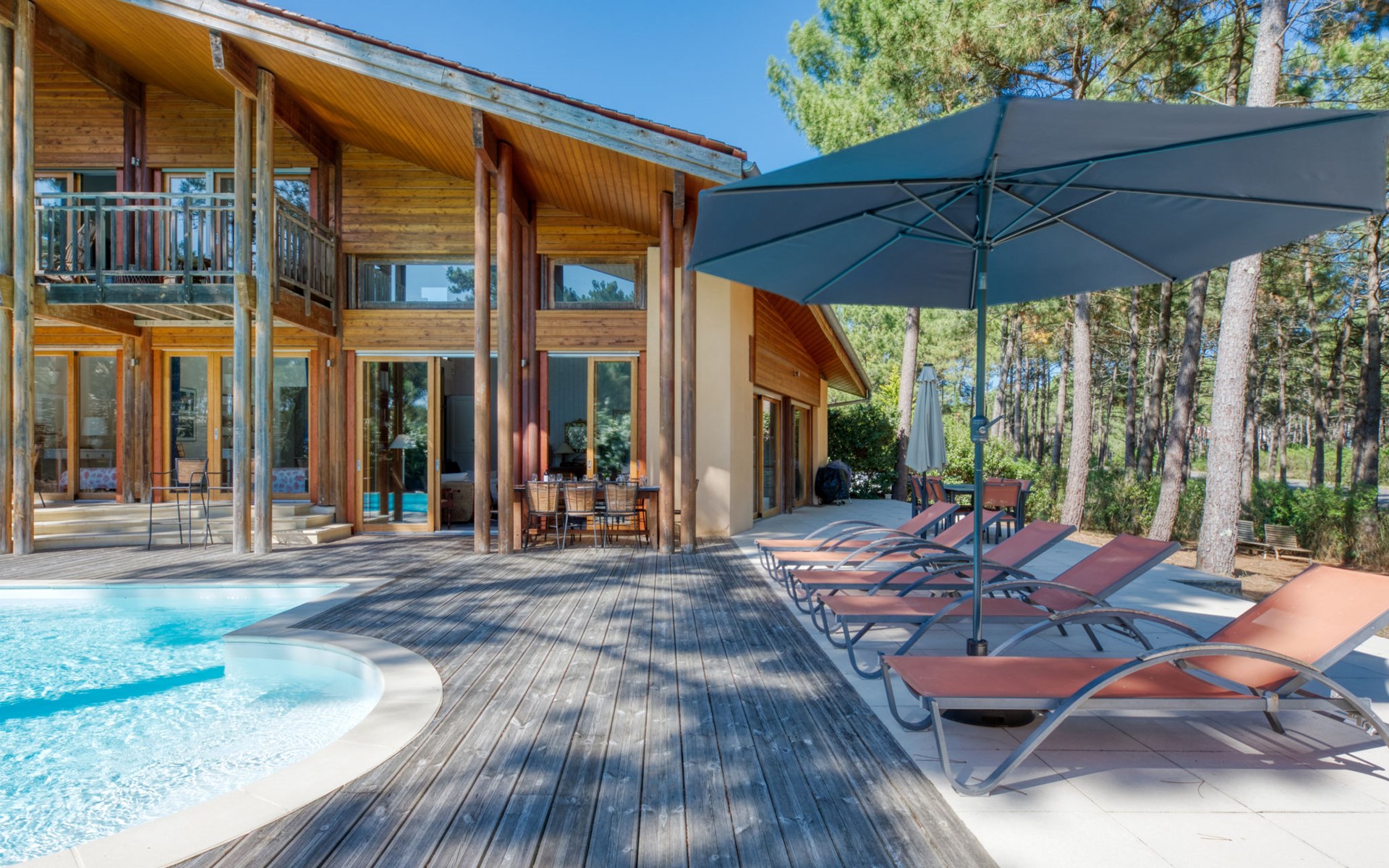 Groot, mooi villa "La Lisière des Pins", bouwjaar 2013. 2.5 km van het centrum van Lacanau-Océan, 12 km van het centrum van Lacanau-Ville, 55 km van het centrum van Bordeaux, in een woonwijk, 2 km van zee, 2 km van het strand, aan een doodlopende weg. Voor alleengebruik: wild terrein 850 m2 (omheind) met bomen, openluchtzwembad (7 x 7 m, 160 - 200 cm diepte, seizoensgebonden beschikbaarheid: 26.Apr. - 27.Sep.) met alarminstallatie. Buitendouche, terras, tuinmeubelen. In het huis: tafeltennis, tafelvoetbal. Parkeerplaats (voor 2 auto's) bij het huis op het terrein. Supermarkt 2 km, zandstrand "Plage Lacanau Sud" 2 km, meer (zwemmen) "Lacanau Le Moutchic" 5.5 km. Golfterrein (18 holes) 2 km, surfschool 2 km, manege 1 km. De eigenaar accepteert geen groepen. De eigenaar accepteert geen jeugdgroepen. De omgeving is gevoelig voor geluidsoverlast. Gelieve geen lawaai te maken en de rust te bewaren.