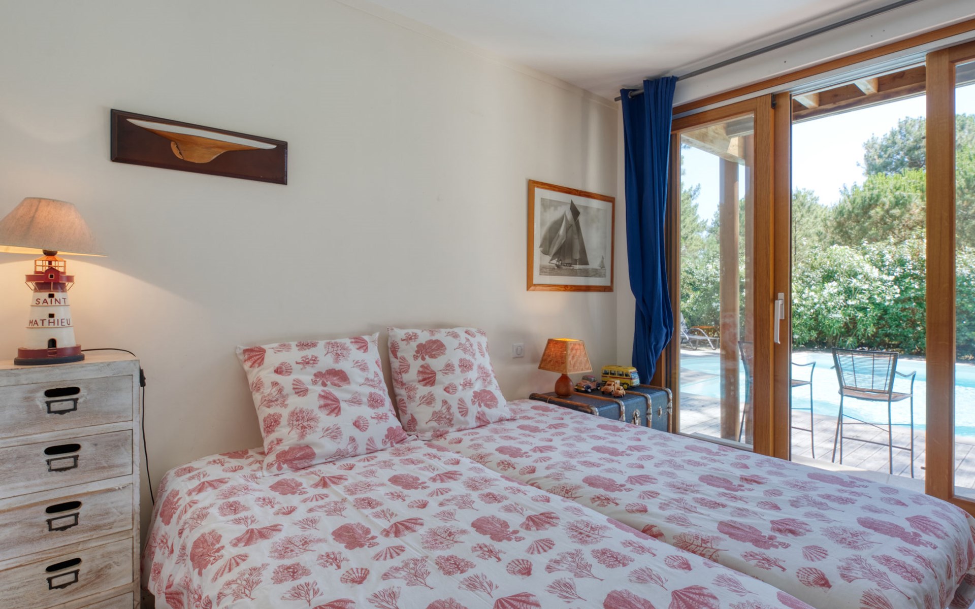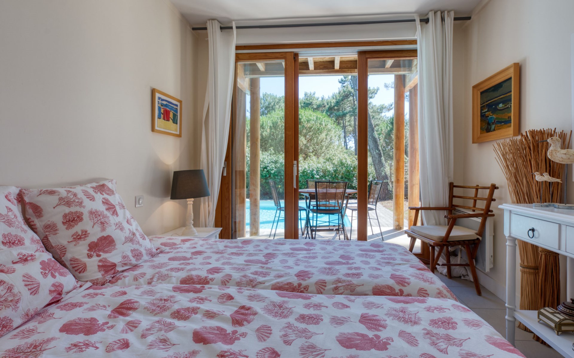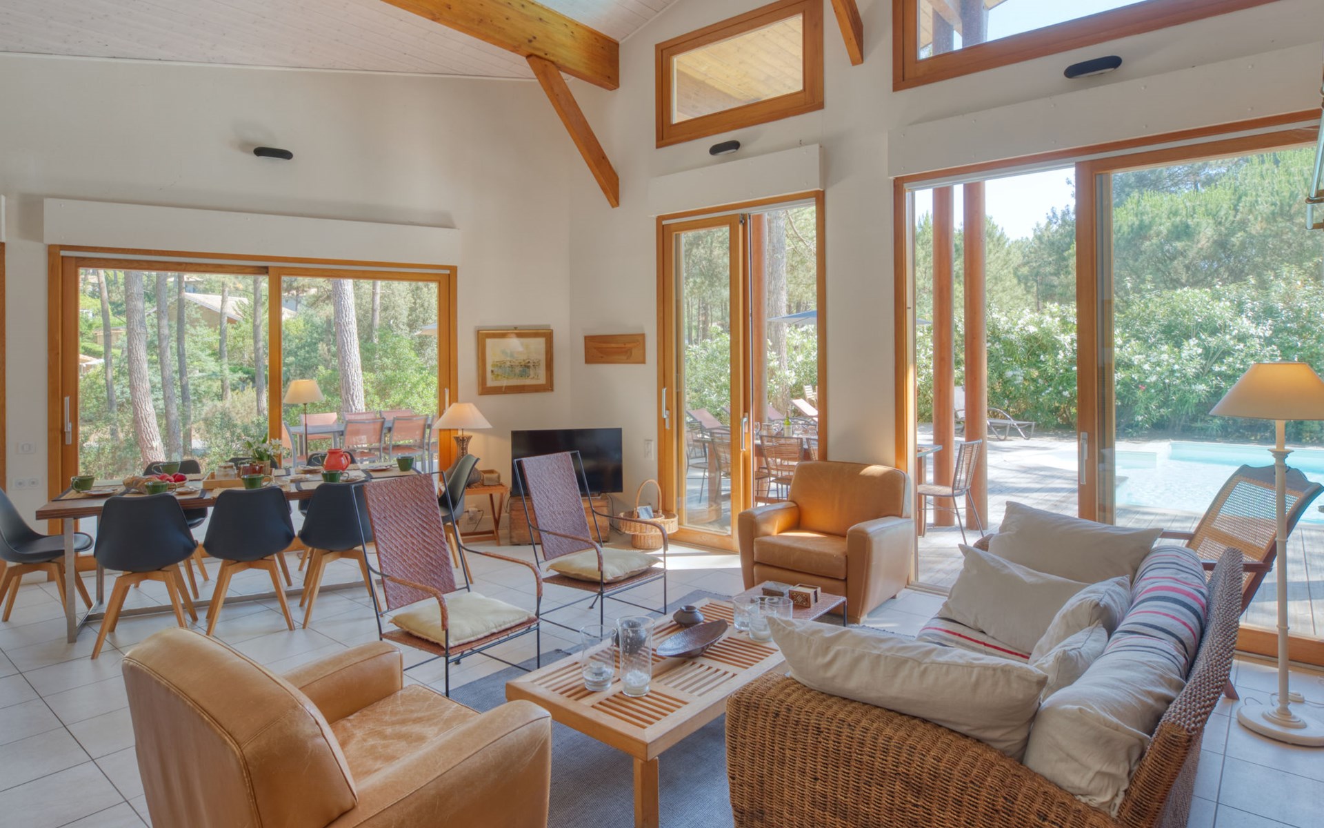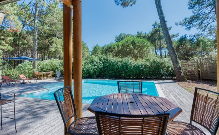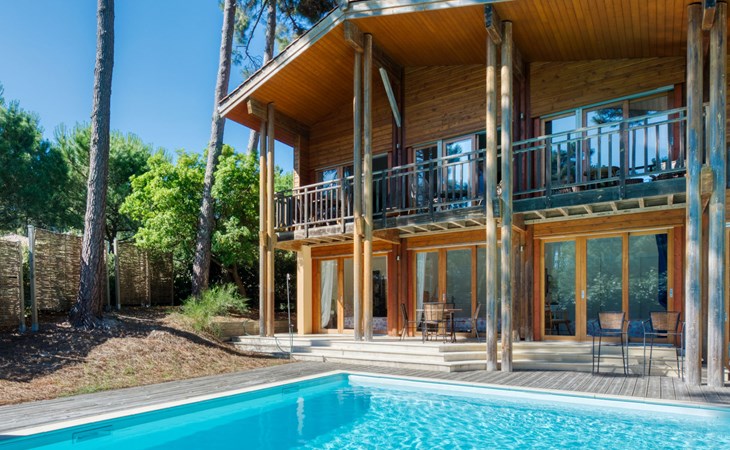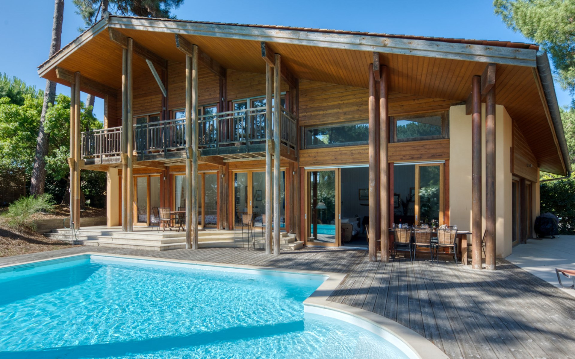 Groot, mooi villa "La Lisière des Pins", bouwjaar 2013. 2.5 km van het centrum van Lacanau-Océan, 12 km van het centrum van Lacanau-Ville, 55 km van het centrum van Bordeaux, in een woonwijk, 2 km van zee, 2 km van het strand, aan een doodlopende weg. Voor alleengebruik: wild terrein 850 m2 (omheind) met bomen, openluchtzwembad (7 x 7 m, 160 - 200 cm diepte, seizoensgebonden beschikbaarheid: 26.Apr. - 27.Sep.) met alarminstallatie. Buitendouche, terras, tuinmeubelen. In het huis: tafeltennis, tafelvoetbal. Parkeerplaats (voor 2 auto's) bij het huis op het terrein. Supermarkt 2 km, zandstrand "Plage Lacanau Sud" 2 km, meer (zwemmen) "Lacanau Le Moutchic" 5.5 km. Golfterrein (18 holes) 2 km, surfschool 2 km, manege 1 km. De eigenaar accepteert geen groepen. De eigenaar accepteert geen jeugdgroepen. De omgeving is gevoelig voor geluidsoverlast. Gelieve geen lawaai te maken en de rust te bewaren.
