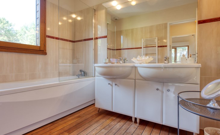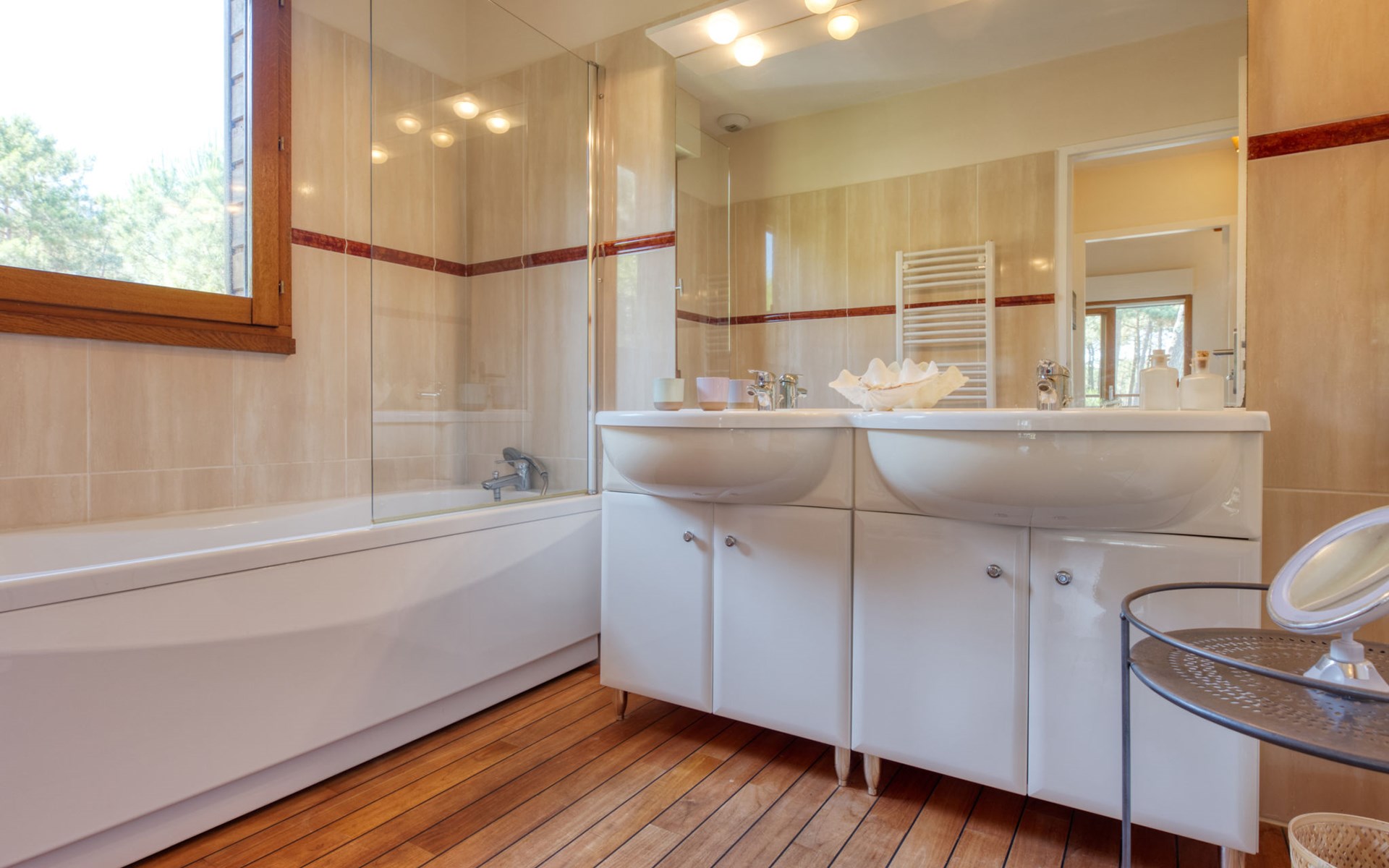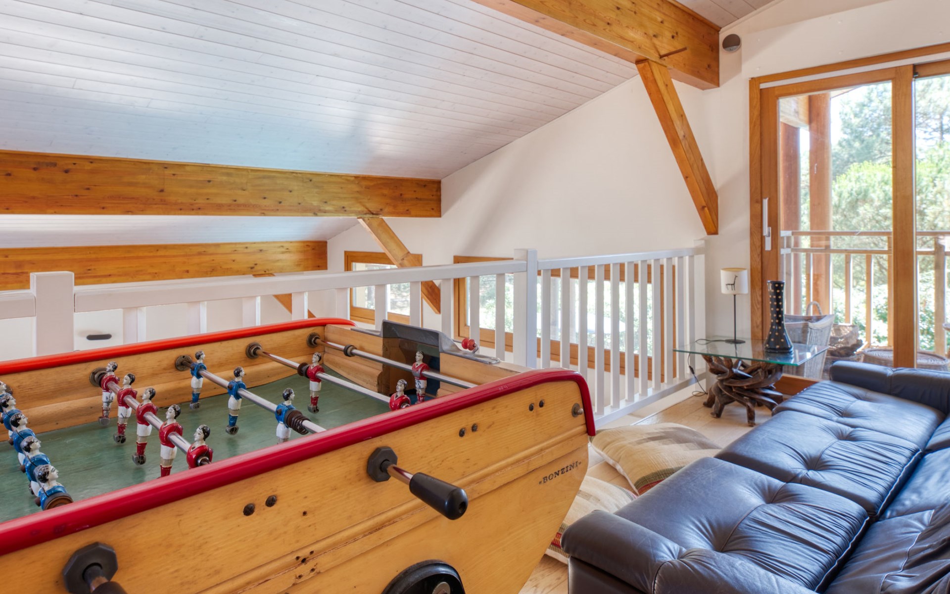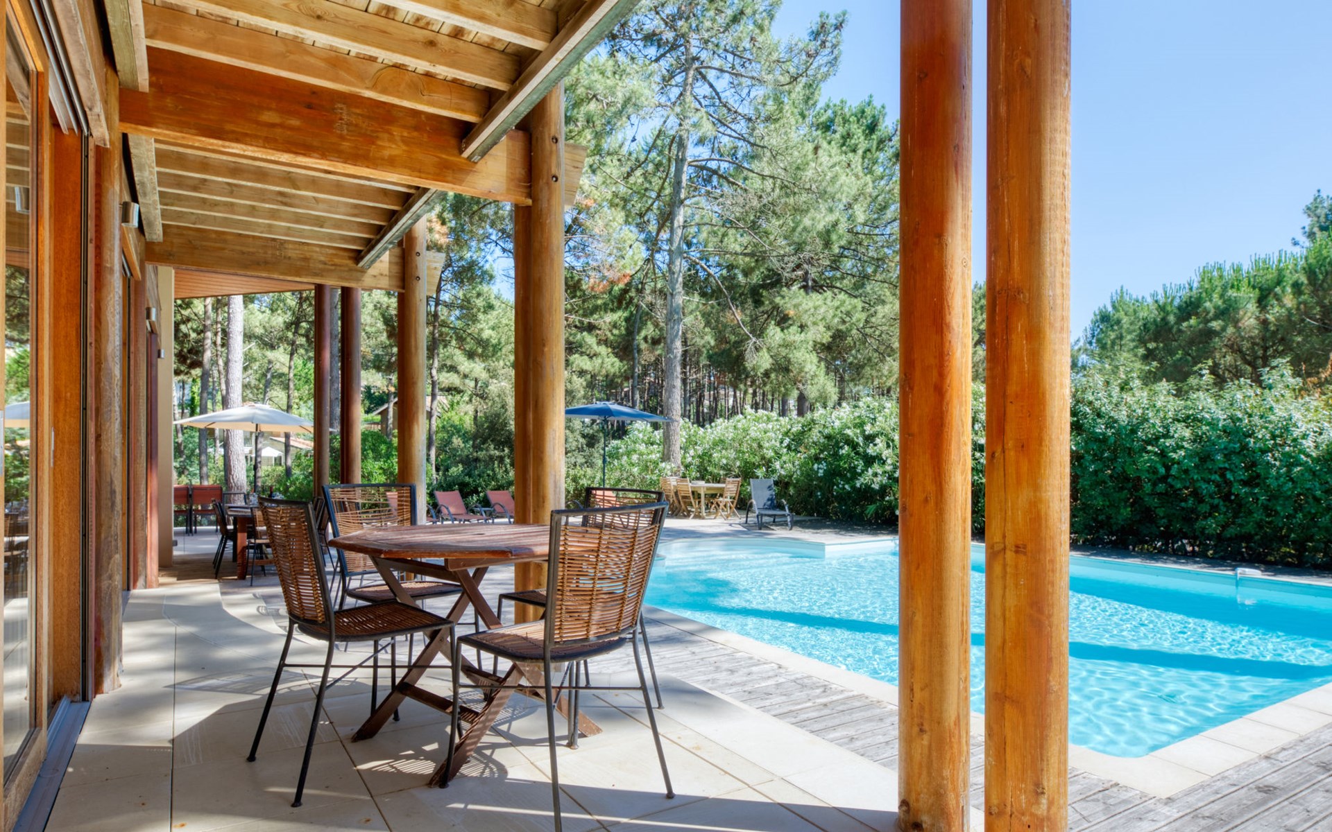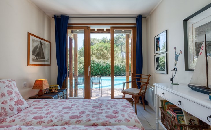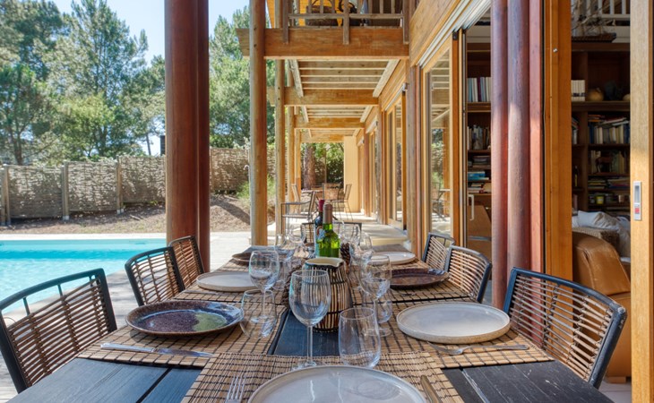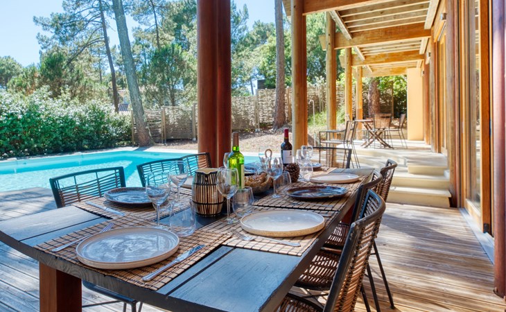 Groot, mooi villa "La Lisière des Pins", bouwjaar 2013. 2.5 km van het centrum van Lacanau-Océan, 12 km van het centrum van Lacanau-Ville, 55 km van het centrum van Bordeaux, in een woonwijk, 2 km van zee, 2 km van het strand, aan een doodlopende weg. Voor alleengebruik: wild terrein 850 m2 (omheind) met bomen, openluchtzwembad (7 x 7 m, 160 - 200 cm diepte, seizoensgebonden beschikbaarheid: 26.Apr. - 27.Sep.) met alarminstallatie. Buitendouche, terras, tuinmeubelen. In het huis: tafeltennis, tafelvoetbal. Parkeerplaats (voor 2 auto's) bij het huis op het terrein. Supermarkt 2 km, zandstrand "Plage Lacanau Sud" 2 km, meer (zwemmen) "Lacanau Le Moutchic" 5.5 km. Golfterrein (18 holes) 2 km, surfschool 2 km, manege 1 km. De eigenaar accepteert geen groepen. De eigenaar accepteert geen jeugdgroepen. De omgeving is gevoelig voor geluidsoverlast. Gelieve geen lawaai te maken en de rust te bewaren.