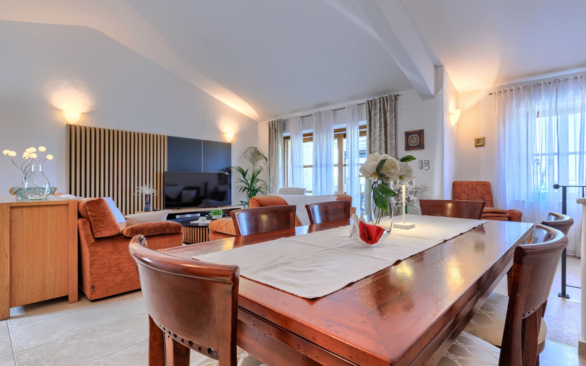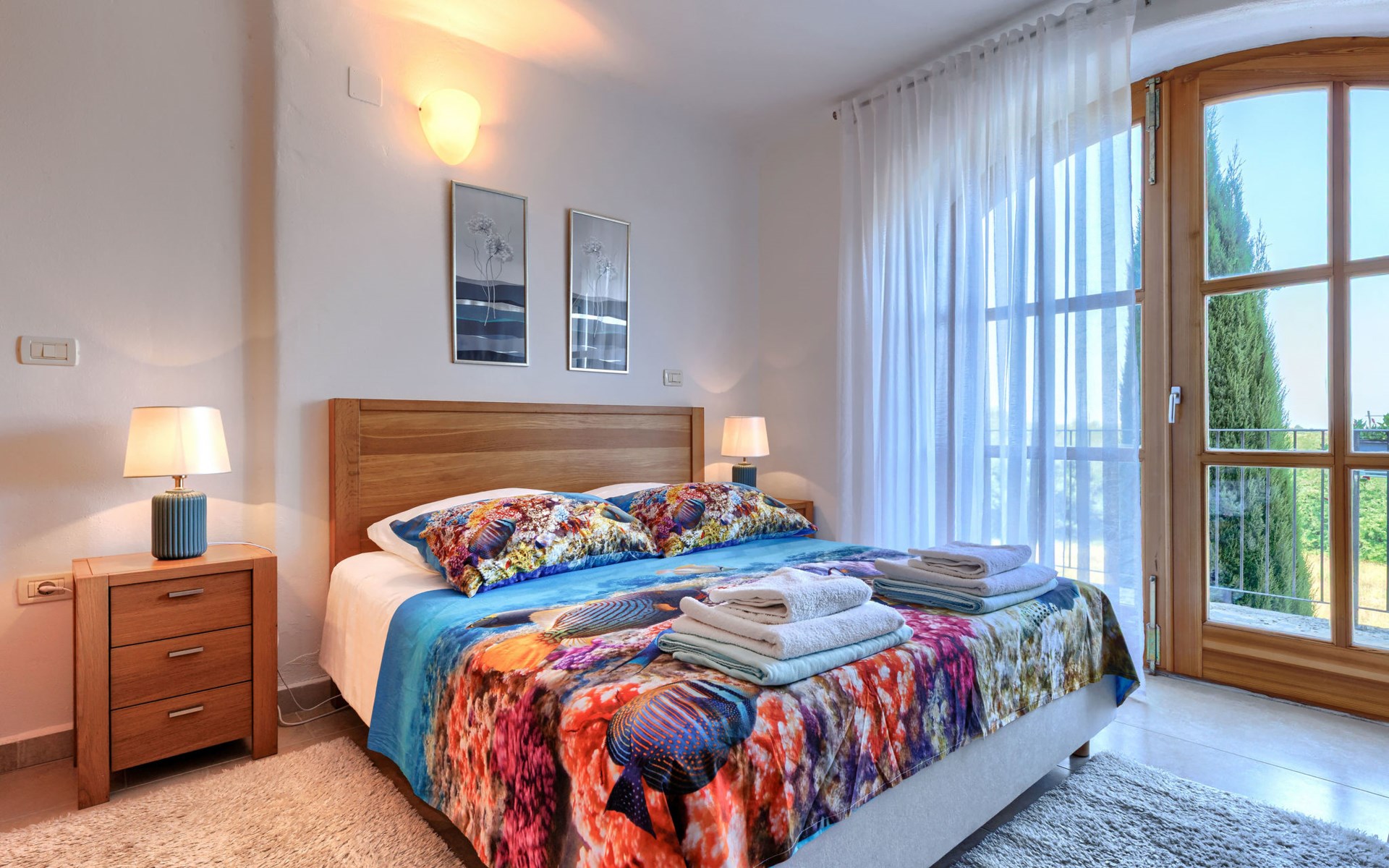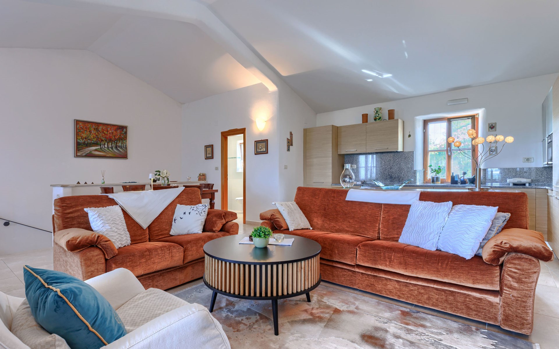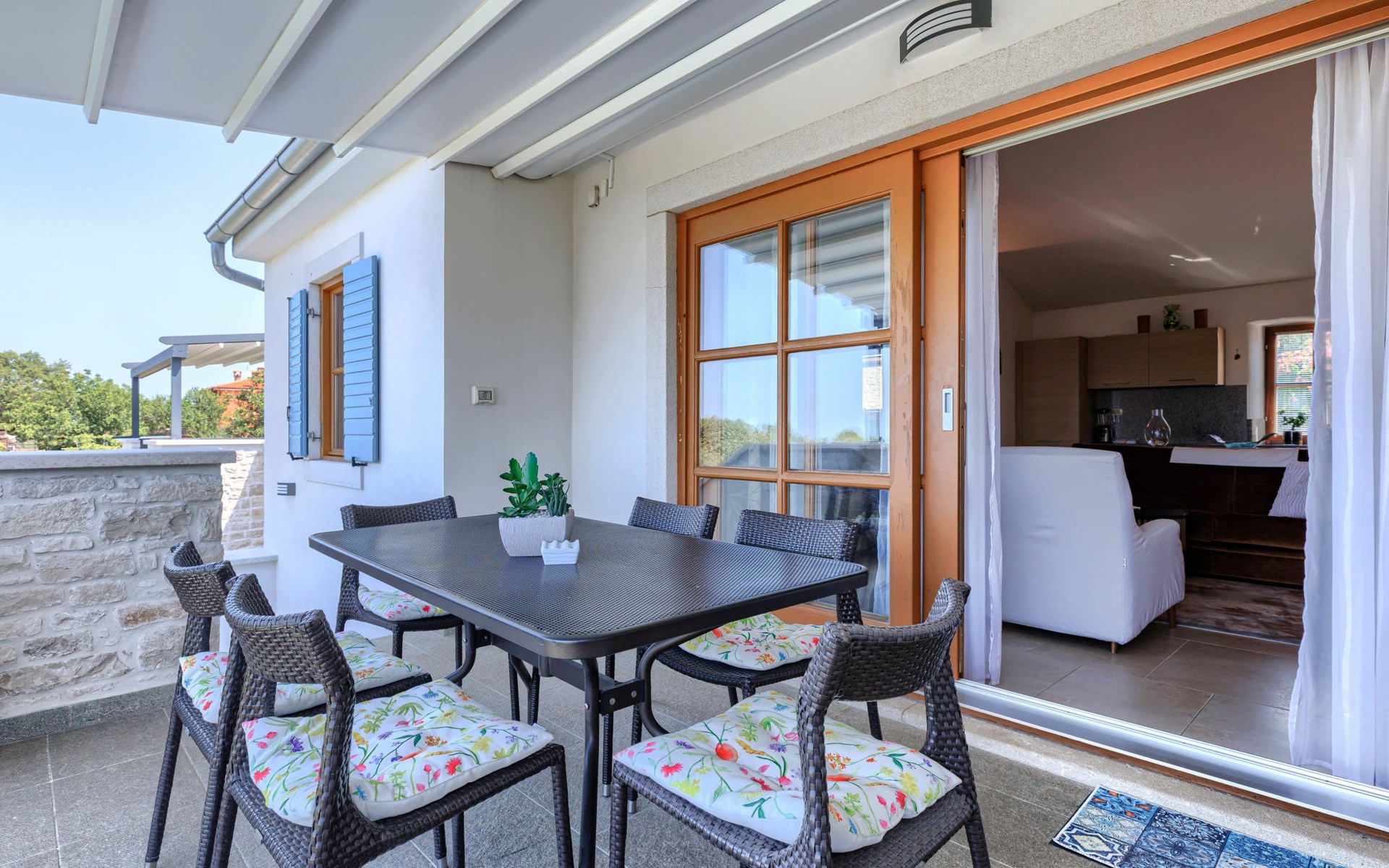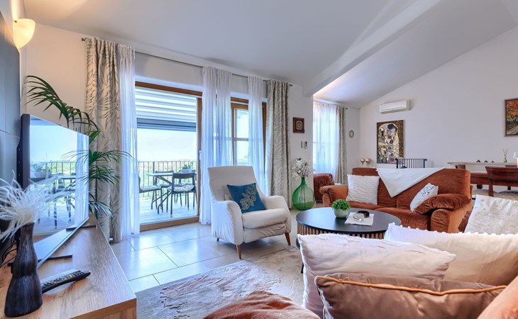 Mooi rijtjeshuis "Bibali", van 2 verdiepingen. In het gehucht Bibali, 2 km van het centrum van Buje, rustige, zonnige ligging tegen een helling, 12 km van zee. Voor medegebruik: terrein 2.000 m2 (omheind), tuin, openluchtzwembad hoekig (11 x 8 m, 100 - 150 cm diepte, seizoensgebonden beschikbaarheid: 15.Apr. - 15.Okt.) met trap. Buitendouche. In het huis: internetaansluiting, wasmachine, droger. Parkeerplaats bij het huis op het terrein. Winkel 2 km, restaurant 2 km, bushalte 2 km, treinstation 28 km, kiezelstrand 12 km. Golfterrein (18 holes) 17 km, tennis 1 km, manege 5 km, wandelroutes 1 km vanaf het huis, fietspad 1 km. De omgeving is gevoelig voor geluidsoverlast. Gelieve geen lawaai te maken en de rust te bewaren.
