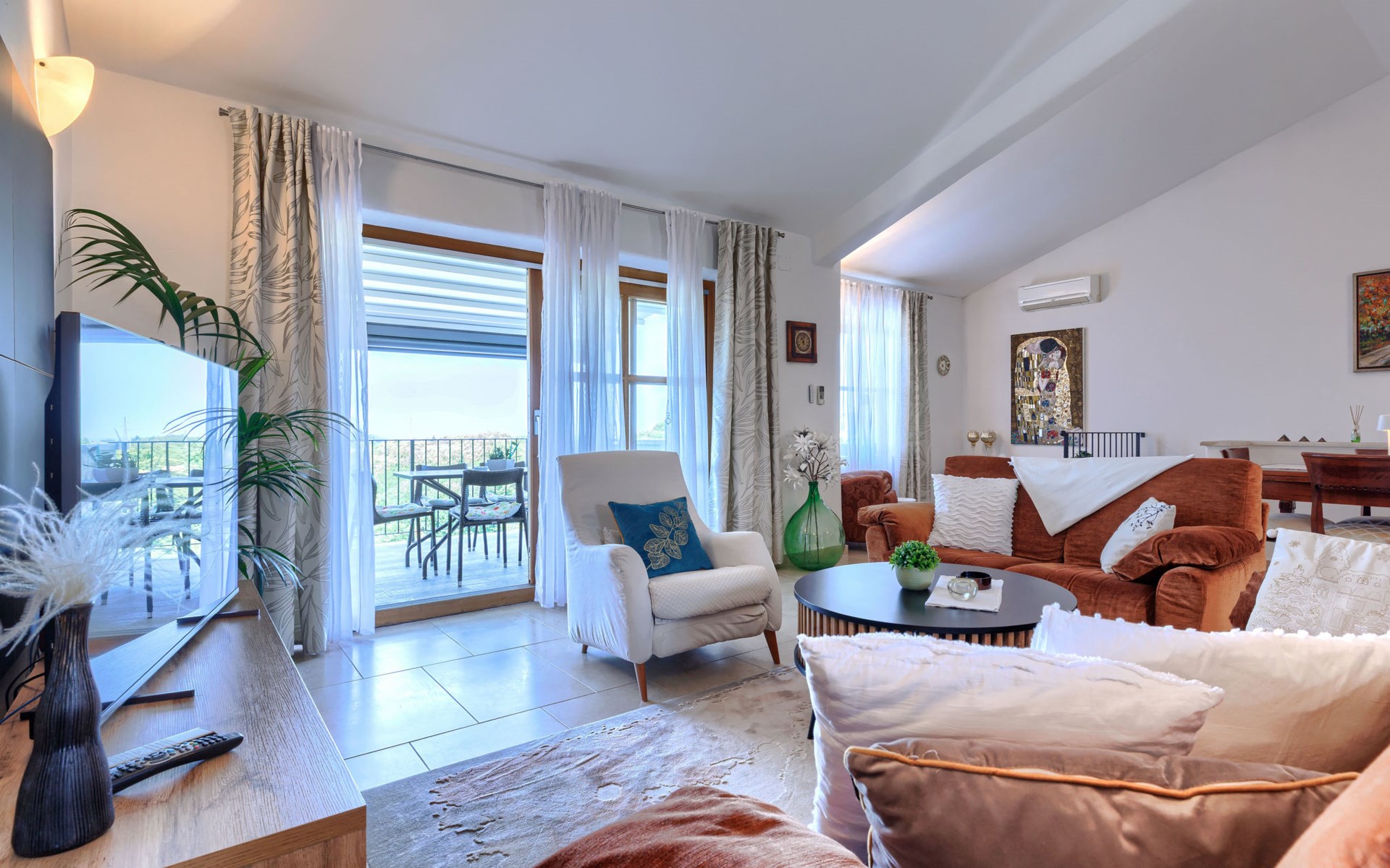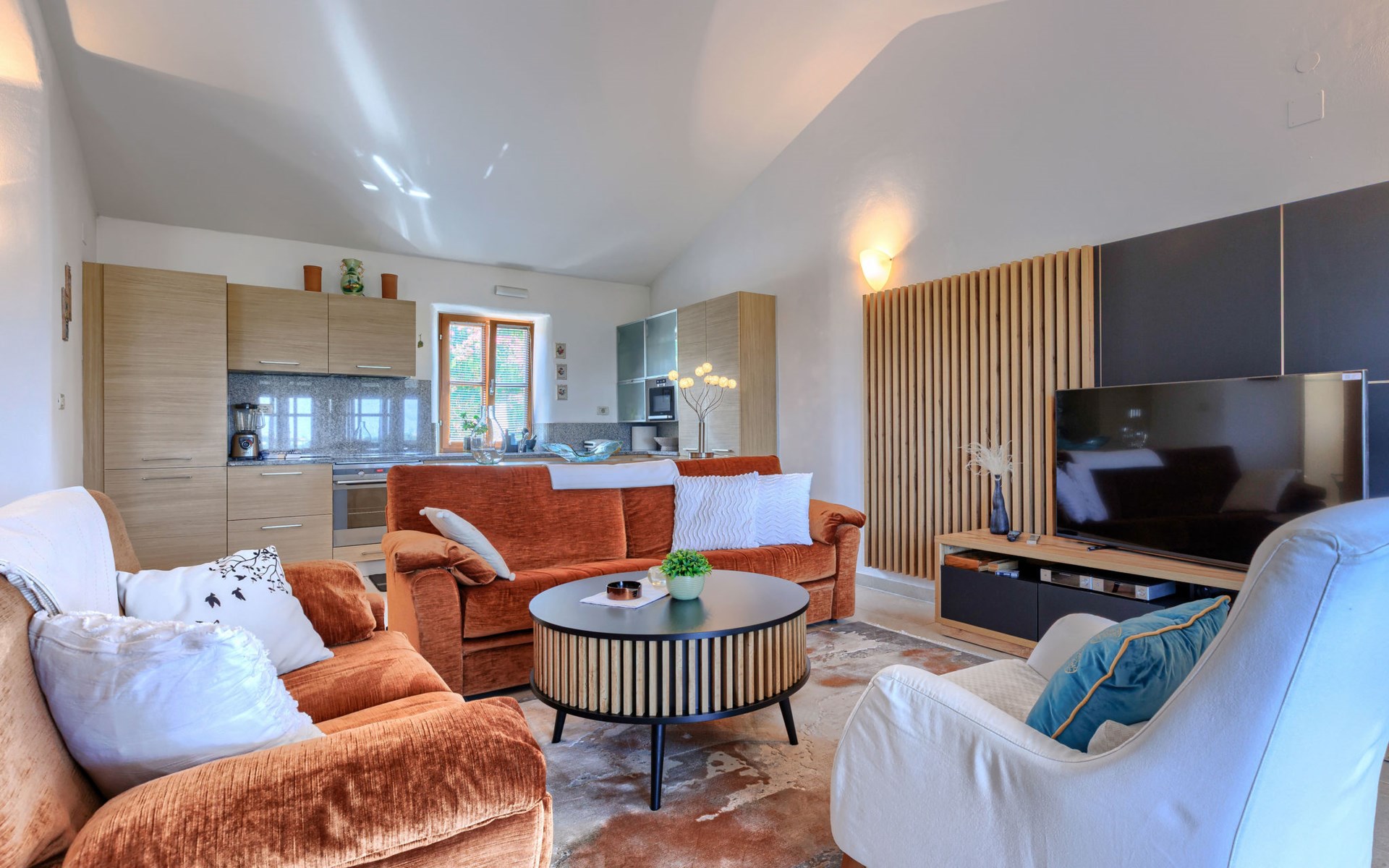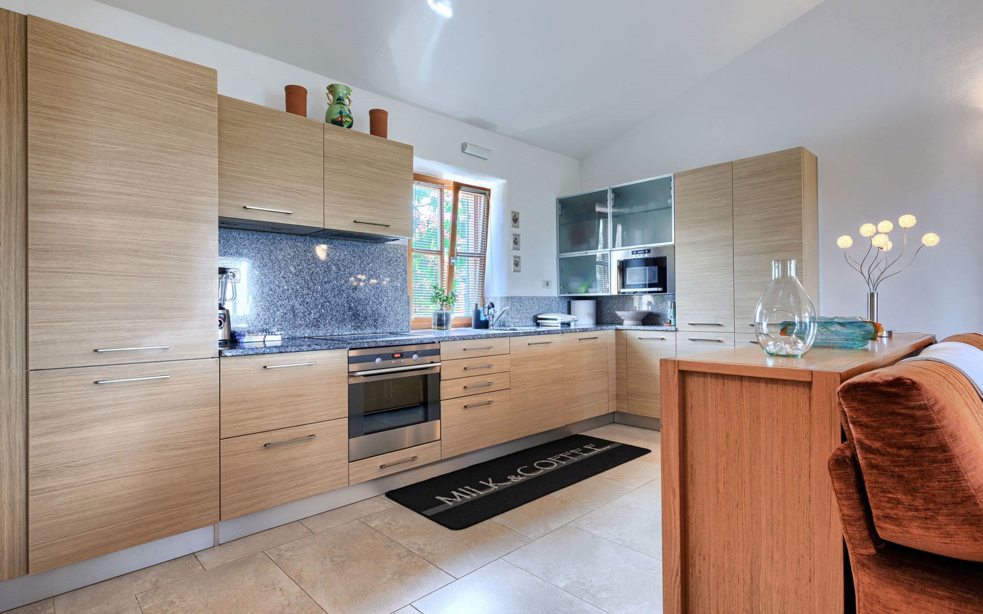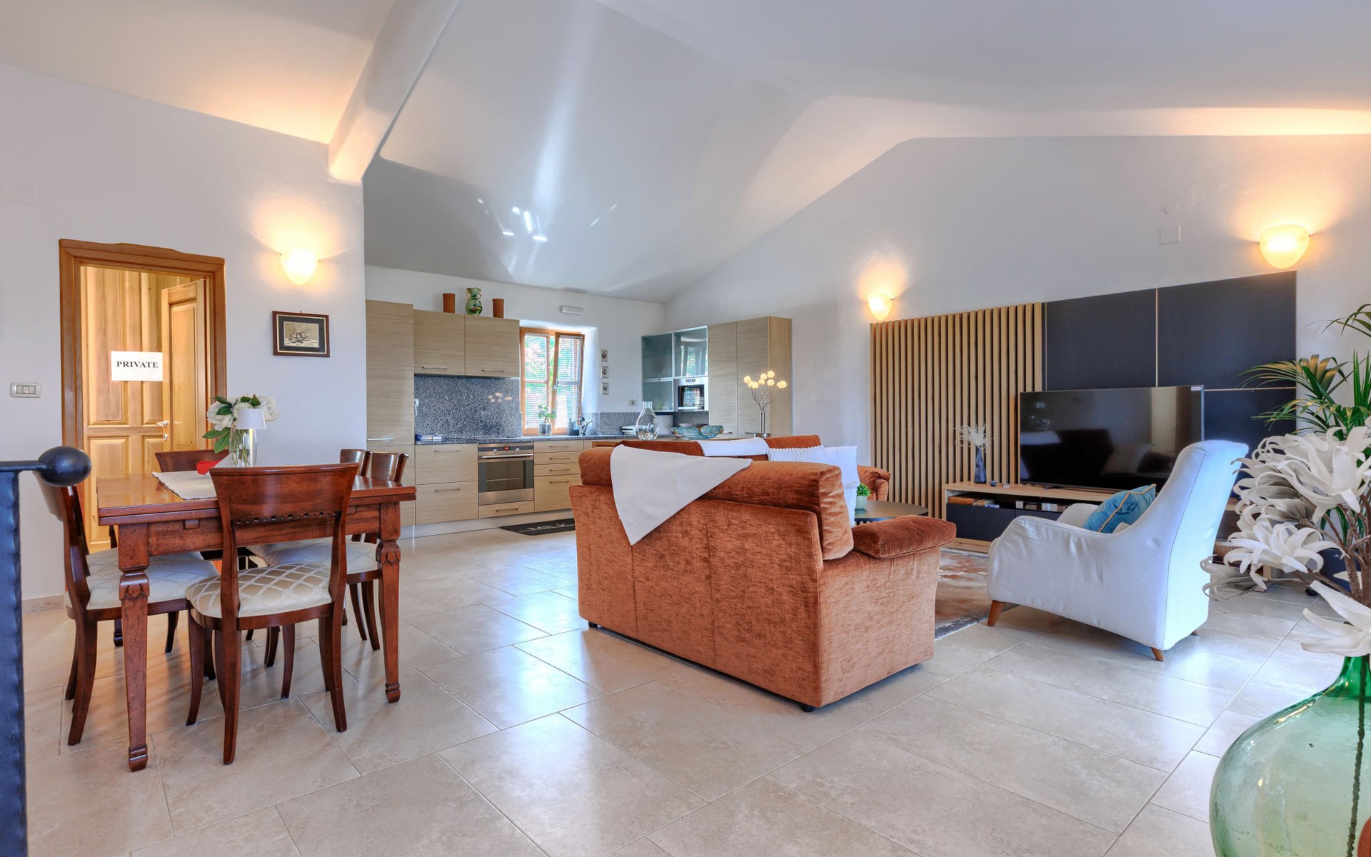 Mooi rijtjeshuis "Bibali", van 2 verdiepingen. In het gehucht Bibali, 2 km van het centrum van Buje, rustige, zonnige ligging tegen een helling, 12 km van zee. Voor medegebruik: terrein 2.000 m2 (omheind), tuin, openluchtzwembad hoekig (11 x 8 m, 100 - 150 cm diepte, seizoensgebonden beschikbaarheid: 15.Apr. - 15.Okt.) met trap. Buitendouche. In het huis: internetaansluiting, wasmachine, droger. Parkeerplaats bij het huis op het terrein. Winkel 2 km, restaurant 2 km, bushalte 2 km, treinstation 28 km, kiezelstrand 12 km. Golfterrein (18 holes) 17 km, tennis 1 km, manege 5 km, wandelroutes 1 km vanaf het huis, fietspad 1 km. De omgeving is gevoelig voor geluidsoverlast. Gelieve geen lawaai te maken en de rust te bewaren.