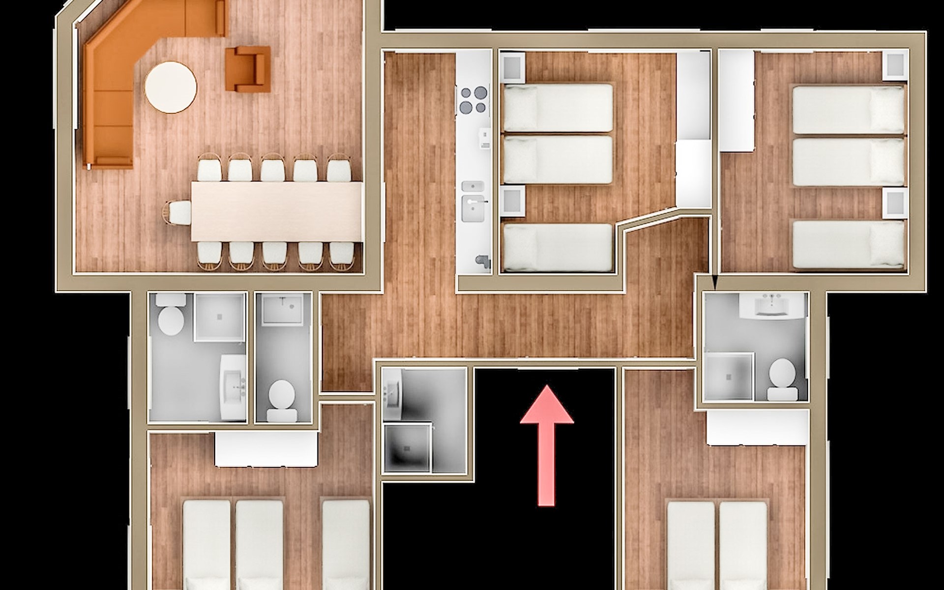 Moderne, comfortabel flatgebouw "Alpin". Rustige, zonnige, verhoogde ligging, 300 m van het skigebied. Voor medegebruik: terrein, ligweide. In het huis: receptie, sauna, In de winterperiode is de gebruik van de sauna inbegrepen (1 maal per week), infrarood sauna, ontspanningsruimte, lift, bergruimte voor fietsen, berging voor ski's, centrale verwarming, skischoendroger. Wissel van handdoeken 1 maal per week. Broodjesservice. Parkeerplaats bij het huis. Oplaadstation. Levensmiddelenwinkel 1 km, restaurant 100 m, bushalte 100 m, treinstation 30 km, thermaalbad "Aqua Dome" 14 km. Golfterrein (18 holes) 40 km, wandelroutes 20 m vanaf het huis, kabelbaan op 1.3 km, skipisten 50 m, skiverhuur 1.3 km, skischool 1.3 km. De eigenaar accepteert geen jeugdgroepen. Bij goede skicondities is het huis bereikbaar per ski.