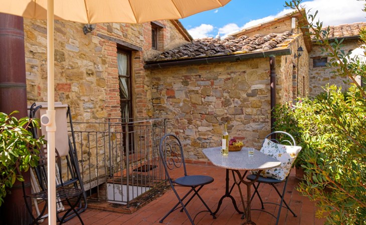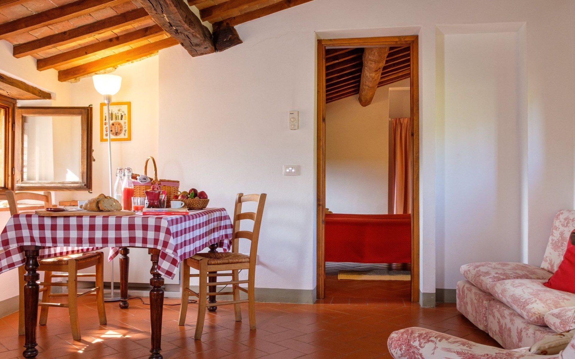 Our farmhouse is located in the heart of Chianti Classico, surrounded by vineyards and olive groves halfway between Siena and Florence. The Siena-Florence motorway is easily accessible and our flats are the ideal starting point for exploring the characteristic villages of Chianti such as Castellina, Greve, Panzano and Radda in Chianti, the art cities of San Gimignano, Volterra, Siena and Florence, the enchanting beaches of Tuscany and the beautiful region of Val d'Orcia in southern Tuscany. Day trips to Pisa, Lucca and Pistoia are possible.Flat in the Podere Ticciaia (40 sqm on one floor, access via stairs, 2 people). Beautiful and romantic flat with 1 double bedroom, bathroom with shower, living/dining area, kitchenette with access to private terrace with table and chairs, shared olive garden with relaxing view. Flat equipped with air conditioning.COMMON SPACES AND FACILITIES OF TICCIAIA: In the recent renovation of the building, the typical architectural elements have been respected: the tower with mullioned window and a small but charming courtyard. From Ticciaia you can enjoy a breathtaking view of the Chianti hills, vineyards and surrounding woods. At Podere Ticciaia you can enjoy pleasant outdoor spaces and a shared solarium. Free Wi-Fi 24 hours a day, 7 days a week. Private parking.Large swimming pool (14x7) available to our guestsAvailable to our guests at 1000 metres near the winery. Pool opening(1 June - 20 September)Reception and friendly staff will be on hand in the mornings to provide you with all kinds of information about events in the area, assistance and useful tips.Wine tasting and tour of the cellar to followby prior arrangement with our staff.Owner living on the propertyTo get to us, a car (or at least anelectric bike) required5 km from your flat you will find San Donato in Poggio, a small and charming medieval village with all services, supermarket, post office, ATM, pharmacy and 3 excellent restaurants (typical Tuscan cuisine, pizza, sandwiches, hamburgers and aperitifs). Our farm is located in the heart of the Chianti Classico area, surrounded by vineyards and olive groves halfway between Siena and Florence. The Siena-Florence motorway is easily accessible and our flats are the ideal starting point for exploring the characteristic villages of Chianti such as Castellina, Greve, Panzano and Radda in Chianti, the art cities of San Gimignano, Volterra, Siena and Florence, the enchanting beaches of Tuscany and the beautiful region of Val d'Orcia in southern Tuscany. Day trips are possible to Pisa, Lucca and Pistoia. IT048054B5KR4YYZ5W