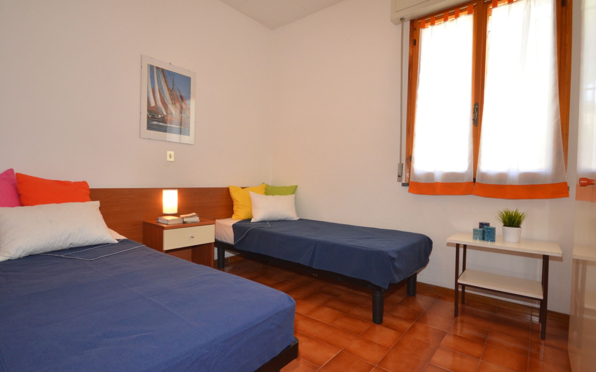 Zeer klein vakantiepark "Borgo Veneziano". 6 huizen in de woning. In de wijk Pineta, 300 m van het centrum van Lignano-Pineta, 13 km van het centrum van Bibione, 65 km van het centrum van Trieste, 700 m van zee. Voor medegebruik: terrein met gazon en bomen. Barbecue. In het huis: wasmachine (voor medegebruik), fietsverhuur. Openbare parkeerplaatsen in de straat. Levensmiddelenwinkel, restaurant 300 m, bushalte 350 m, treinstation "Latisana (Milano-Venezia-Triest)" 20 km, zandstrand 700 m. Golfterrein (18 holes) 4.7 km. Strandservice: Van ca. begin mei tot ca. half september zijn 1 ligstoel, 1 ligstoel en 1 parasol per wooneenheid bij de huurprijs inbegrepen.