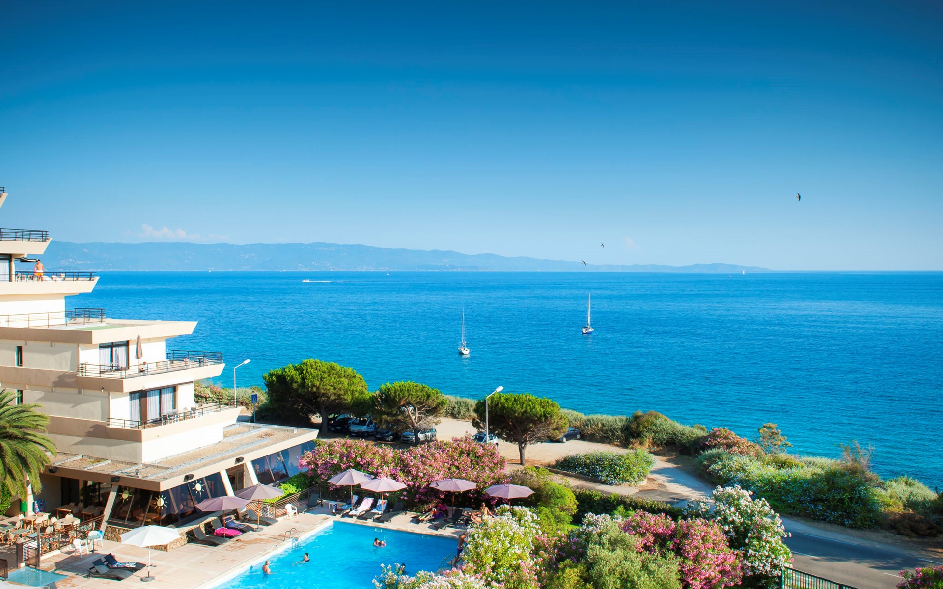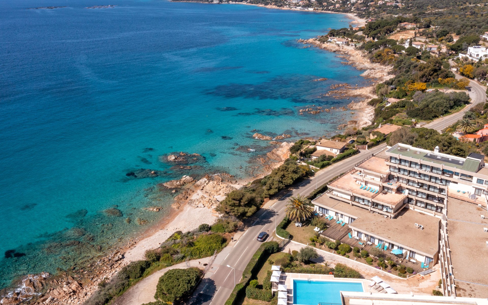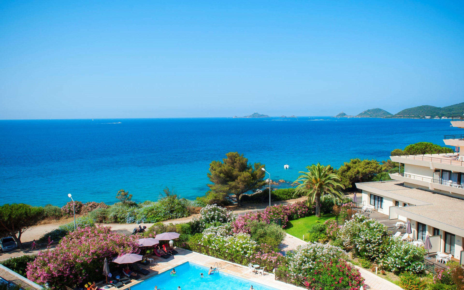 Groot, moderne residentie "Les Calanques", van 6 verdiepingen. 121 appartementen in de woning. 7 km van het centrum van Ajaccio, aan de rand van de plaats, 148 km van het centrum van Bastia, zonnige ligging tegen een helling, 100 m van zee, de straat oversteken, aan een weg. Voor medegebruik: openluchtzwembad verwarmd, omheind (15 x 10 m, seizoensgebonden beschikbaarheid: 01.Mei. - 15.Okt.). Kinderzwembad, buitendouche, tafeltennis, terras. In het complex: receptie, restaurant, bar, salon, bistro, sauna, fitnessruimte, massage (extra). Lift, wasmachine, droger (voor medegebruik, extra). Broodjesservice en ontbijt op verzoek (extra). Parkeerplaats op 100 m gemeenschappelijke garage (extra). Oplaadstation. Winkel 3 km, bushalte "Calanques" 6 m, veerboot "Ajaccio" 7 km, zandstrand "Plage Marinella" 2 km, rotsstrand 100 m (klein). Autovrij vakantiepark, auto noodzakelijk. De afgebeelde foto is slechts een voorbeeld.