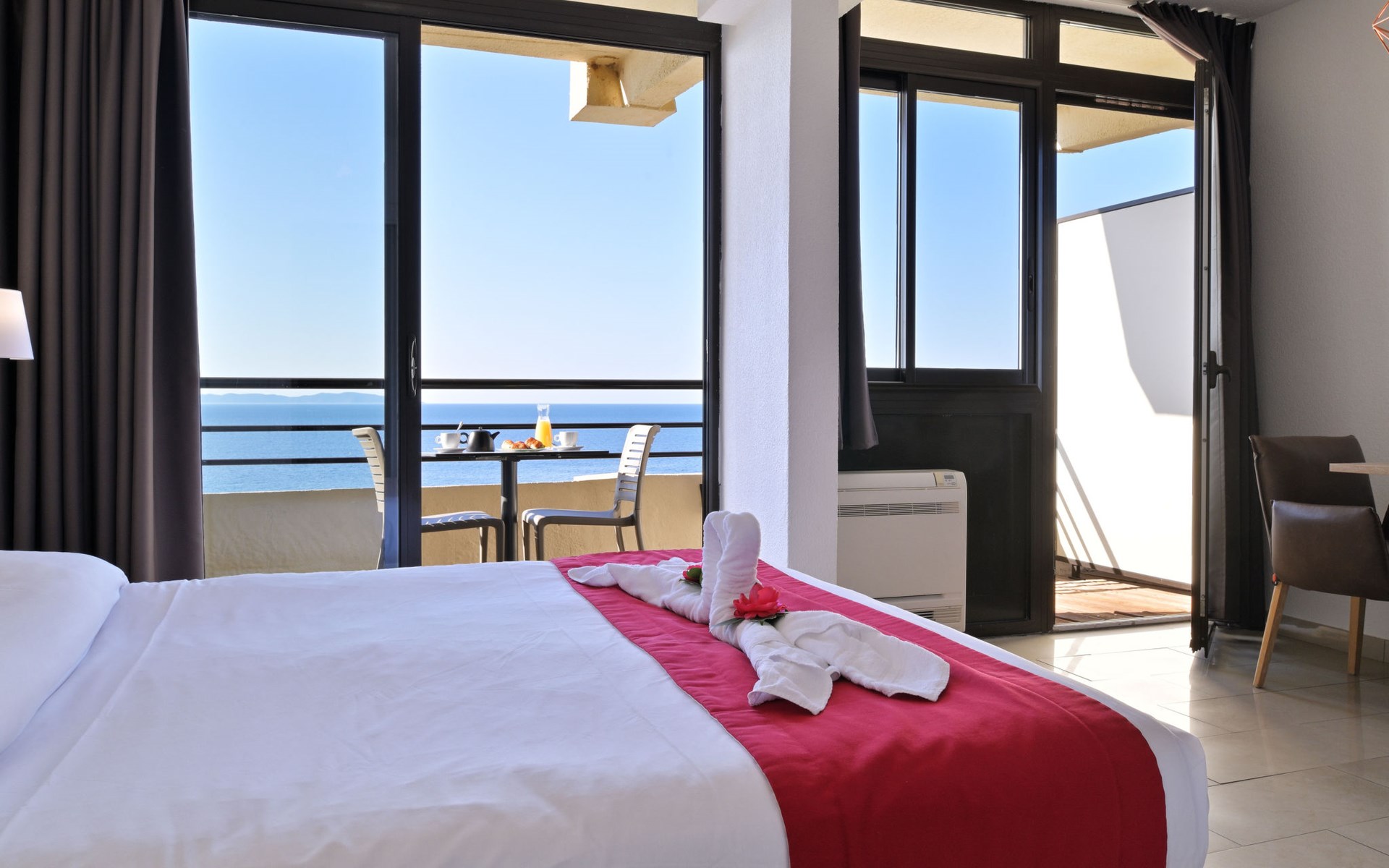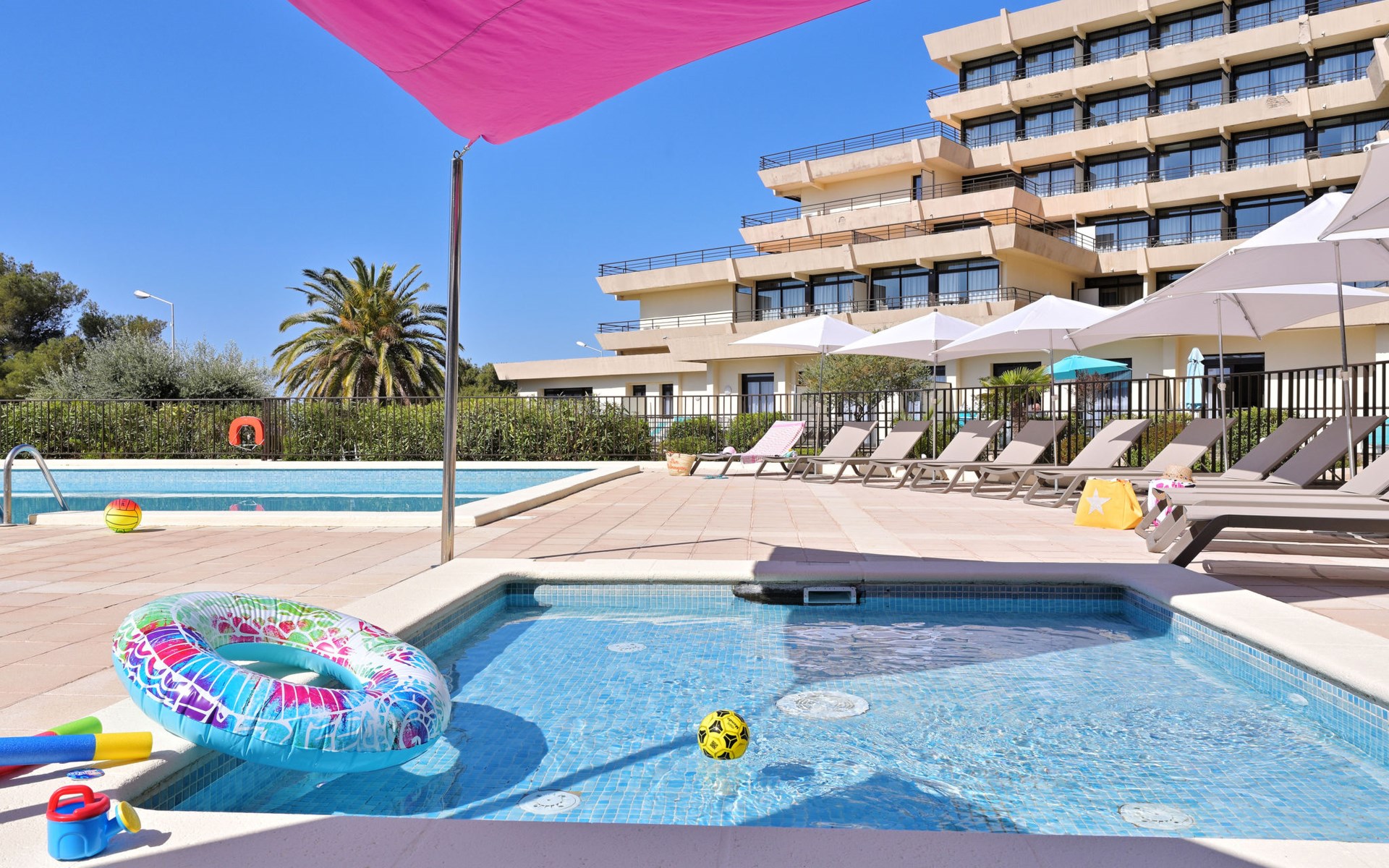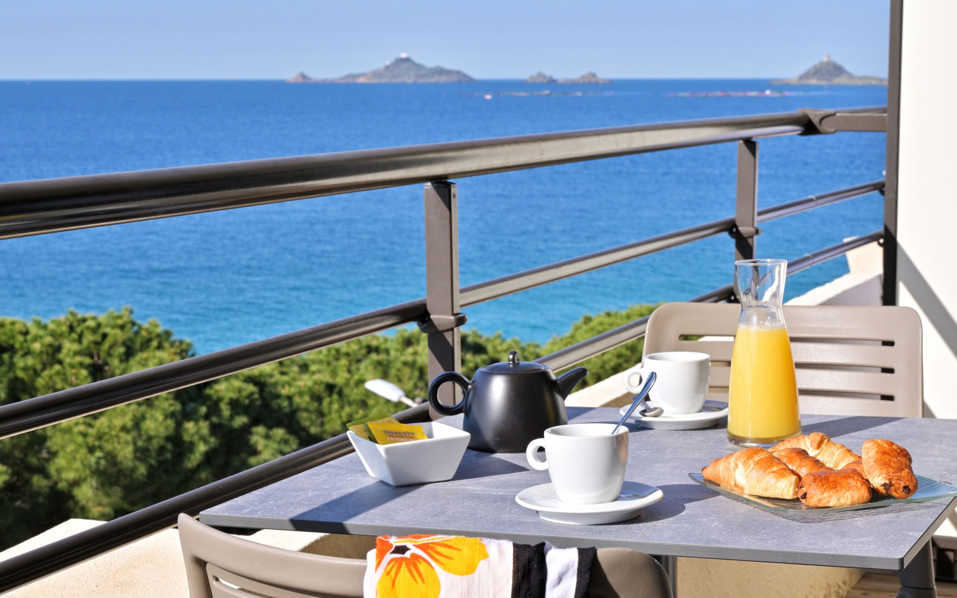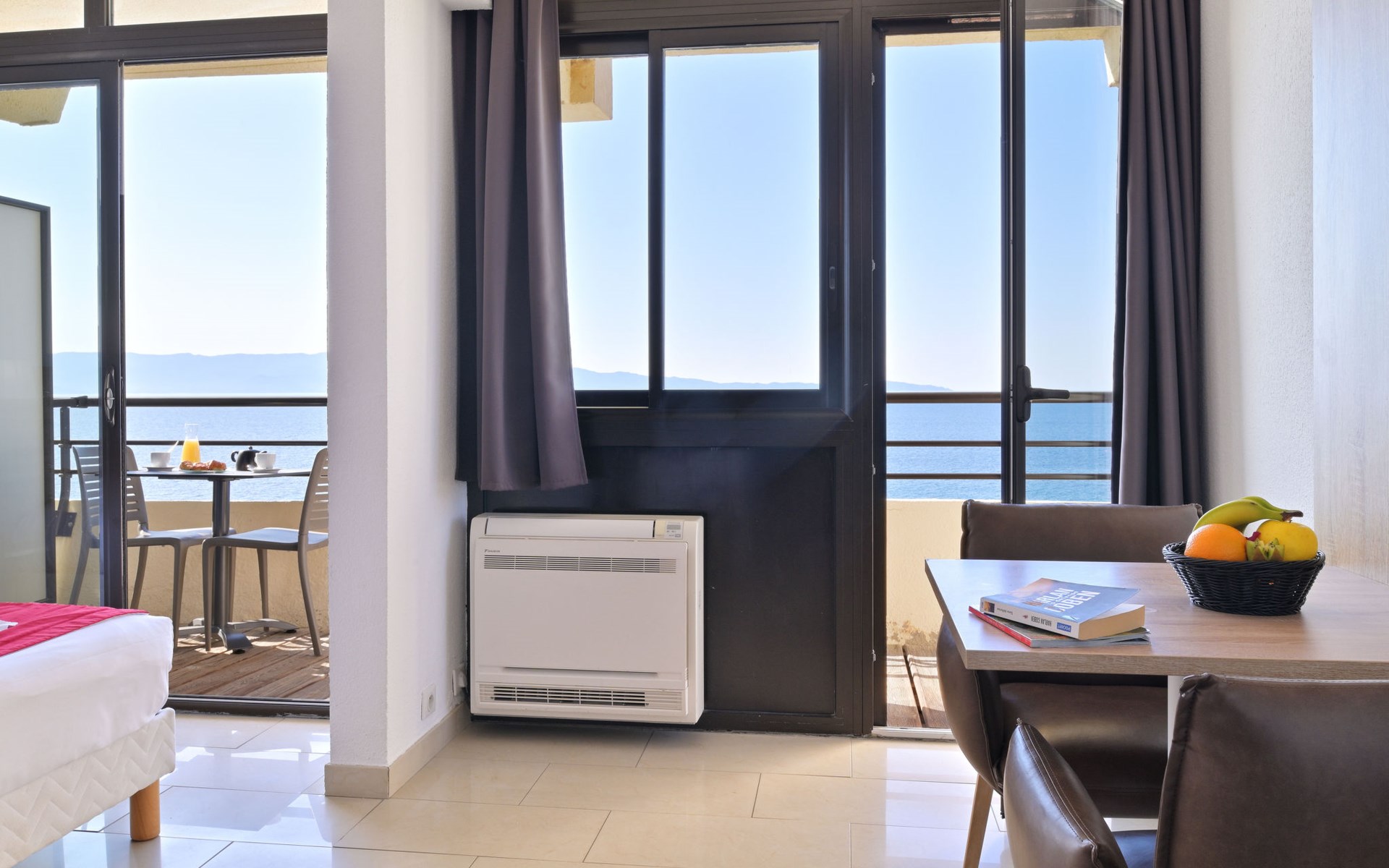 Groot, moderne residentie "Les Calanques", van 6 verdiepingen. 121 appartementen in de woning. 7 km van het centrum van Ajaccio, aan de rand van de plaats, 148 km van het centrum van Bastia, zonnige ligging tegen een helling, 100 m van zee, de straat oversteken, aan een weg. Voor medegebruik: openluchtzwembad verwarmd, omheind (15 x 10 m, seizoensgebonden beschikbaarheid: 01.Mei. - 15.Okt.). Kinderzwembad, buitendouche, tafeltennis, terras. In het complex: receptie, restaurant, bar, salon, bistro, sauna, fitnessruimte, massage (extra). Lift, wasmachine, droger (voor medegebruik, extra). Broodjesservice en ontbijt op verzoek (extra). Parkeerplaats op 100 m gemeenschappelijke garage (extra). Oplaadstation. Winkel 3 km, bushalte "Calanques" 6 m, veerboot "Ajaccio" 7 km, zandstrand "Plage Marinella" 2 km, rotsstrand 100 m (klein). Autovrij vakantiepark, auto noodzakelijk. De afgebeelde foto is slechts een voorbeeld.