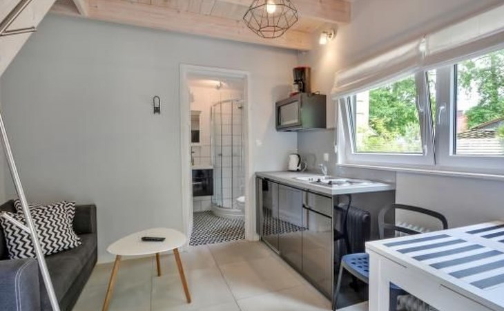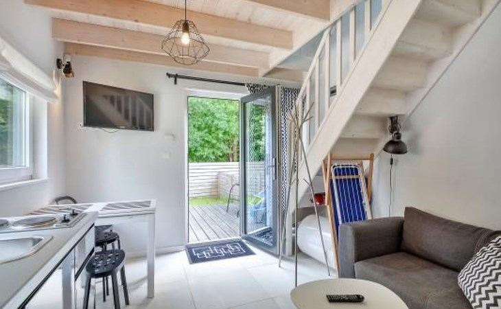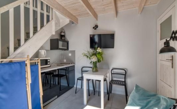 Maximaal 1 huisdier/hond toegestaan. The Polish coast, and especially the area around Pobierowo (Poberov), located 60 km from the Polish-German border, is regarded as one of the most beautiful, with its unique, clean, wide beaches. Polish nature, pine and mixed forests, wild birds and animals, but also neat, historic towns. A stay at the Scandinavian Houses in Pobierowo, a 4-minute walk to the beach, is an ideal choice for holidays, May Day, longer spring holidays when we are looking for peace, quiet and relaxation.Scandinavian House No. 2 is a 6-person, terraced holiday house by the sea, located 4 minutes walk to the beach, which has been decorated in Scandinavian style. Note that the interiors decorated in this style, despite the simple arrangement, are friendly and warm. This makes staying in them comfortable and allows you to feel a pleasant atmosphere. Scandinavian Houses - 6-person, terraced holiday cottages with independent entrance and terrace is a family-friendly place with children - all children up to the age of 16 stay free of charge. It is worth noting here that a maximum of 4 adults can stay in this cottage. Therefore, when planning a seaside holiday, you can bring not only your little ones, but also your parents or friends.Comfortable furnishings for the whole familyThe holiday terraced house has two separate, lockable bedrooms (4 and 2 persons) and a bathroom with shower. Complete bed linen and towels, as well as a travel cot for a child under 3 years of age are provided to guests free of charge (included in the price of stay) . The kitchenette is equipped for 6 persons: kettle, 2-burner electric cooker, microwave oven, filter coffee maker, pots, dishes, cutlery, plates and glasses. In the Scandinavian Houses in our complex you will find equipment that will make your meal preparation easier and your holiday more enjoyable: deck chairs, beach tent, garden furniture. You can use a comfortable sofa in the lounge area and free Wi-Fi.Scandinavian Houses in Pobierowo is a place oriented towards the stay of families with children. Therefore, we provide our guests free of charge with equipment that will make it much easier and safer for you to take care of your child: a feeding chair, a bathtub, a potty, a platform for the washbasin or special cutlery. In addition, the stairs are secured with special railings and in the bathroom you can use an anti-slip mat when bathing your child.Ground floor: Living room: 3-seater corner sofa bed, coffee table and TV, wooden table with 6 chairs, feeding chair for the youngest. Kitchenette: fridge, double electric hob, coffee machine, microwave, sink and a full set of pots, pans, chopping boards, knives, bowls, dishes, cups, glasses and cutlery for 6 people. Bathroom: 90 cm shower cubicle, washbasin and compact WC and baby bath, non-slip mat in the shower, potty, toilet seat and washbasin platform for the little ones. Stairs: railing to ensure children's safety. Terrace: table, 2 chairs. Additional equipment free of charge: bed linen, towels, travel cot for a child under 3 years old, TV, screen, 2 deckchairs, iron, ironing board - available at reception.Your private, separate terrace has garden furniture and a table. You can also use your deckchairs and beach tent.Outside, in the well-kept natural-style garden, there are hammocks on racks, a place to prepare the barbecue or a playground for our youngest guests (trampoline , pirate castle, swings, slide and sandpit). The whole area of the resort is fenced, so children can play merrily and parents can rest assured of their safety. There is 1 free parking space for your car.Pobierowo (Poberov) is located directly on the Baltic Sea, 60 km from the Polish-German border . Easy access by car from the German side (from Szczecin - highway S3 or from Świnoujście - road 102). The nearest airports are Heringsdorf (Germany) and Goleniów - Szczecin, 65 km from Pobierowo. Direct flights from Kassel, Luxemburg, Bern, Frankfurt/Main, Warsaw, Krakow, Oslo, London and Dublin.The Scandinavian Houses are located in a secluded place in Pobierowo, a 4-minute walk to the beach.Welcome to PobierowoAlthough the Polish coast is dotted with large and smaller resorts that await tourists from May to the end of September, we recommend Pobierowo in particular. Western Pomerania is exceptionally charming, and Pobierowo, situated between Rewal and Dziwnow, is the westernmost village on the Rewal coast. The houses are separated from the beach by a pine and spruce forest, thanks to which the village is less windy and the air is clean and healthy. Just behind the belt of trees stretches a large sandy beach, ideal for sunbathing, walking and sea bathing. There are perfect conditions for swimming and the air is saturated with iodine and magnesium, which has a positive effect on your mood. In Pobierowo, there is also a pharmacy and many shops where you can do your daily shopping.Hiking and cycling trailsWalking and cycling is a great combination of exercise with observing the coastal nature and breathing fresh, healthy air. It is worth coming to Pobierowo taking bicycles with you, however, if you do not have such an option, you can also rent them on the spot. The surroundings of Pobierowo abound in interesting places for walks, as there is no shortage of walking trails here! There are two main hiking trails running through Pobierowo itself: the Czesław Piskorski Seaside Trail and the Pobrzeże Rewalskie Trail. Both are not much longer than 10 km, so ideal even for a trip with children. The most popular cycling routes are: Pobierowo Summer Trail and the Western Liaison Trail. The bike trails are mainly gravel roads, clearly marked on which you ride safely and comfortably.Rope parks and other amusementsRope parks and amusement parks are ideal places for families with children. They offer active, sometimes a little extreme, but always safe ways to spend your free time. Worth recommending is the Gibon rope park in Rewal. There are a t