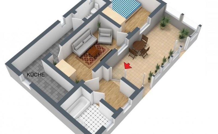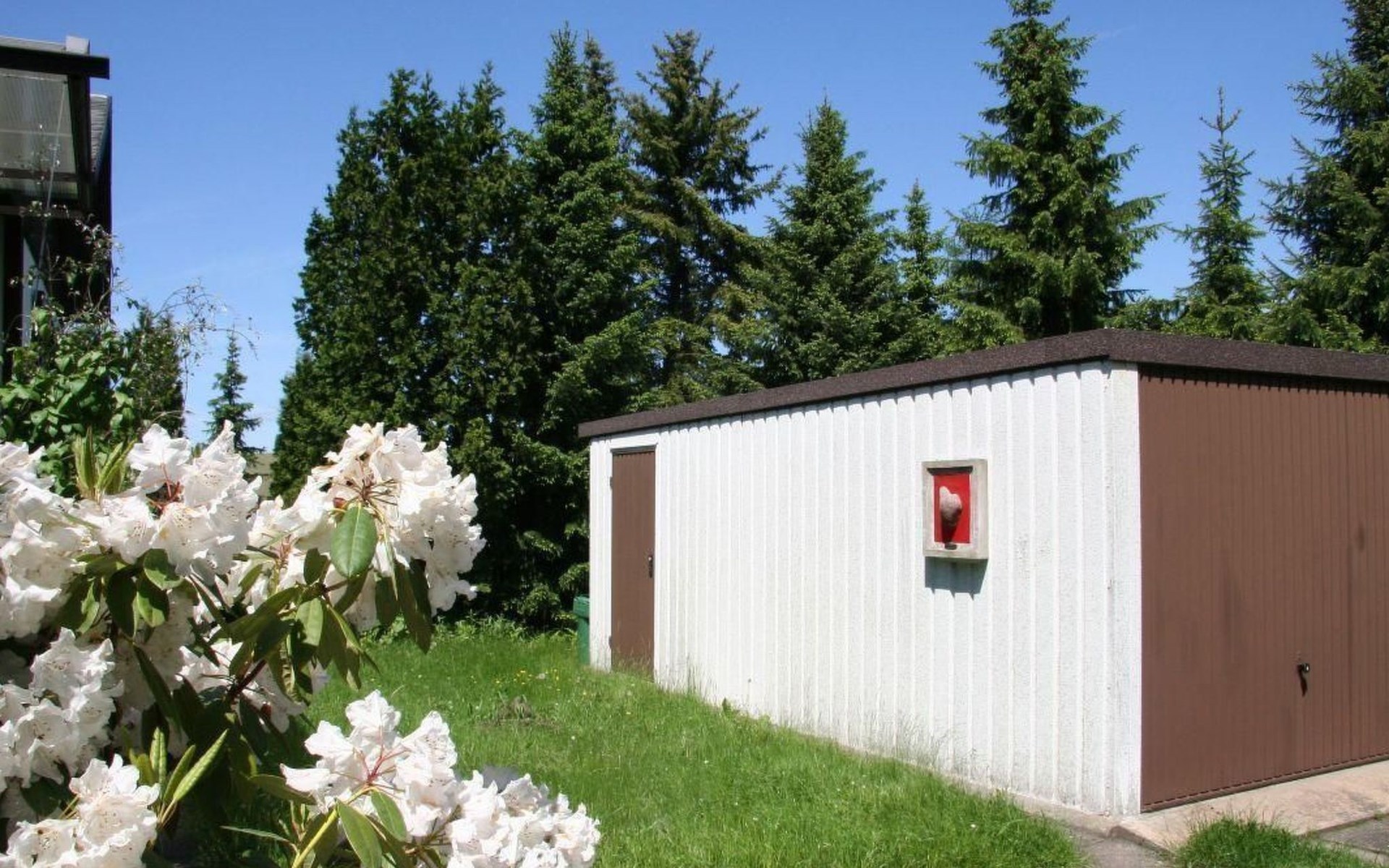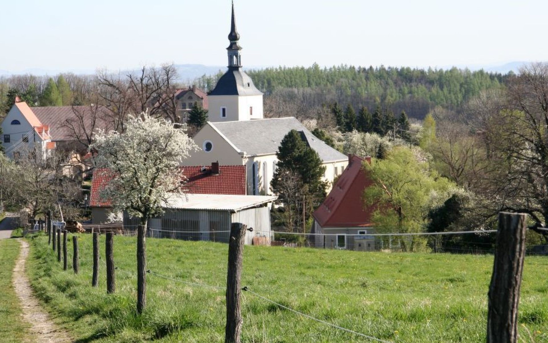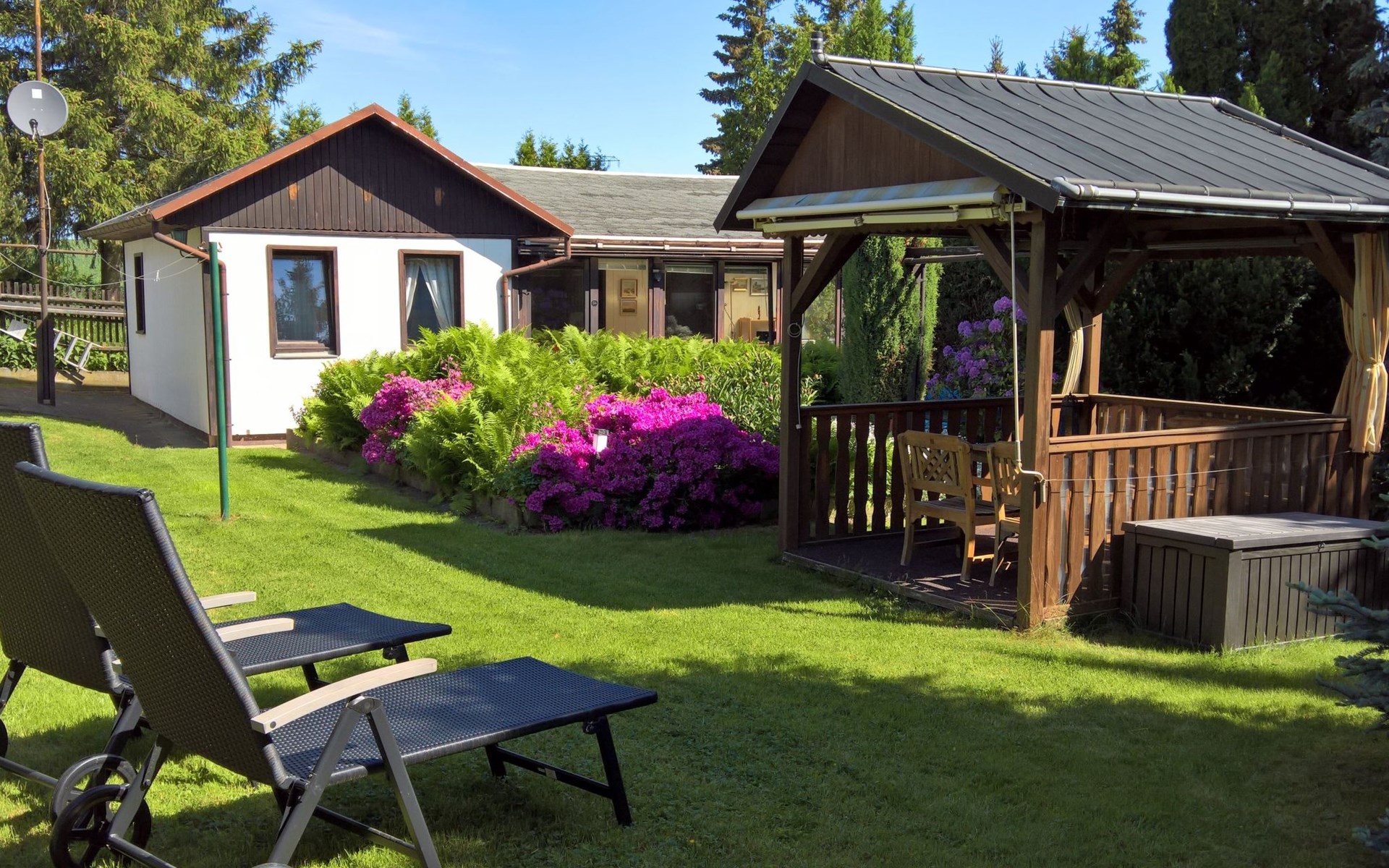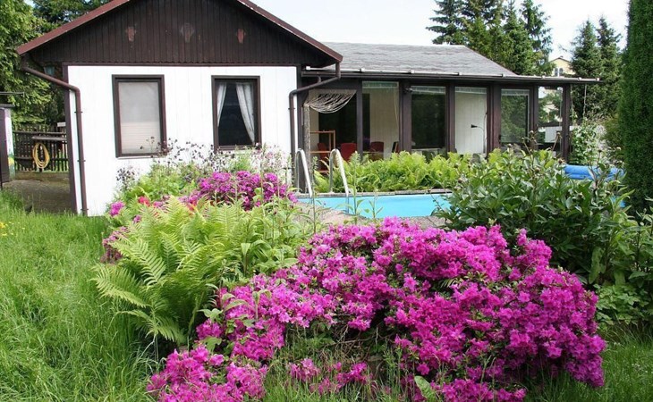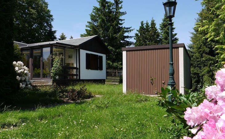 Het royale tuinperceel van ongeveer 750 m² is vrij van inkijk en bevindt zich aan de rand van het dorp. Het perceel wordt aan de achterkant begrensd door de velden, aan de voorkant hebt u een heel mooi uitzicht op het prachtige Saksisch Zwitserland. Naast het woonhuis is een tuinprieel met zitje.