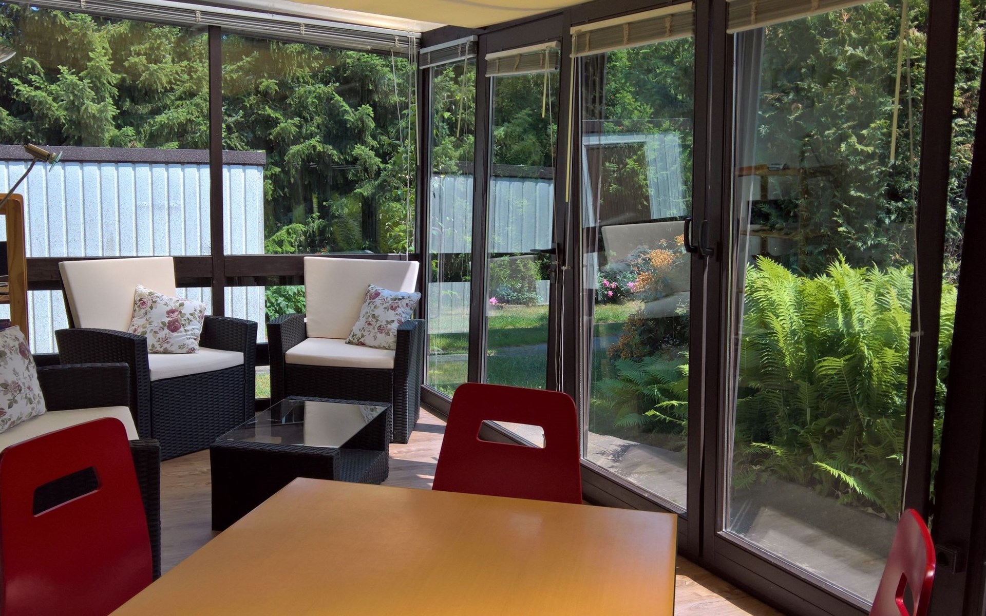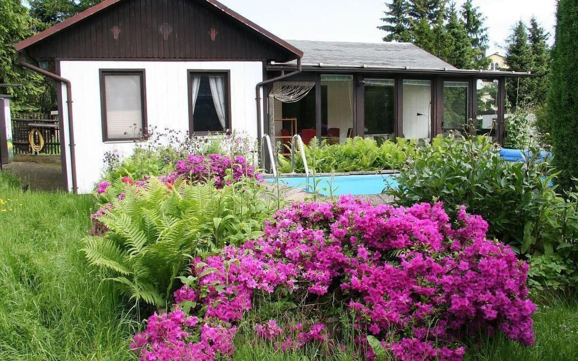 Er is bovendien een garage op het grondstuk. Een pool, die indien nodig verwarmd kan worden, ligt pal voor de wintertuin en heeft de afmetingen 4,50 m x. 3,00 m, met een waterdiepte van ca. 1,60 m. Er is ruim voldoende plaats voor twee personen, een extra slaapplaats op de slaapbank in de woonkamer is eventueel mogelijk. De slaapkamer is voorzien van voldoende kasten en een breed tweepersoonsbed. Een compleet ingerichte keuken, een badkamer en een royale wintertuin dragen bij aan een perfecte vakantie.