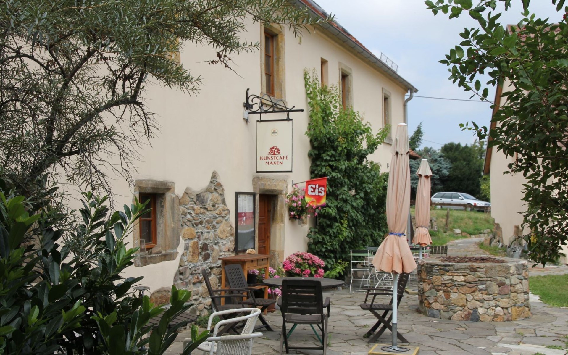 Er is een moderne satelliet-led-tv en een video- en dvd-recorder, zodat met slecht weer de aanwezige, omvangrijke video- en dvd-verzameling voor de nodige tijdverdrijf kan zorgen. Maxen is zowel beroemd om zijn interessante geschiedenis (de beroemdste slag van de Zevenjarige Oorlog – bekend als de zogeheten Finckenfang – vond plaats bij Maxen) als om het prachtige heuvellandschap in het gebied voor het Oost-Ertsgebergte en voor de bizarre coulisse van zandsteen van Saksisch Zwitserland. Het Oost-Ertsgebergte en Saksisch Zwitserland liggen in de directe omgeving en zijn met de auto en met de trein snel te bereiken. Maxen is vooral in cultureel opzicht een zeer interessante plaats. Het al in de 19e eeuw een trefpunt voor kunstenaars. Zo waren bijvoorbeeld de Deense sprookjesdichter Hans Christian Andersen en de schilders Johann Christian Clausen-Dahl en Caspar David Friedrich te gast op het kasteel van Maxen, dat tot op de dag van vandaag nog bestaat. Intussen heeft zich weer een kunstscene in Maxen gevestigd met meerdere galerieën en cafés. Zo is er het Listhus- een verleidelijke plek met fantasievol gearrangeerde kunstobjecten - , de hoeve met de naam Kunsthof Maxen, waarin een omvangrijk programma aan seminars en een eeuwenoude ambiance tot artistieke werken inspireren, de kasteelgalerie en het waarschijnlijk kleinste museum van Duitsland - het Lindenmuseum Clara Schumann in Schmorsdorf, niet ver van Maxen. Maxen ligt ten zuiden van Dresden. Met de auto bent u binnen 30 minuten helemaal in het centrum (met de trein duurt het ongeveer een uur) en u kunt daar van de bezienswaardigheden van Dresden (paleiscomplex Zwinger, Onze-Lieve-Vrouwekerk, schilderijenmuseum) genieten of gaan winkelen (Zentrumsgalerie, Altmarktgalerie). ‘s Avonds nodigt de Dresdner Neustadt uit voor een echte kroegentocht. Vanuit Maxen bereikt u met de auto, via de Müglitztalstraße, in ca. 30 min het Oost-Ertsgebergte. Of u gaat met de trein, de halte Mühlbach in het dal bereikt u na een kwartier wandelen. In het heerlijke boslandschap van het Oost-Ertsgebergte kunt u lange wandeltochten in een toeristisch zeer goed ontsloten gebied maken. Vredige plaatsen zoals Geising of Bärenfels nodigen uit voor een rondje te lopen. In de winter gaat men naar Altenberg om te skiën en te rodelen. Altenberg ligt op ca. 700 hoogte en is zeer sneeuwzeker.