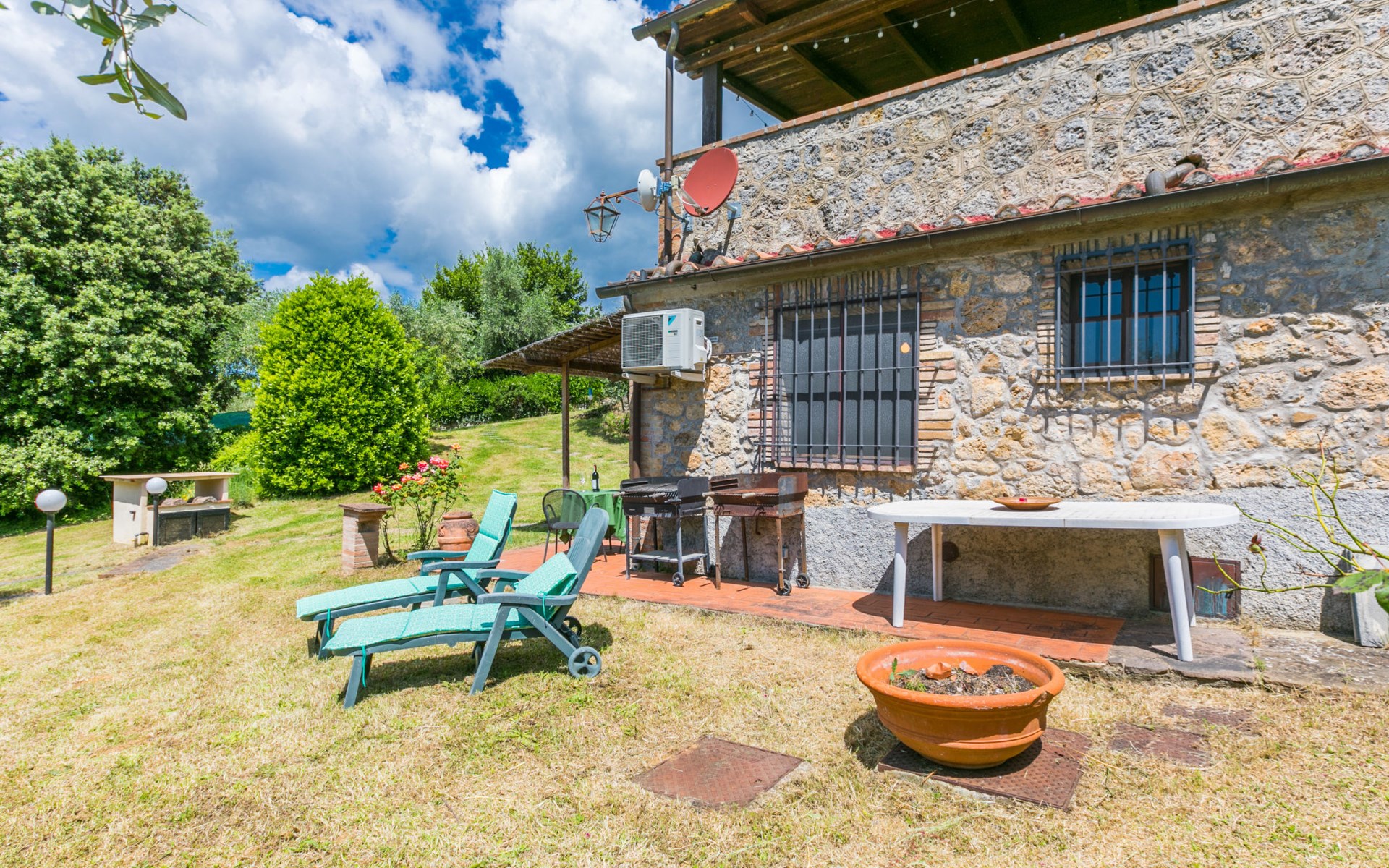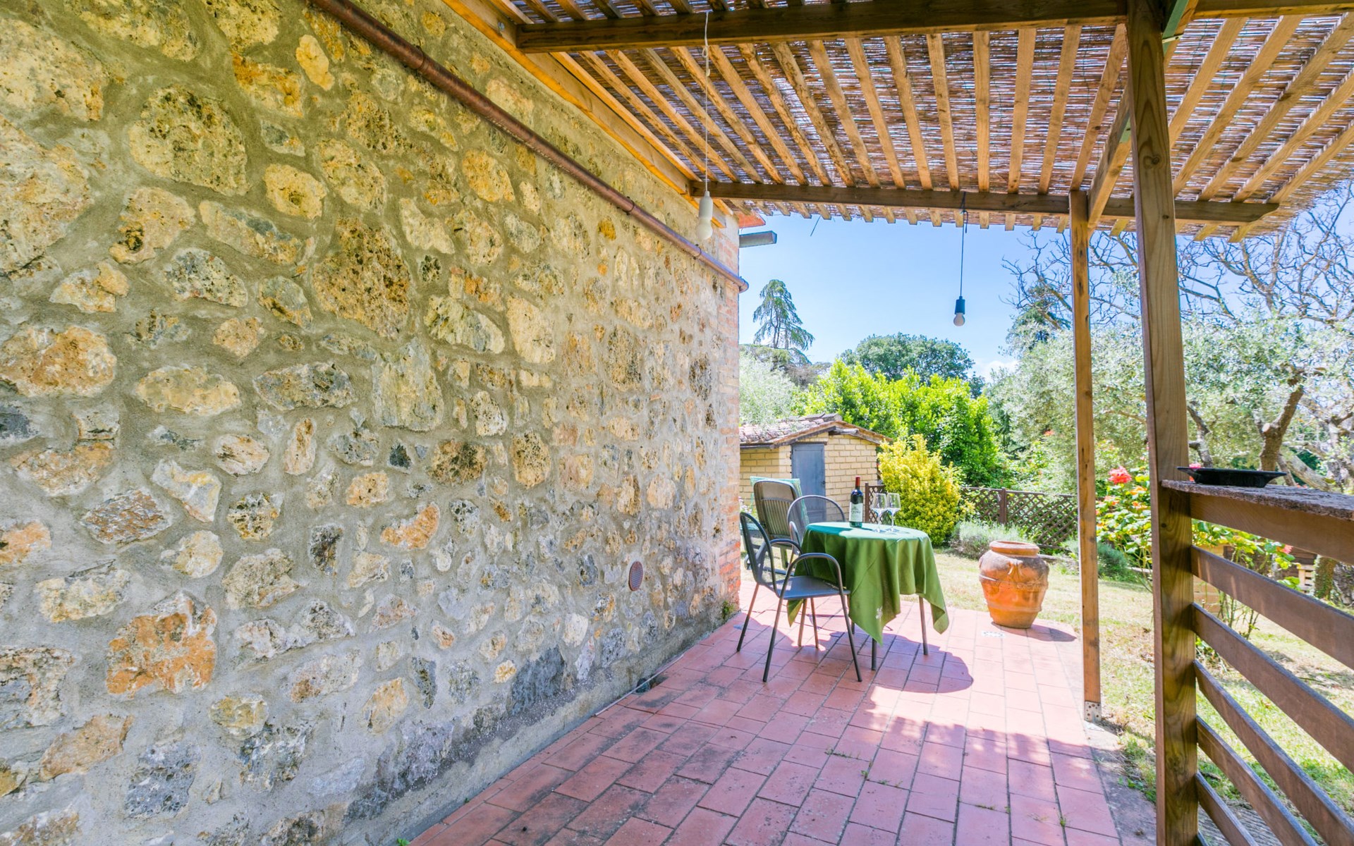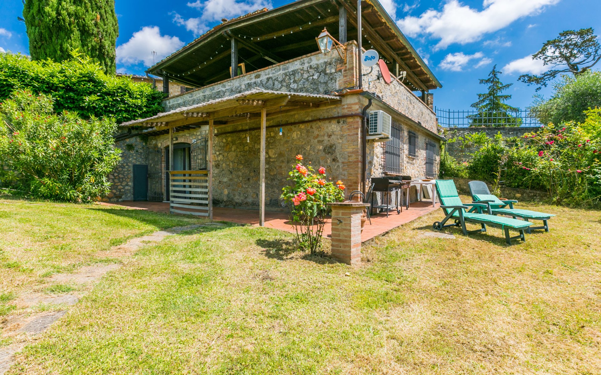 Mooi huis "L'Oliviera", vrijstaand, omgeven door bomen en velden. 5 km van het centrum van Siena, rustige, zonnige, verhoogde ligging, 100 m van de bosrand. Voor alleengebruik: terrein met gazon en planten. Verwarming ter plaatse te betalen (10.Apr. - 31.Okt.). Parkeerplaats bij het huis. Levensmiddelenwinkel 3 km, winkelcentrum 4 km, restaurant 2 km, bushalte 100 m, treinstation "Siena" 6 km, thermaalbad "Rapolano Terme" 35 km. Attracties in de buurt: Montalcino 45 km, Pienza 50 km, Crete Senesi 30 km, Monteriggioni 16 km, San Gimignano 36 km, Montepulciano 65 km. Auto noodzakelijk. Baby uitrusting (incl.). De eigenaar woont op hetzelfde terrein. De eigenaar heeft een hond.