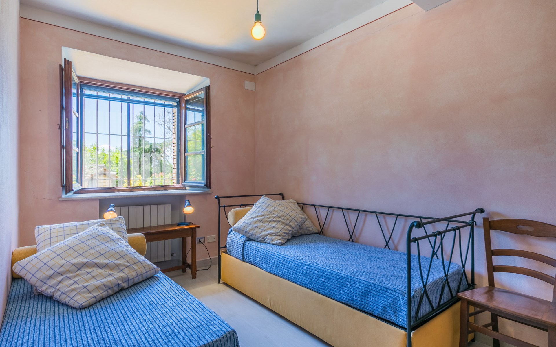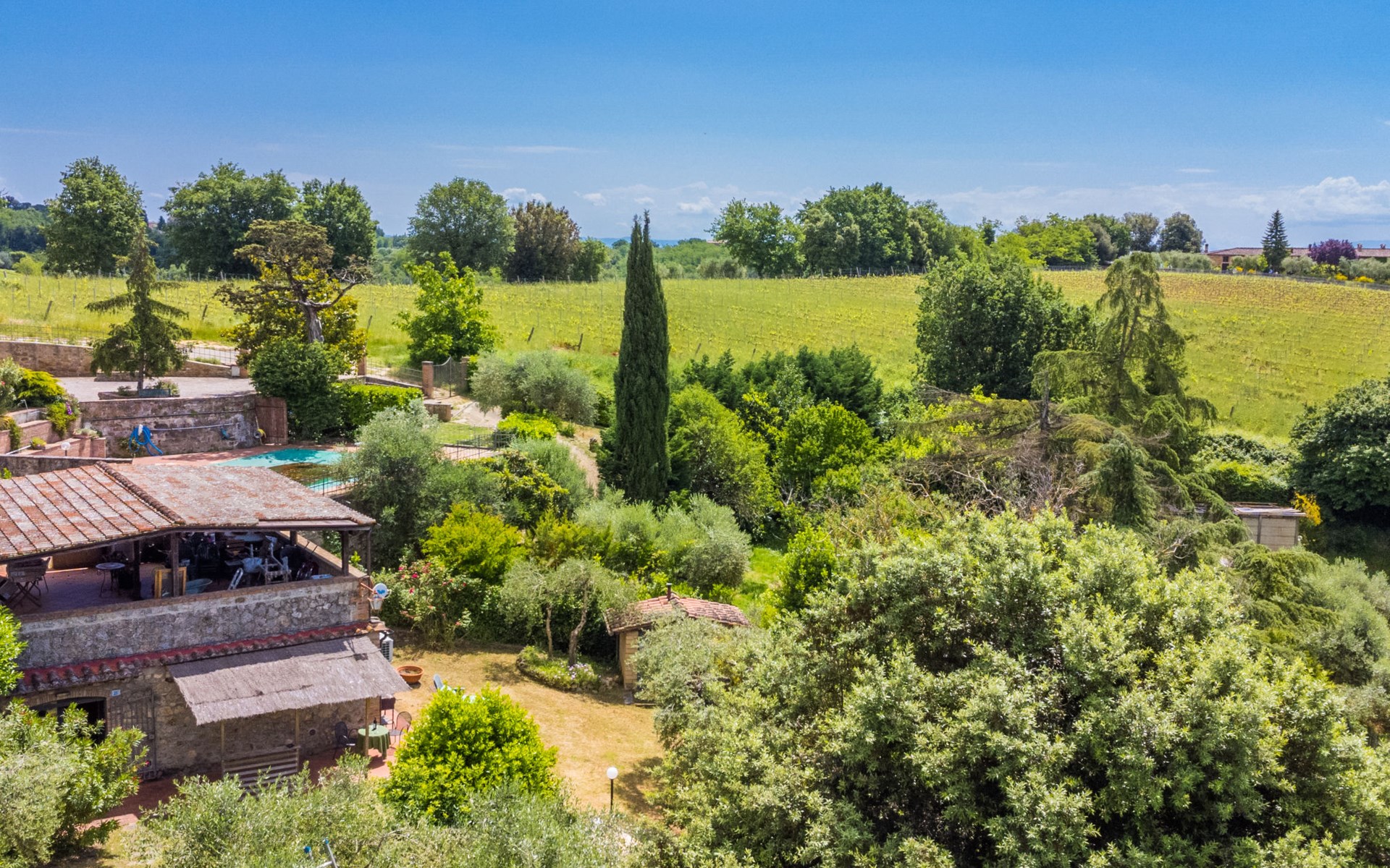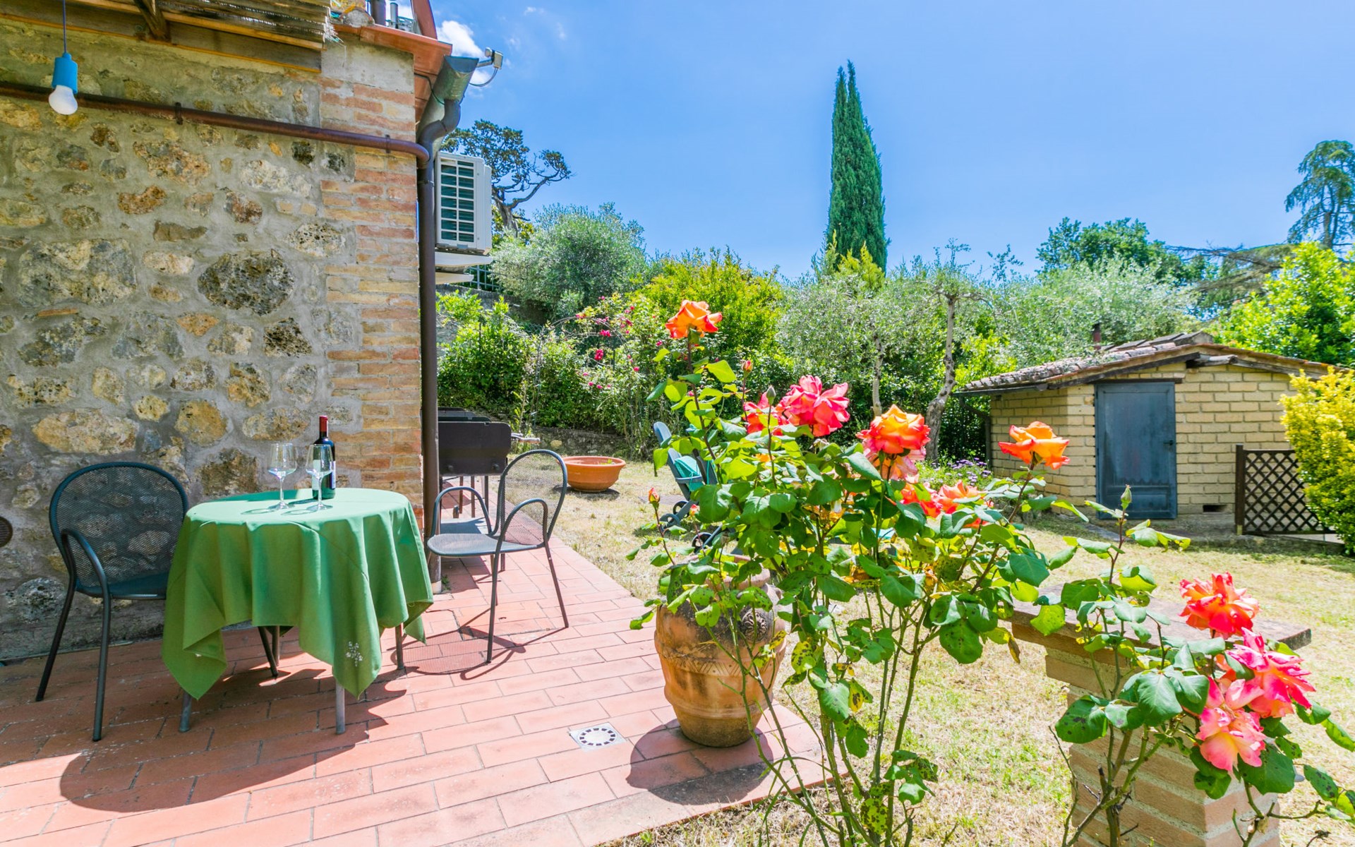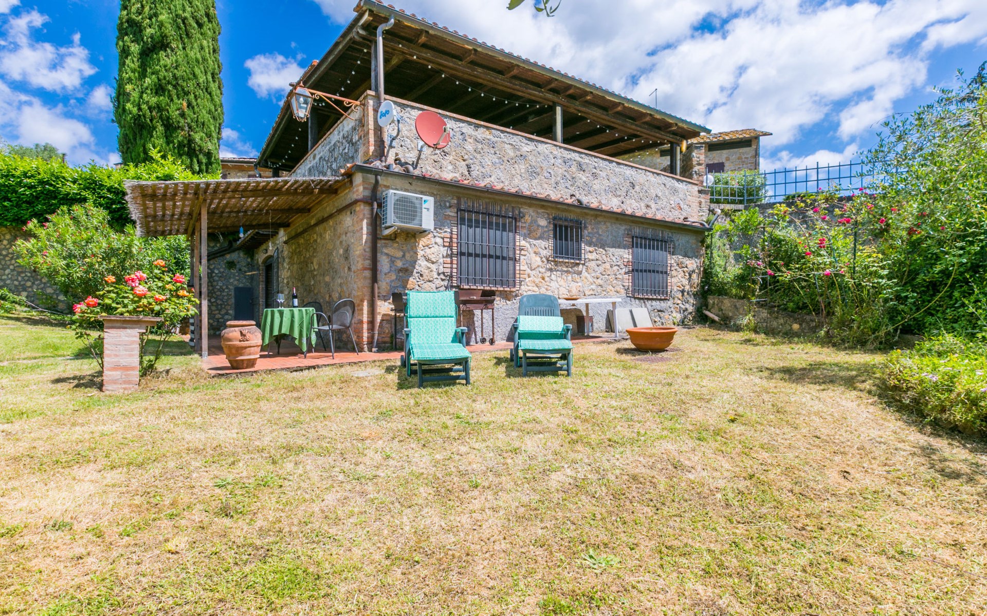 Mooi huis "L'Oliviera", vrijstaand, omgeven door bomen en velden. 5 km van het centrum van Siena, rustige, zonnige, verhoogde ligging, 100 m van de bosrand. Voor alleengebruik: terrein met gazon en planten. Verwarming ter plaatse te betalen (10.Apr. - 31.Okt.). Parkeerplaats bij het huis. Levensmiddelenwinkel 3 km, winkelcentrum 4 km, restaurant 2 km, bushalte 100 m, treinstation "Siena" 6 km, thermaalbad "Rapolano Terme" 35 km. Attracties in de buurt: Montalcino 45 km, Pienza 50 km, Crete Senesi 30 km, Monteriggioni 16 km, San Gimignano 36 km, Montepulciano 65 km. Auto noodzakelijk. Baby uitrusting (incl.). De eigenaar woont op hetzelfde terrein. De eigenaar heeft een hond.