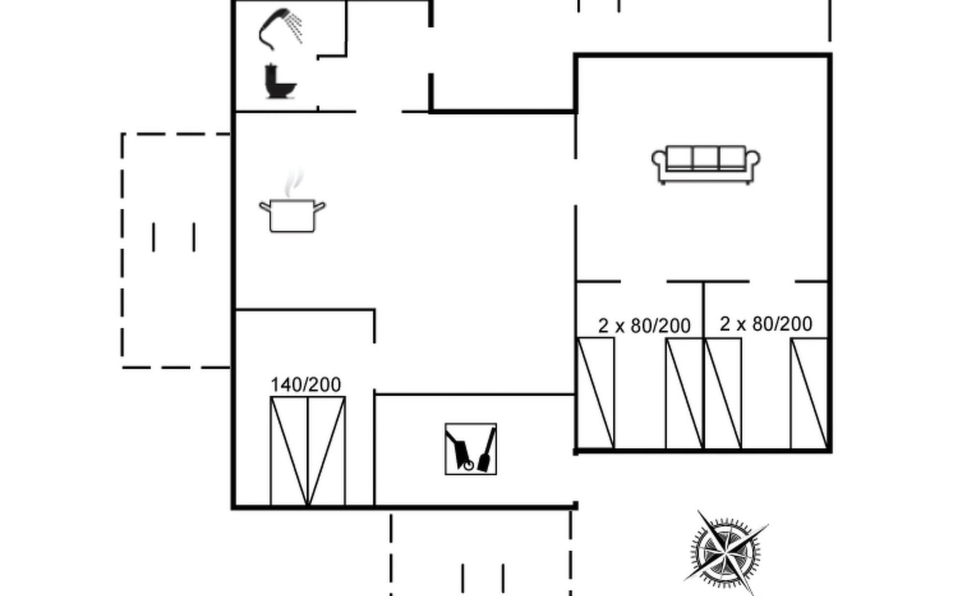 Eengezinswoning, bouwjaar 1977. 760 m van zee. Voor alleengebruik: wild terrein 1.260 m2. Terras (26 m2), kinderspeelplaats (schommel), parkeerplaats bij het huis. Levensmiddelenwinkel 400 m. De eigenaar accepteert geen jeugdgroepen.